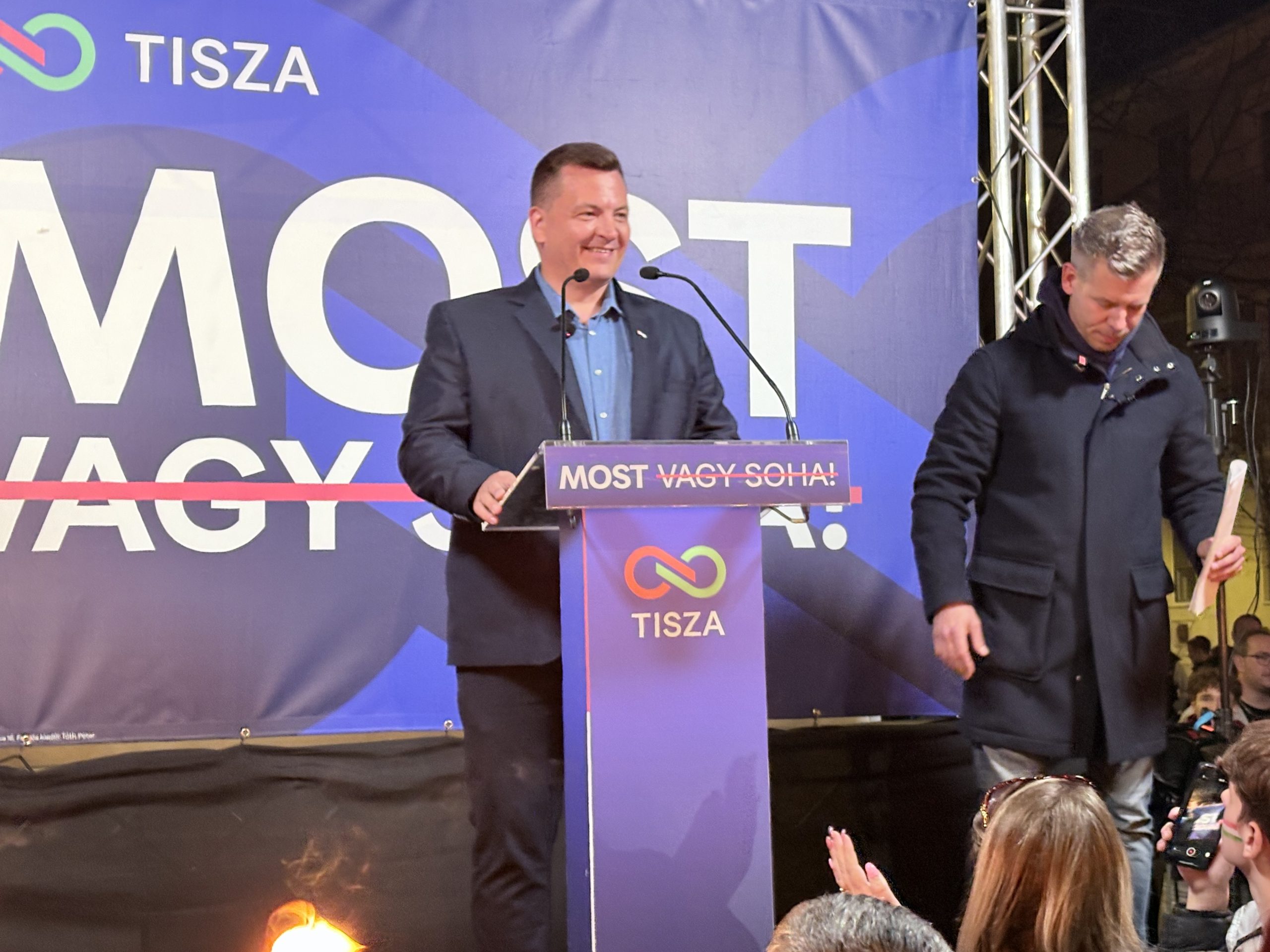 „Nincs harmadik vagy negyedik választás, egy választás van, a rendszerváltásról szavazunk – aki nem a TISZÁ-ra szavaz, az a Fideszre szavaz” – figyelmeztetett, majd köszönetet mondott azoknak a politikusoknak, akik visszaléptek: