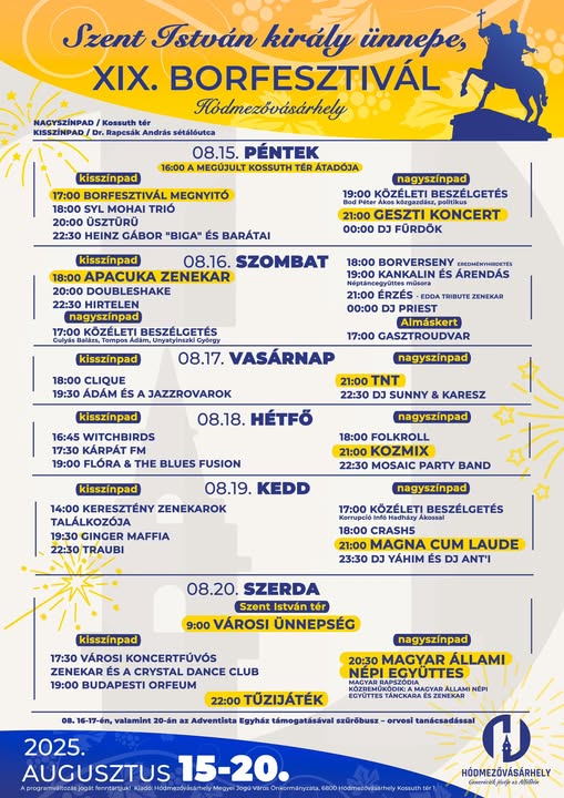 Persze nemcsak a borászok, hanem a vendéglátósok is készülődnek az augusztus 20-ig tartó rendezvénysorozatra, amelyen várhatóan tízezrek vesznek részt – nemcsak Vásárhelyről, hanem a környező településekről is. Tavaly gyulaiakkal, békéscsabaiakkal, kiskunfélegyháziakkal, mosonmagyaróváriakkal és pécsiekkel is találkoztunk.