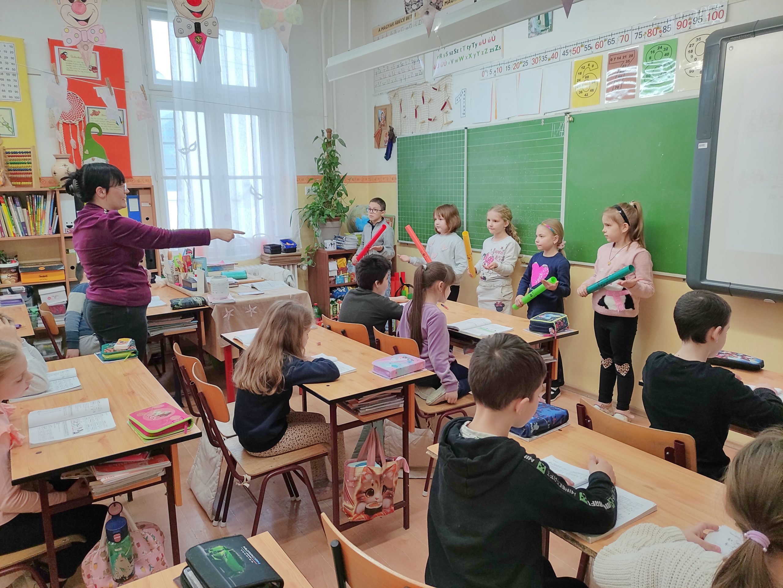 – Mi, alsó tagozatos tanítók ebben különösen tapasztaltak vagyunk, hiszen a tantárgyak közötti átjárhatóság nagyon fontos. Lényeges, hogy komplex módon tekintsünk a tantárgyakra, és most azt szeretnénk bemutatni, hogyan valósítható ez meg a gyakorlatban. Egyébként is sokat mozgunk, mondókázunk, táncolunk, különféle eszközökkel dolgozunk, tehát igyekszünk minél több érzékszervre hatni, hogy a tanulás érdekes és élményszerű legyen a gyerekek számára – tette hozzá.