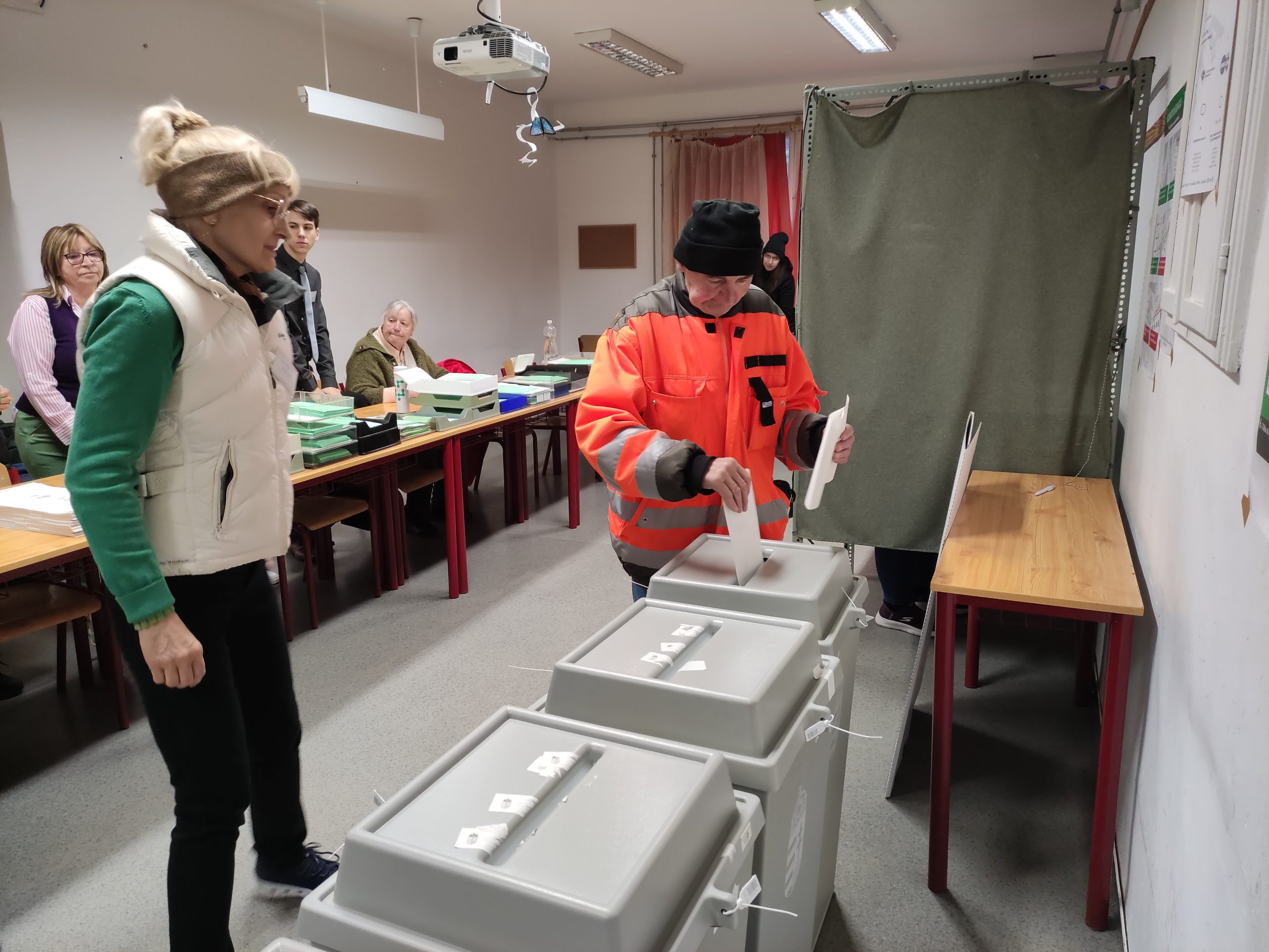 Az első szavazó csak ezt követően dobta bele az urnába a voksát. A második, neve elhallgatását kérő választó azt mondta, hogy azért jött szavazni ilyen korán, mert boltban dolgozik, és nemsokára nyitnak. Hozzátette, hogy minden választáson részt vett eddig. – Fontosnak tartottam minden alkalommal, hogy elmenjek, ezt a választást pedig nagyon-nagyon fontosnak tartom, mert nagyon nagy a tét most Magyarország számára a béke és a biztonság miatt – mondta.