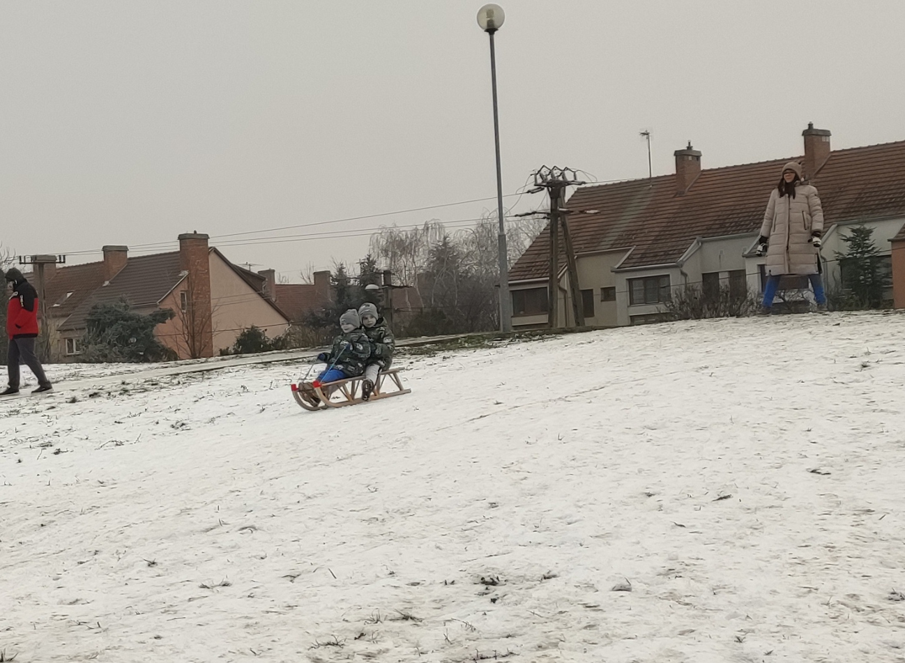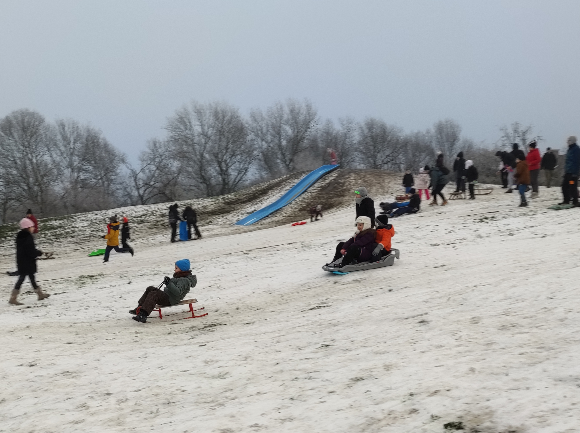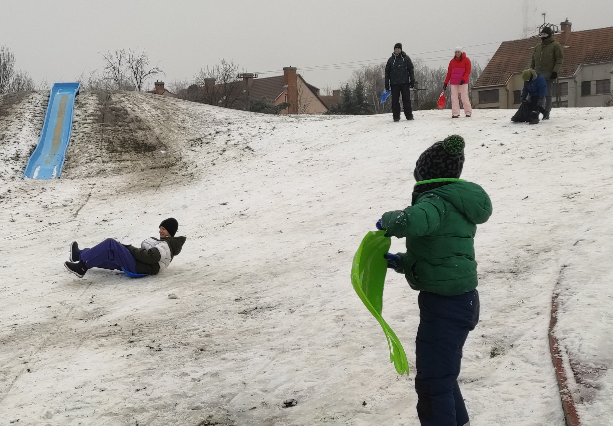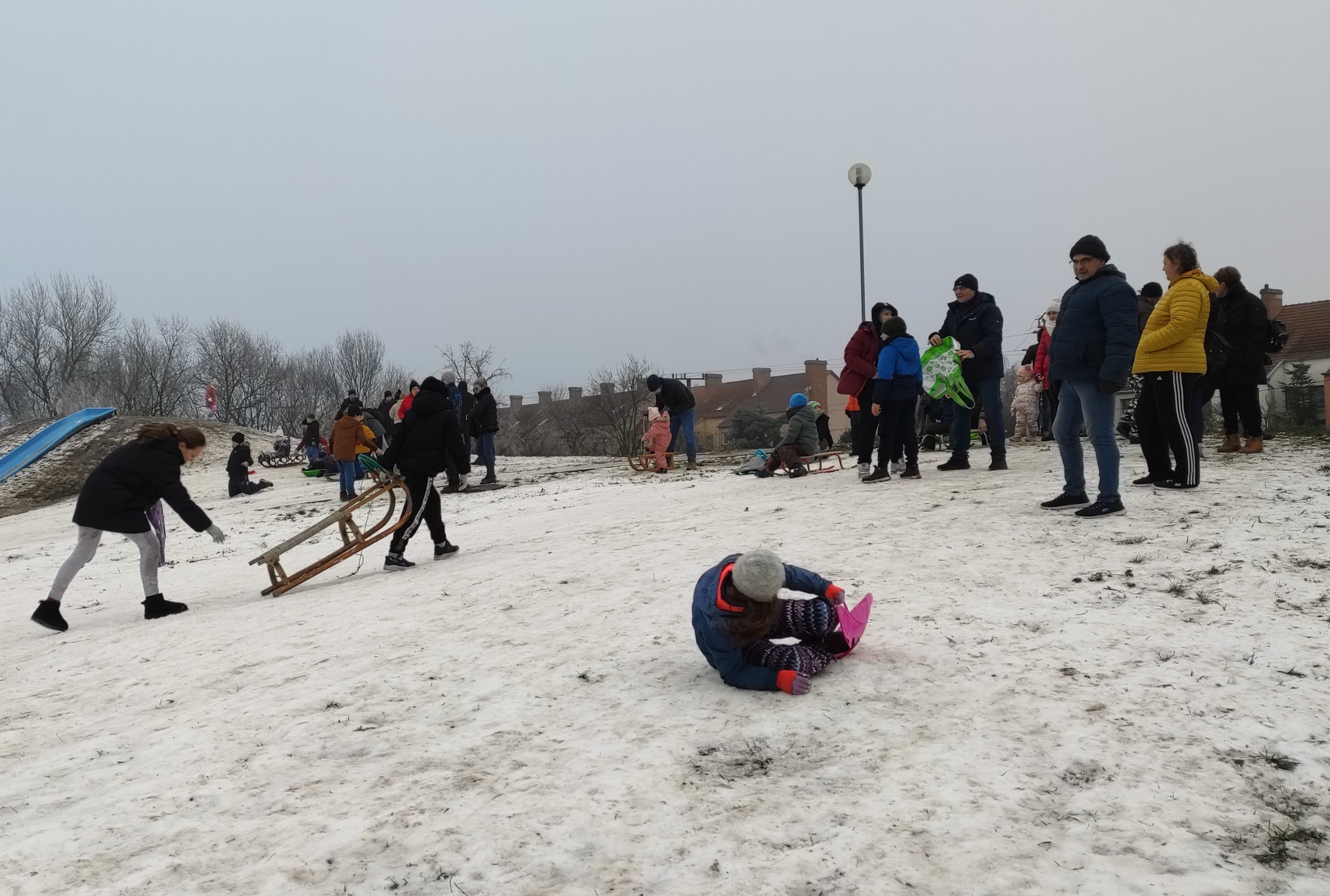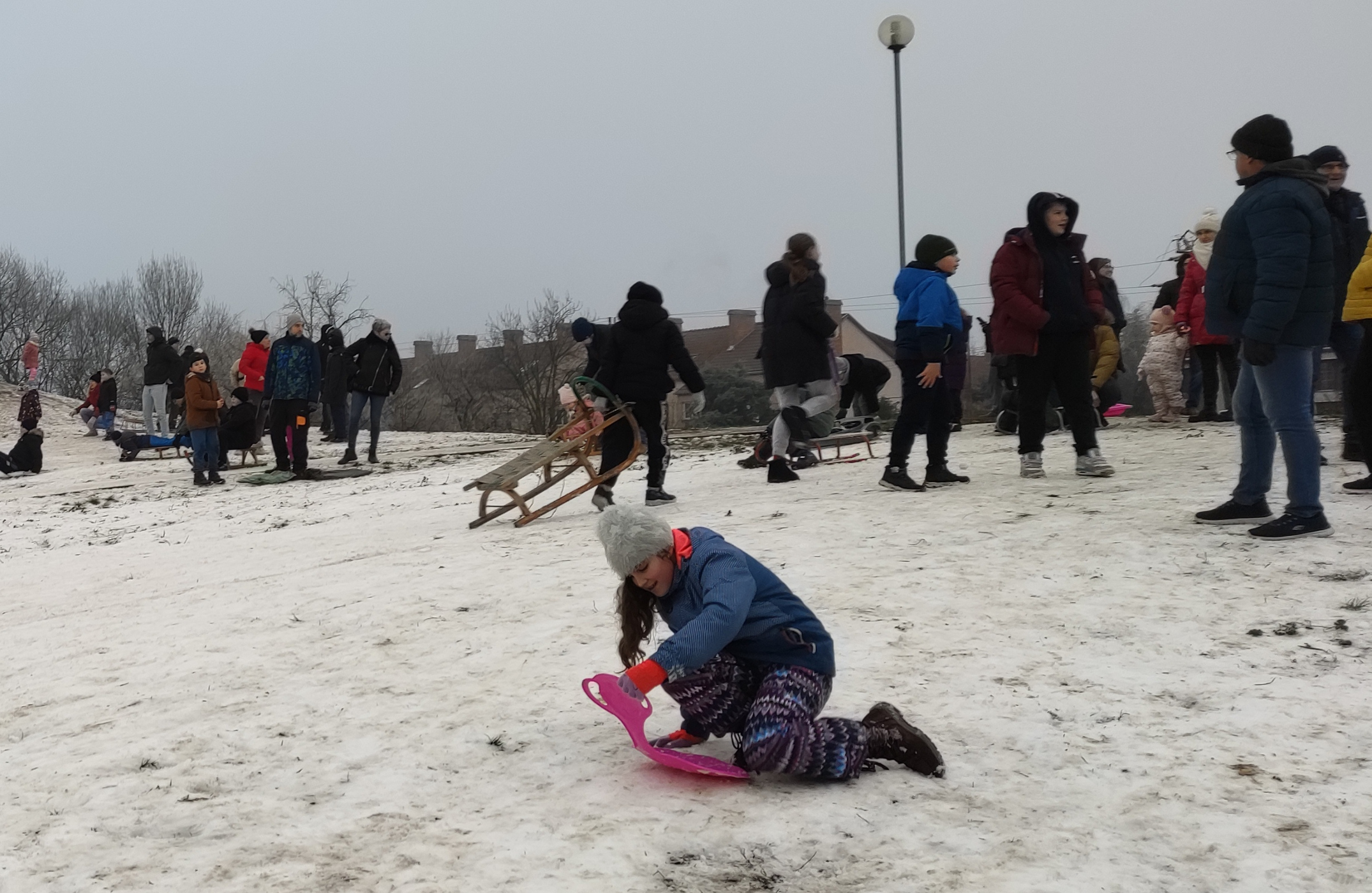 Akadt olyan gyerek, aki a szánkójával túlcsúszott a fehér pályán, mások pedig elakadtak a hóban. Előfordult, hogy a műanyag csúszka kicsúszott alóluk, így többet voltak a havon, mint fölötte. Senki sem sírt: inkább nevetés és önfeledt játék jellemezte a délutánt, a gyerekek láthatóan örültek a tél már régóta hiányzó lényegének, a hónak.