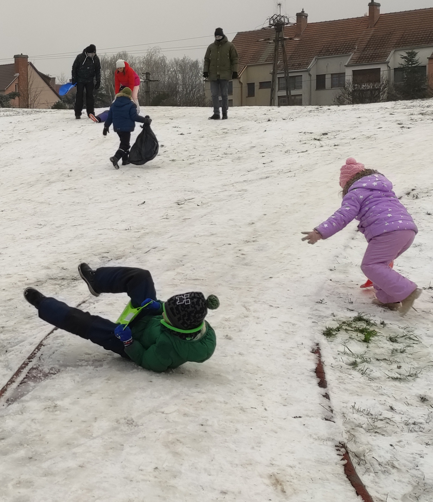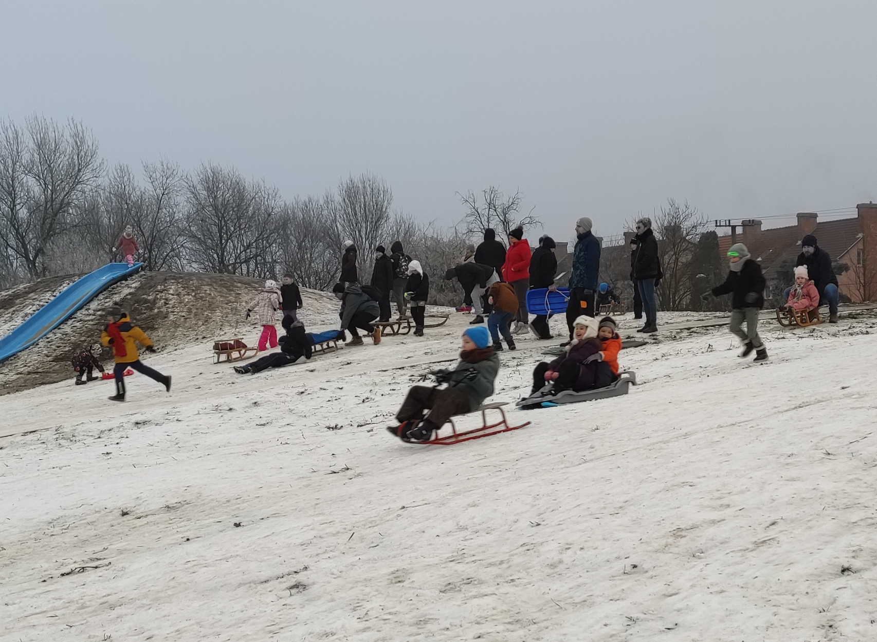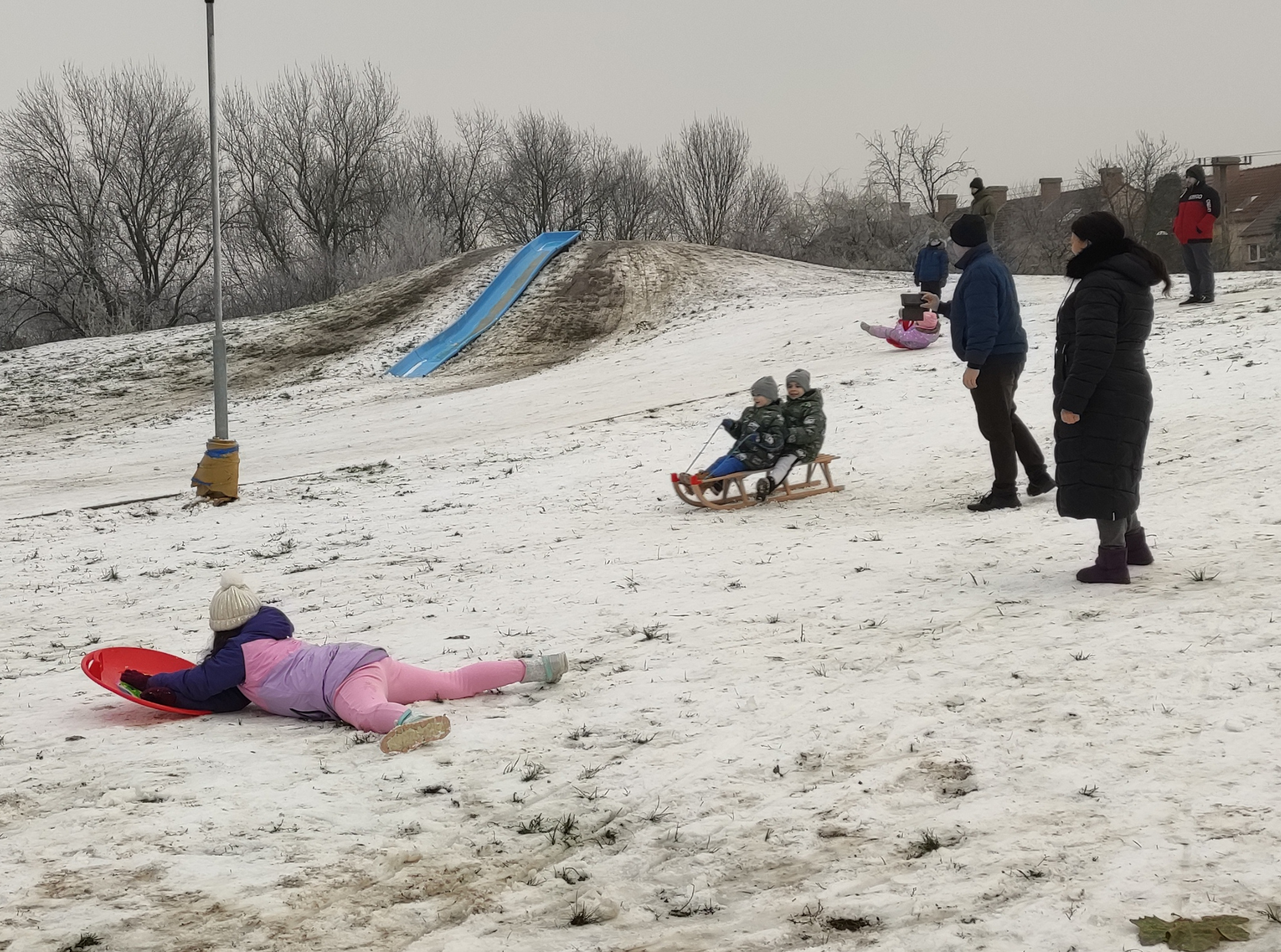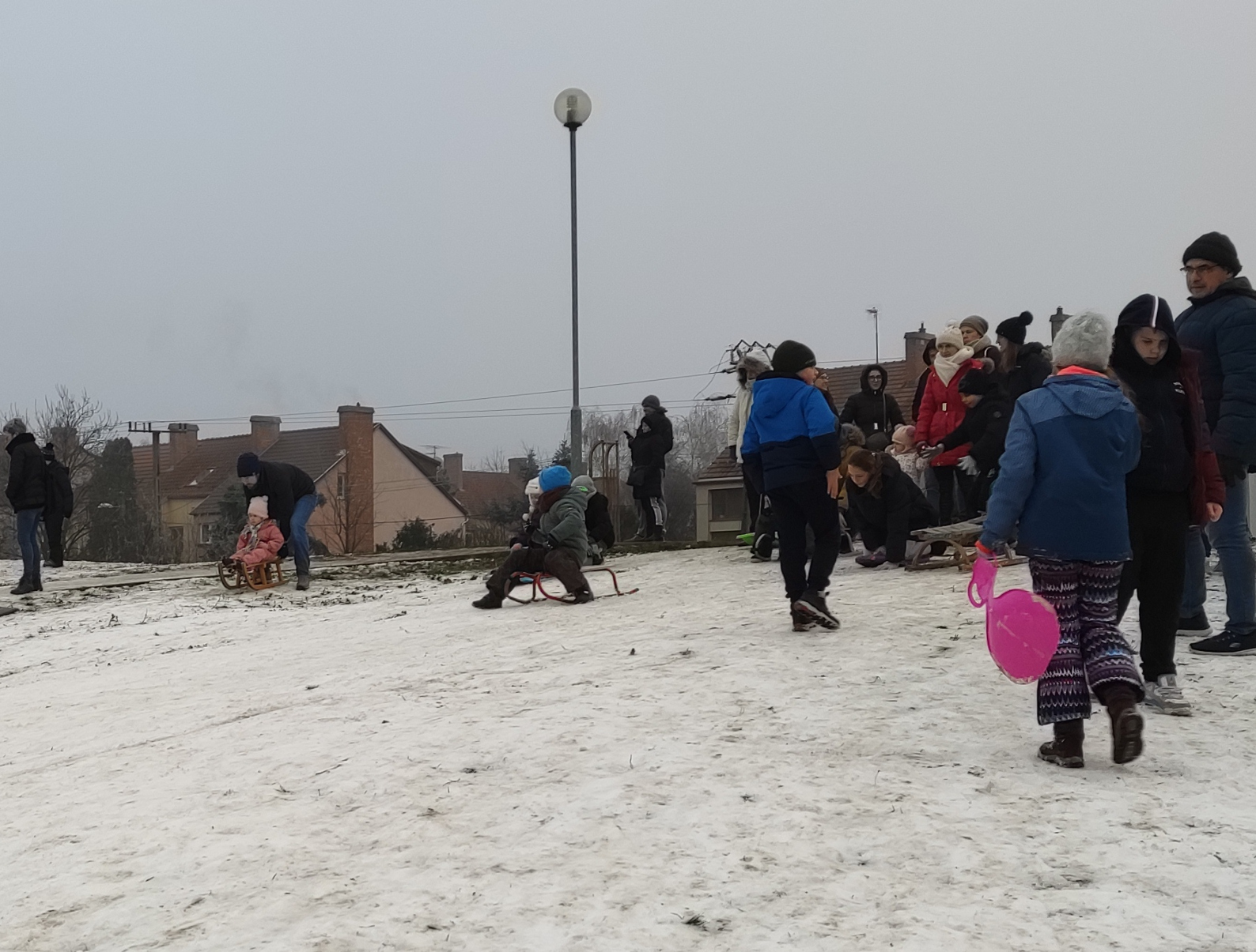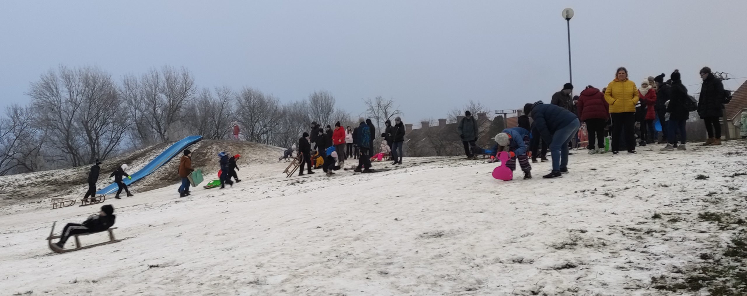 Akadt olyan gyerek, aki a szánkójával túlcsúszott a fehér pályán, mások pedig elakadtak a hóban. Előfordult, hogy a műanyag csúszka kicsúszott alóluk, így többet voltak a havon, mint fölötte. Senki sem sírt: inkább nevetés és önfeledt játék jellemezte a délutánt, a gyerekek láthatóan örültek a tél már régóta hiányzó lényegének, a hónak.