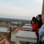 Péntek délután rendhagyó idegenvezetésben részesülhettek azok, akik Vásárhely polgármesterének vezetésével megnézték a városháza felújított tornyát, és a tízemeletesnél valamivel magasabb épület tetejéig gyalogoltak, hogy megcsodálhassák városunkat felülről. Márki-Zay a Kossuth téri történelmi épületről és a felújítás részleteiről is mesélt.