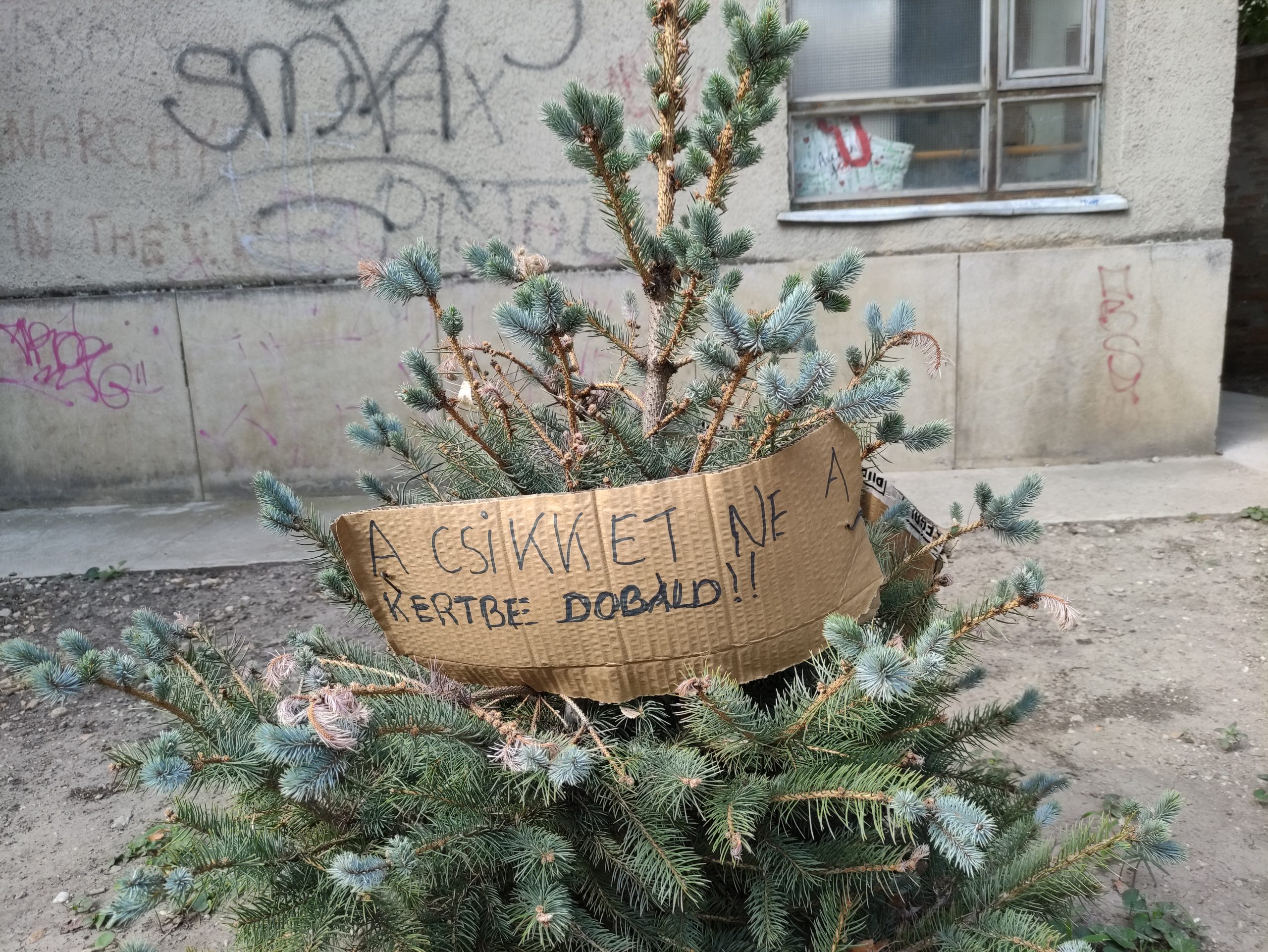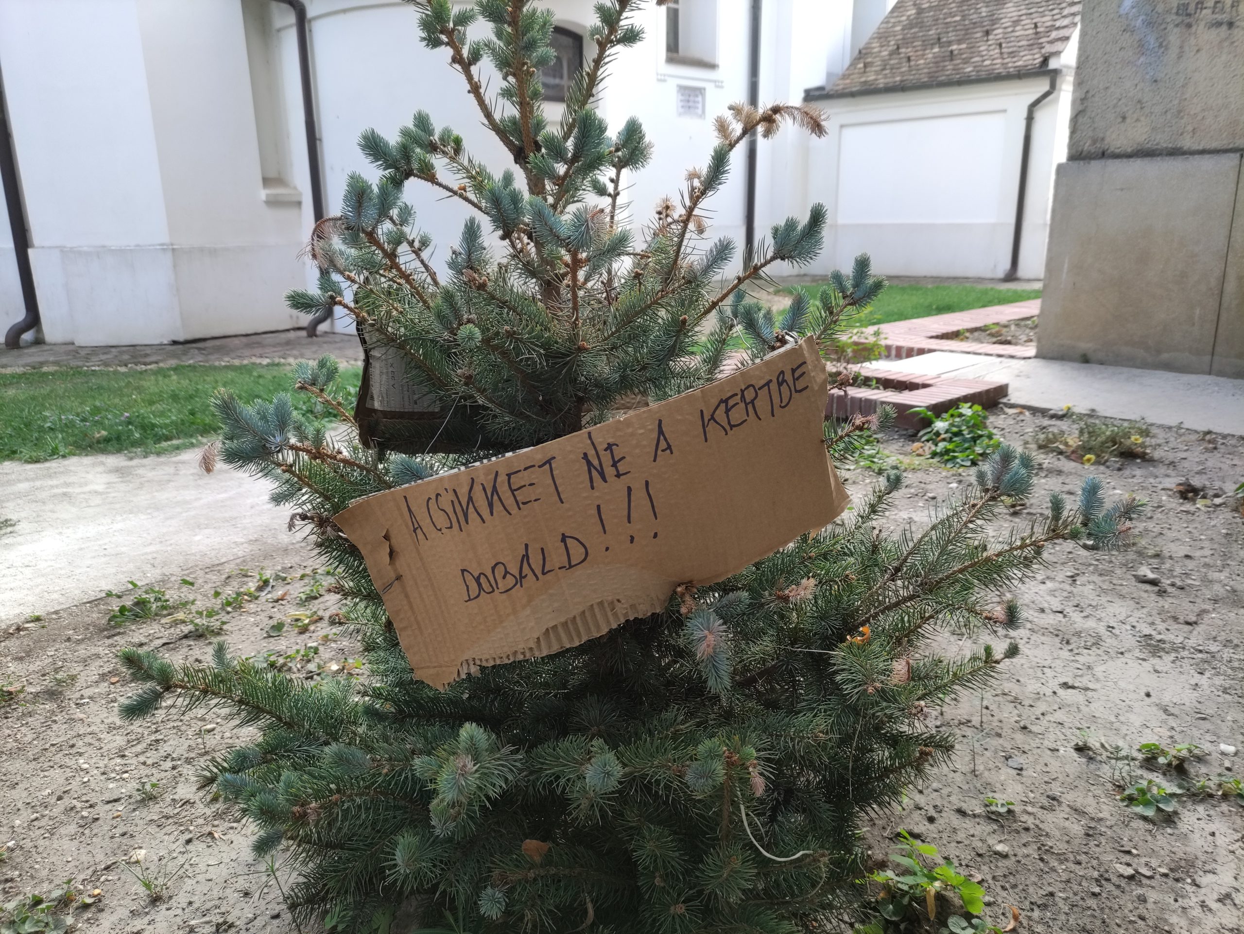 A csikkek látványa egyáltalán nem illik a szakrális környezethez, amit valaki határozottan szóvá is tett – igaz, úgy, hogy jobb híján a fenyő ágaira akasztotta felszólítását.