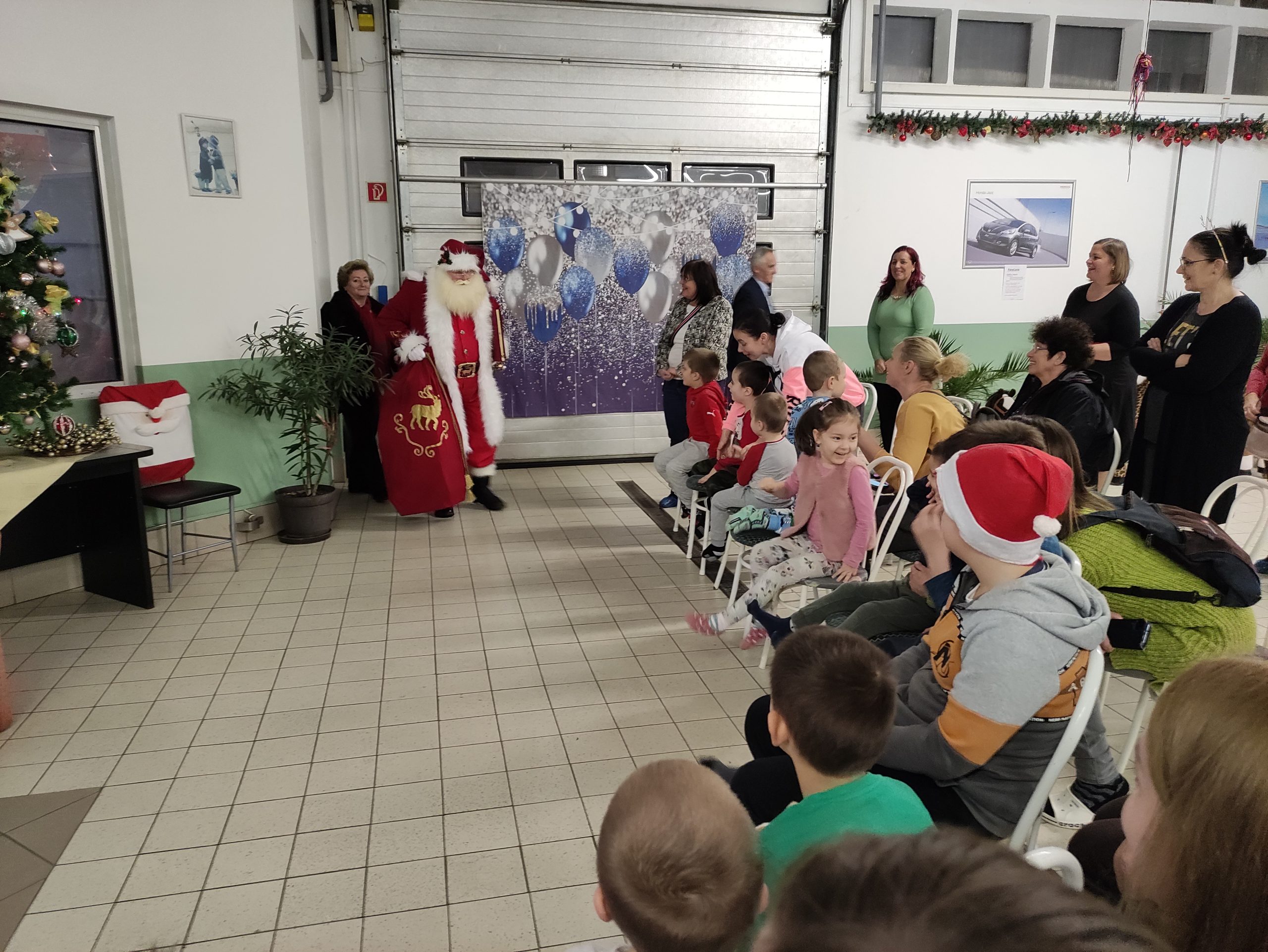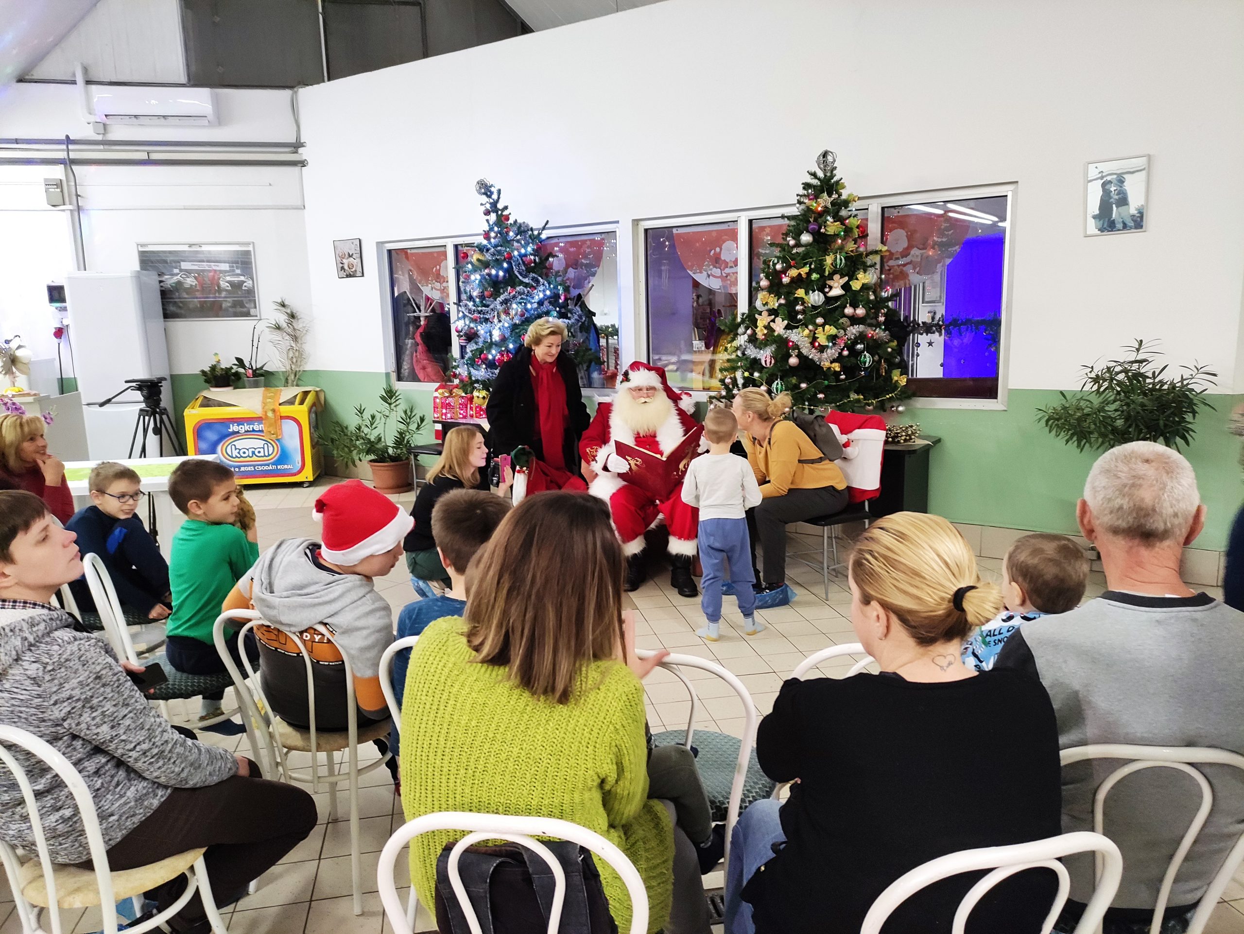 A gyerekek, míg a nagyszakállúra vártak, nagyon jót játszottak az izgalmas helyszínen, majd kissé megszeppenve, de közben izgatottan érkeztek abba a terembe, ahová egyszer csak betoppant maga a Mikulás. Aki a nagy, ajándékokkal teli zsákját a válláról a földre tette, leült a helyére, s a gyerekek a Hull a pelyhes fehér hó című közös éneklésével magyarul, majd ukrán mikulás-dallal köszöntötték. A bátrabb gyerekek, köztük Szása, Ványa és Ádám külön is énekeltek neki.