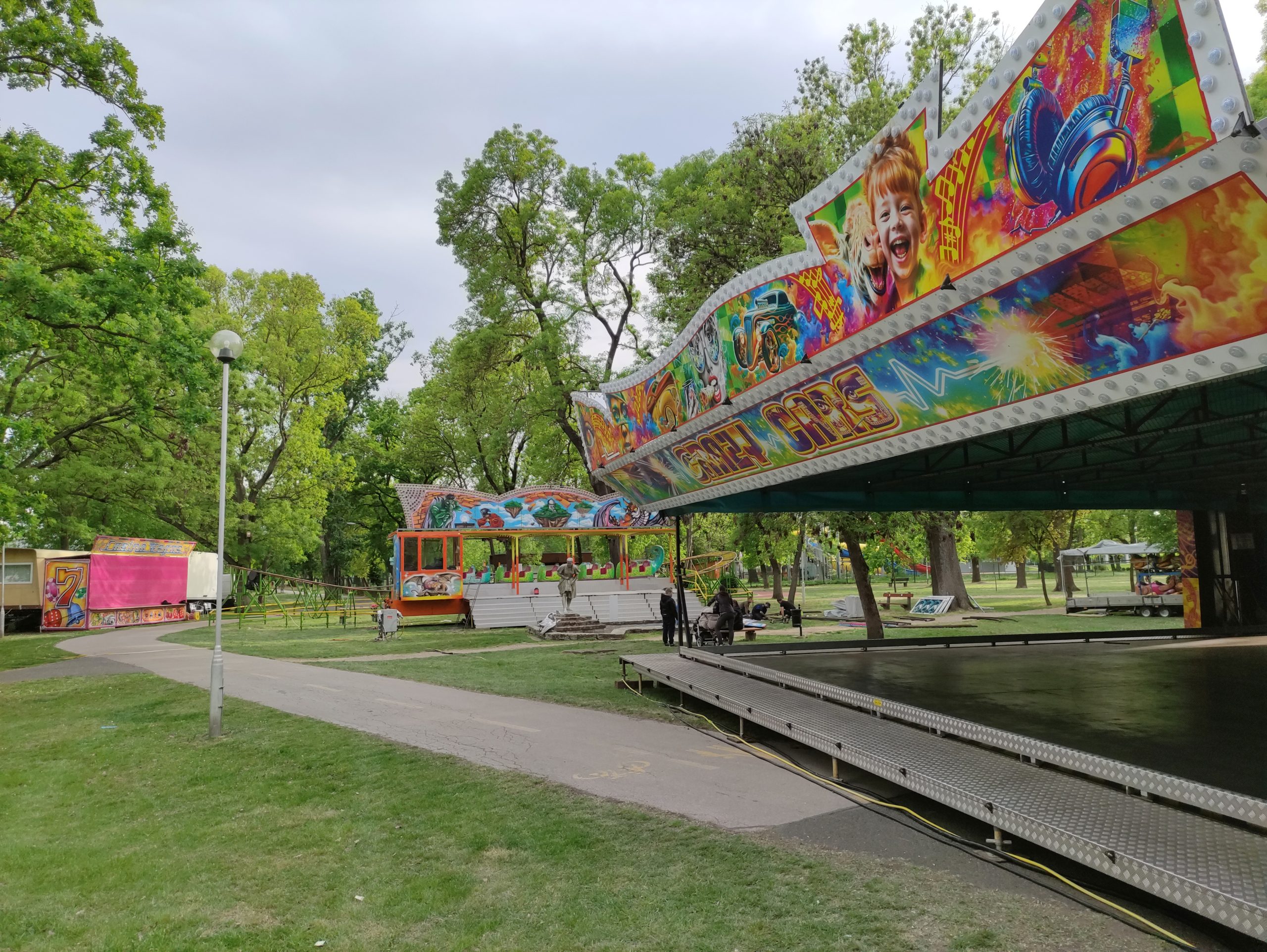 A május elsejei népkerti forgatag nagyobb főszereplői már a helyükön vannak.