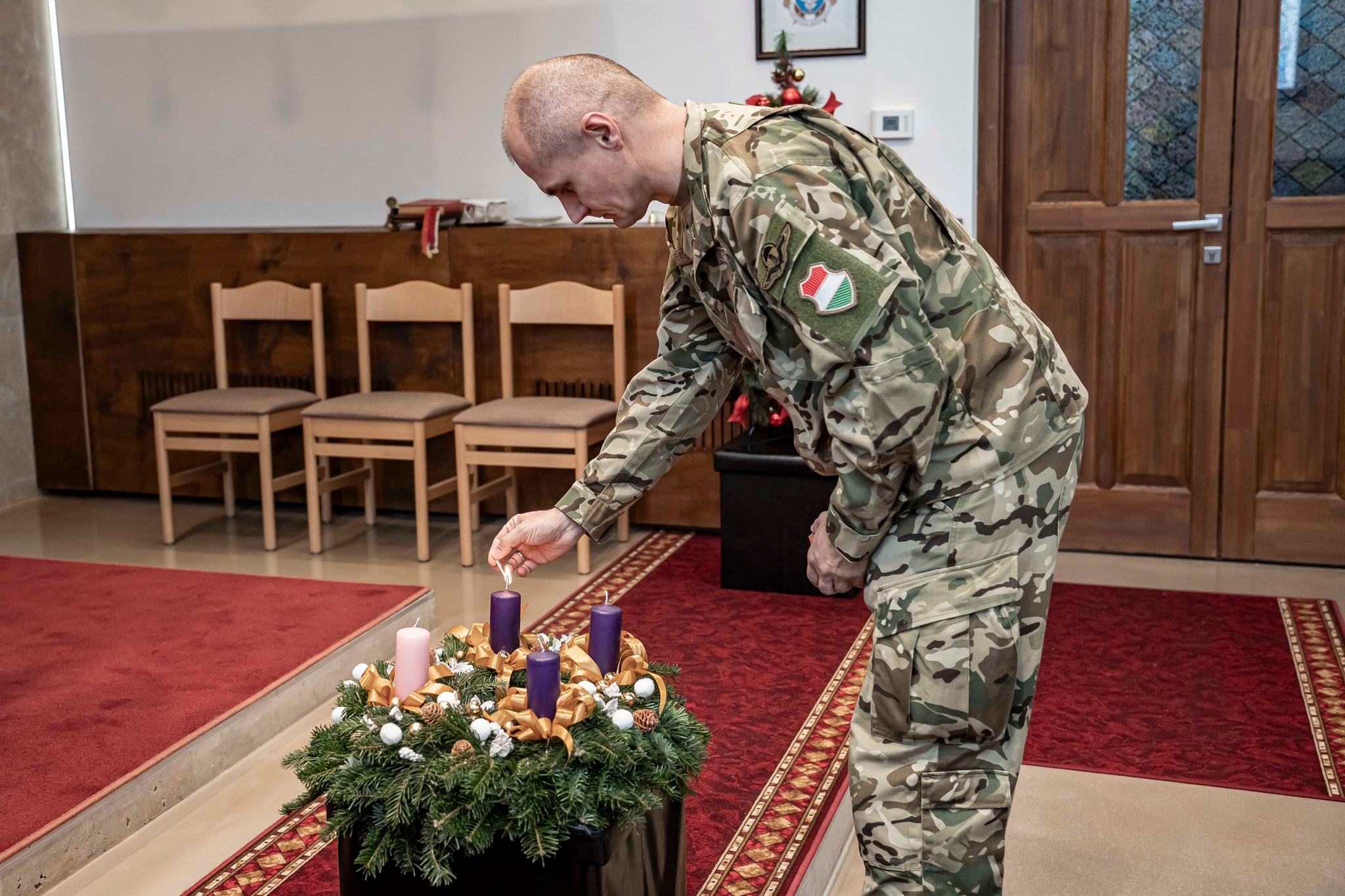 Advent első gyertyáját Terjék Miklós alezredes, a MH Kinizsi Pál 30. Páncélozott Gyalogdandár megbízott törzsfőnöke gyújtotta meg a vásárhelyi laktanya melletti Hunyadi kápolnában.