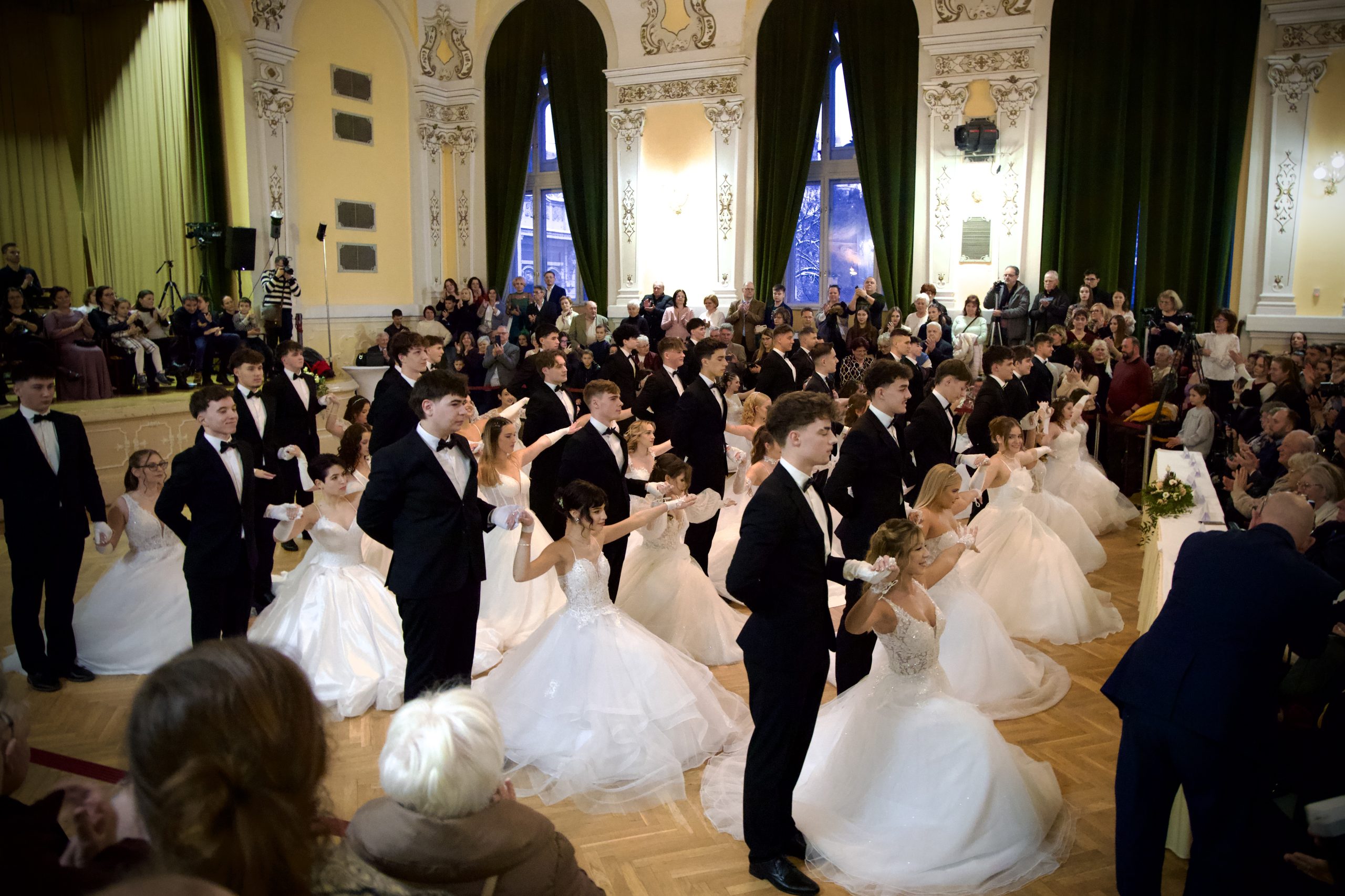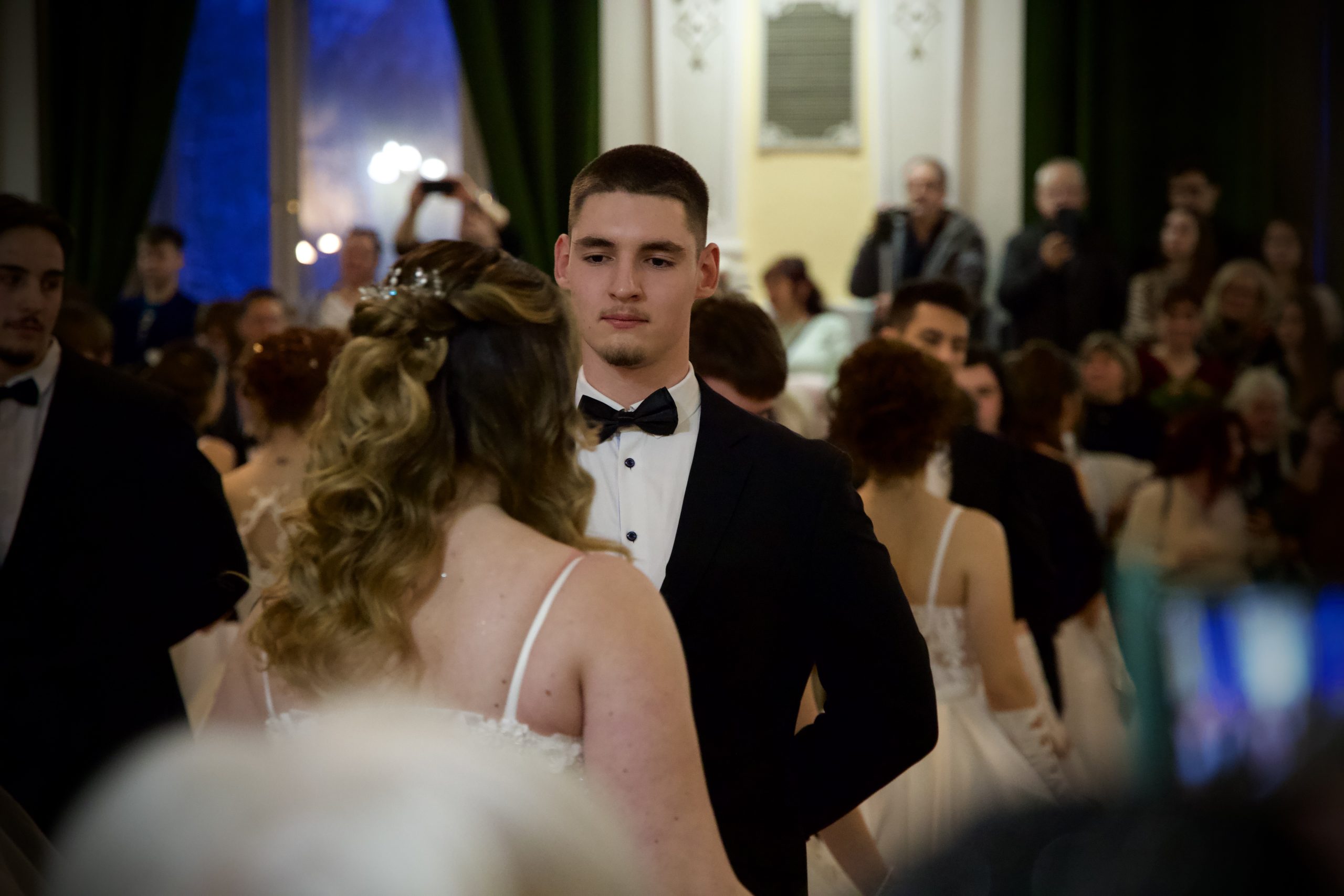 A Bethlen Gábor Református Gimnázium végzős diákjai ezúttal is alaposan kitettek magukért: Zsom Olivér koreográfiájával és betanításával bécsi és angol keringőt, majd palotást táncoltak, szinte felperzselve a Fekete Sas báltermének parkettjét – ráadásul nem is egyszer.
