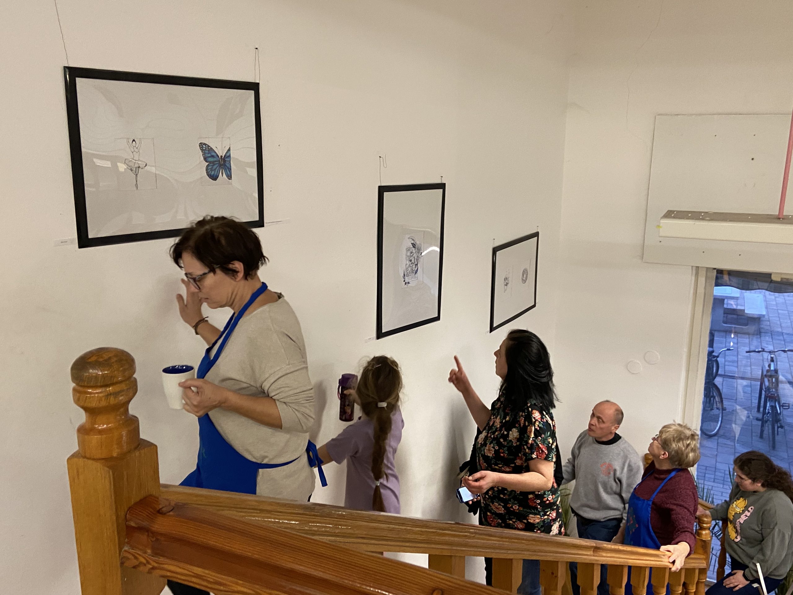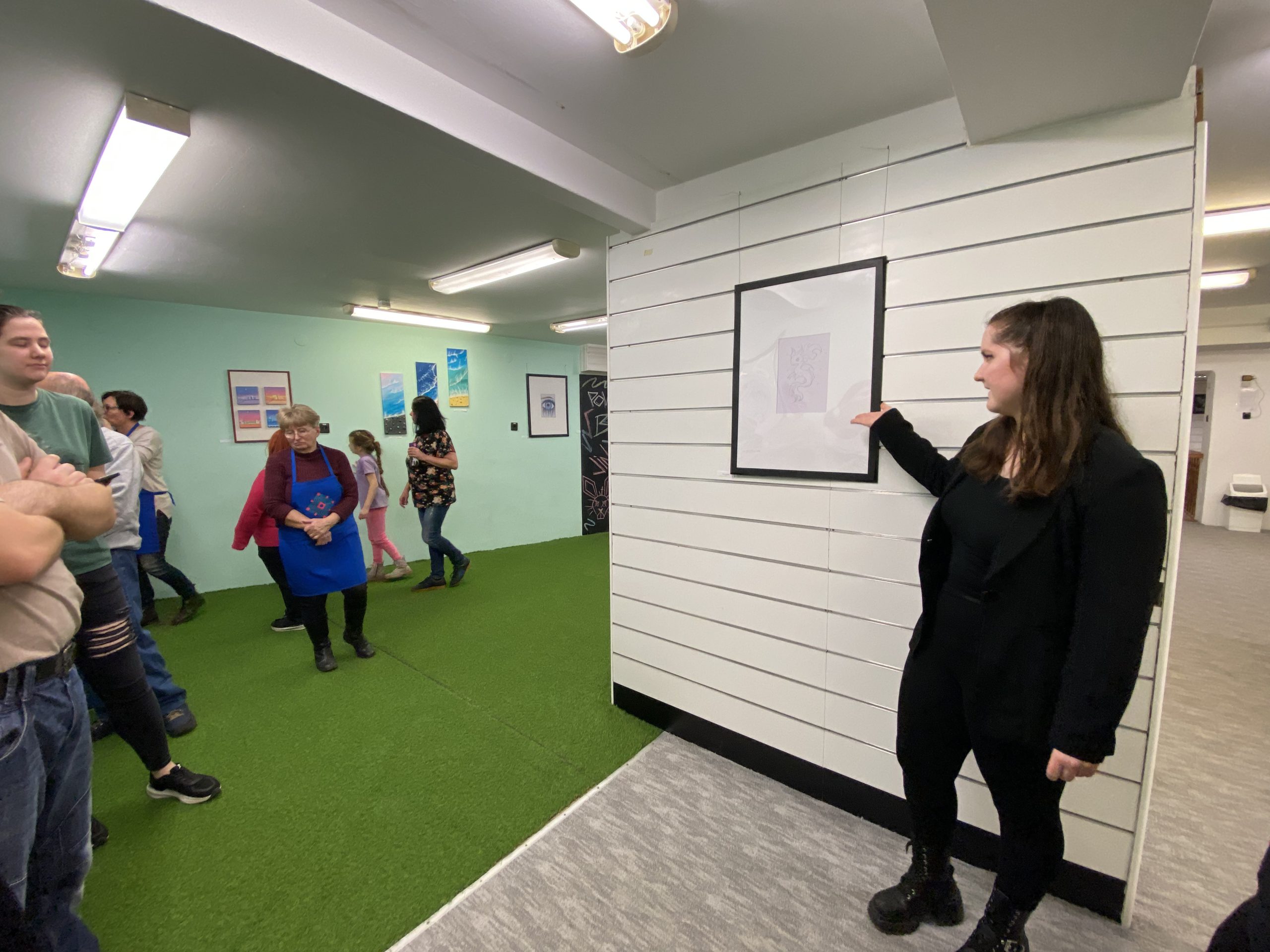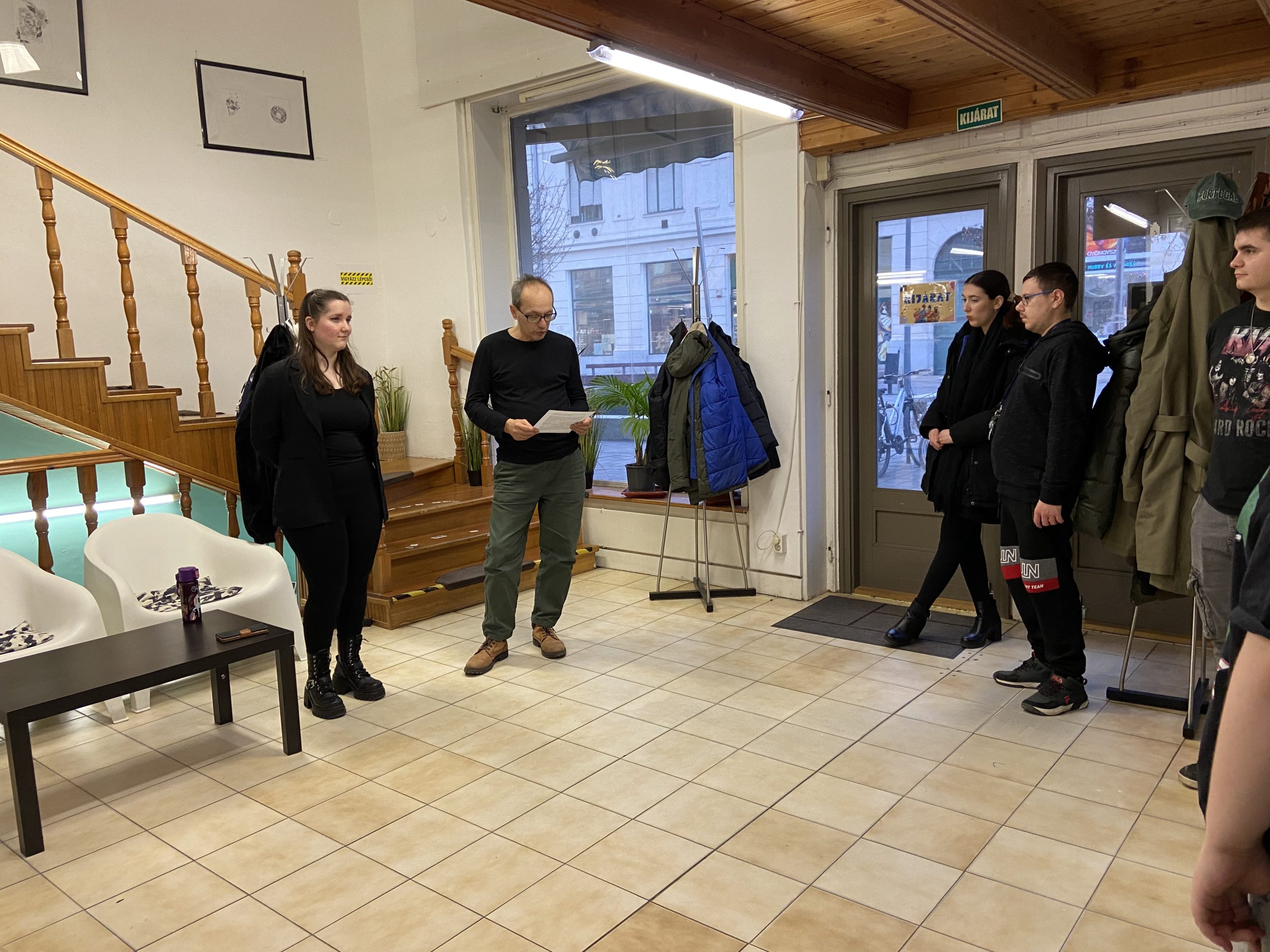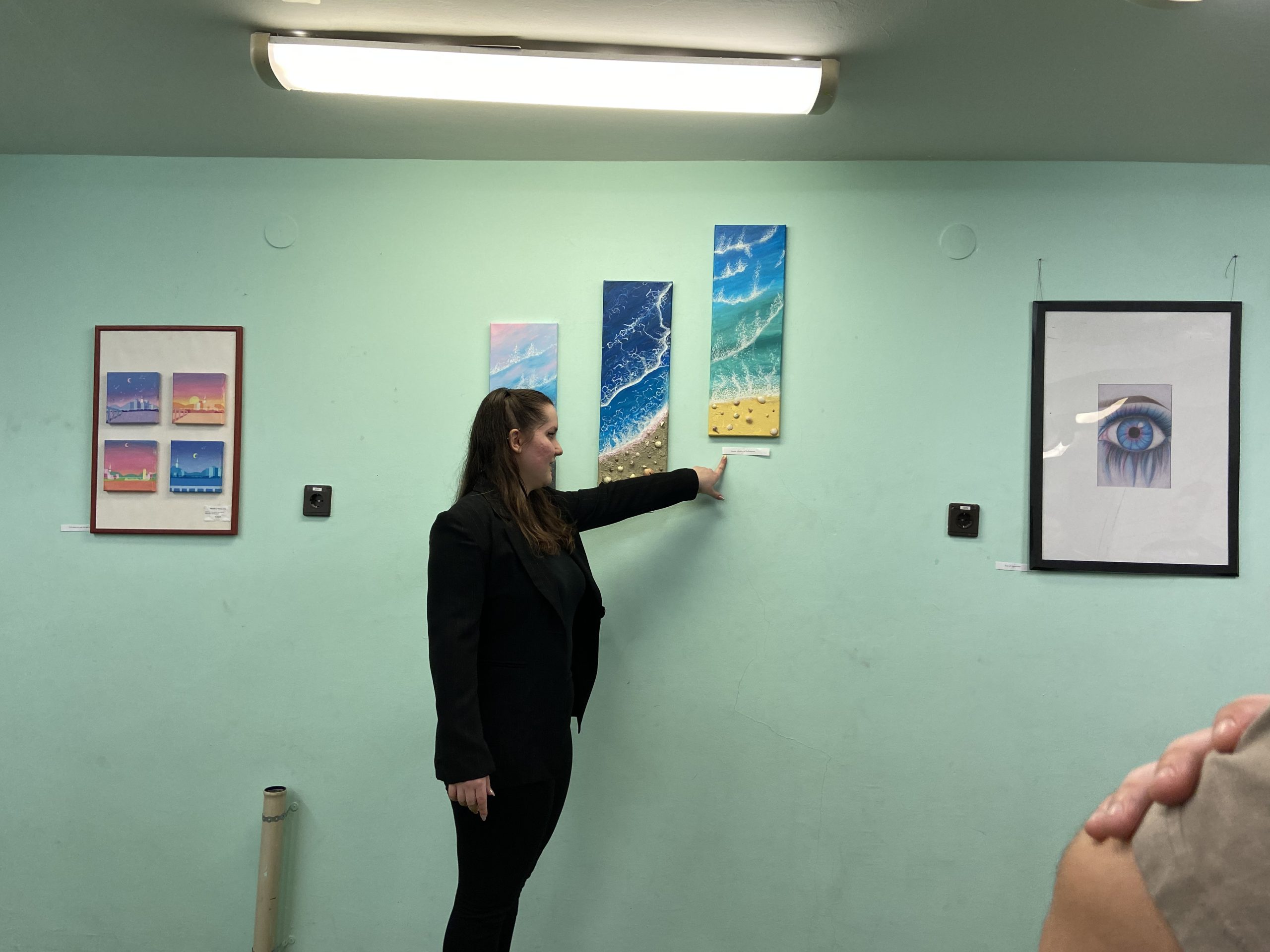 A köszöntést követően Viki az érdeklődő közönséggel egyenként ment végig minden egyes kiállított alkotáson, néhány szót, magyarázatot fűzve mindegyikükhöz. Megtudhattuk, műveiben egyaránt tükröződnek vissza animációs film-élményei, mint ahogyan a mindennapokban megélt örömei vagy nehézségei, kapcsolati tapasztalatai is: például a harag és a csalódás.