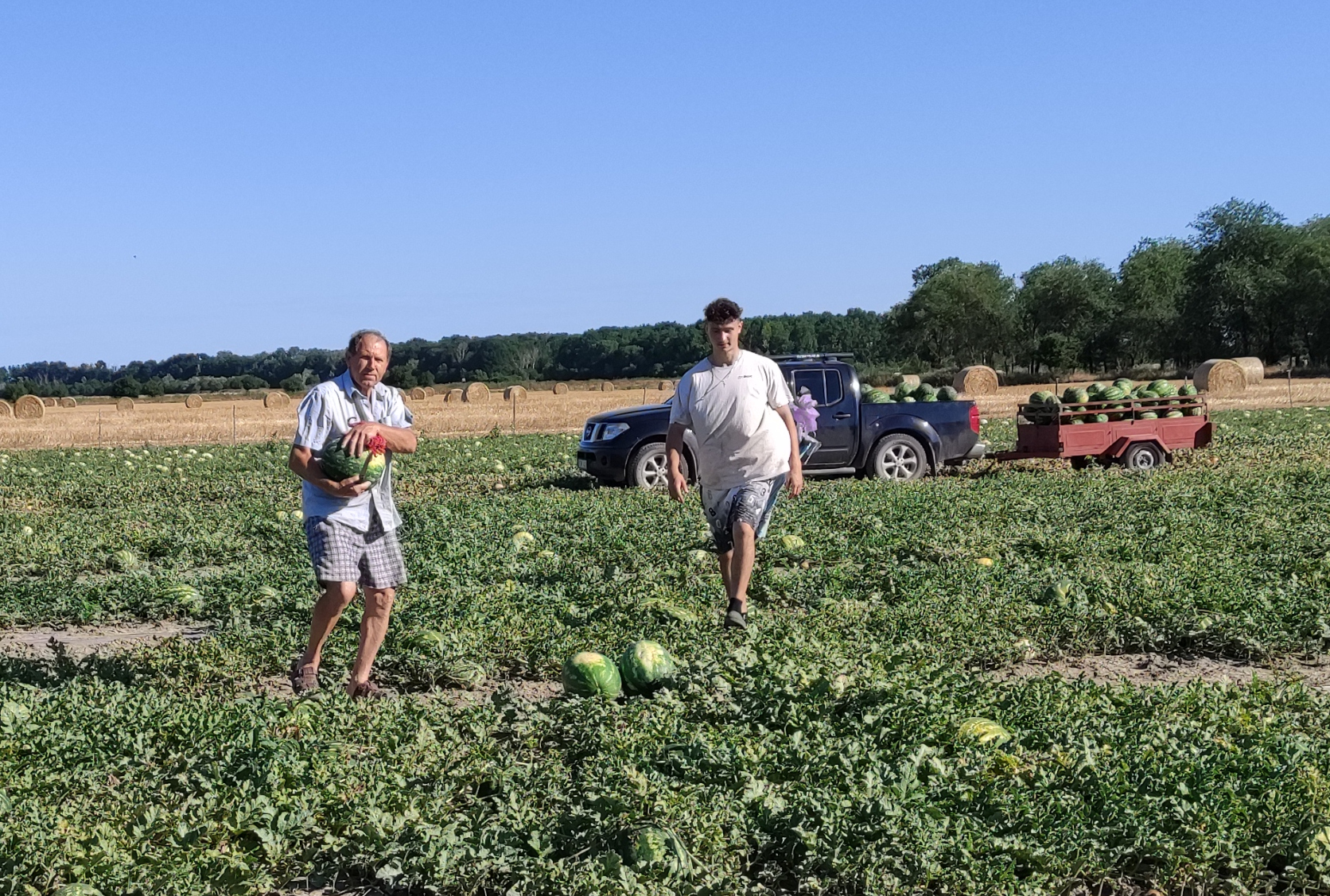 Papék az aszály miatt saját kutat fúrattak, és csepegtető öntözést építettek ki a kéthektáros földjükön, amelyet a nyulak ellen bekerítettek. Így most a hollók ellen kell védekezniük, ezért állítottak fel madárijesztőket. Pap Róbert szülei negyven éve termesztenek dinnyét – hasonlóra még nem volt náluk példa.