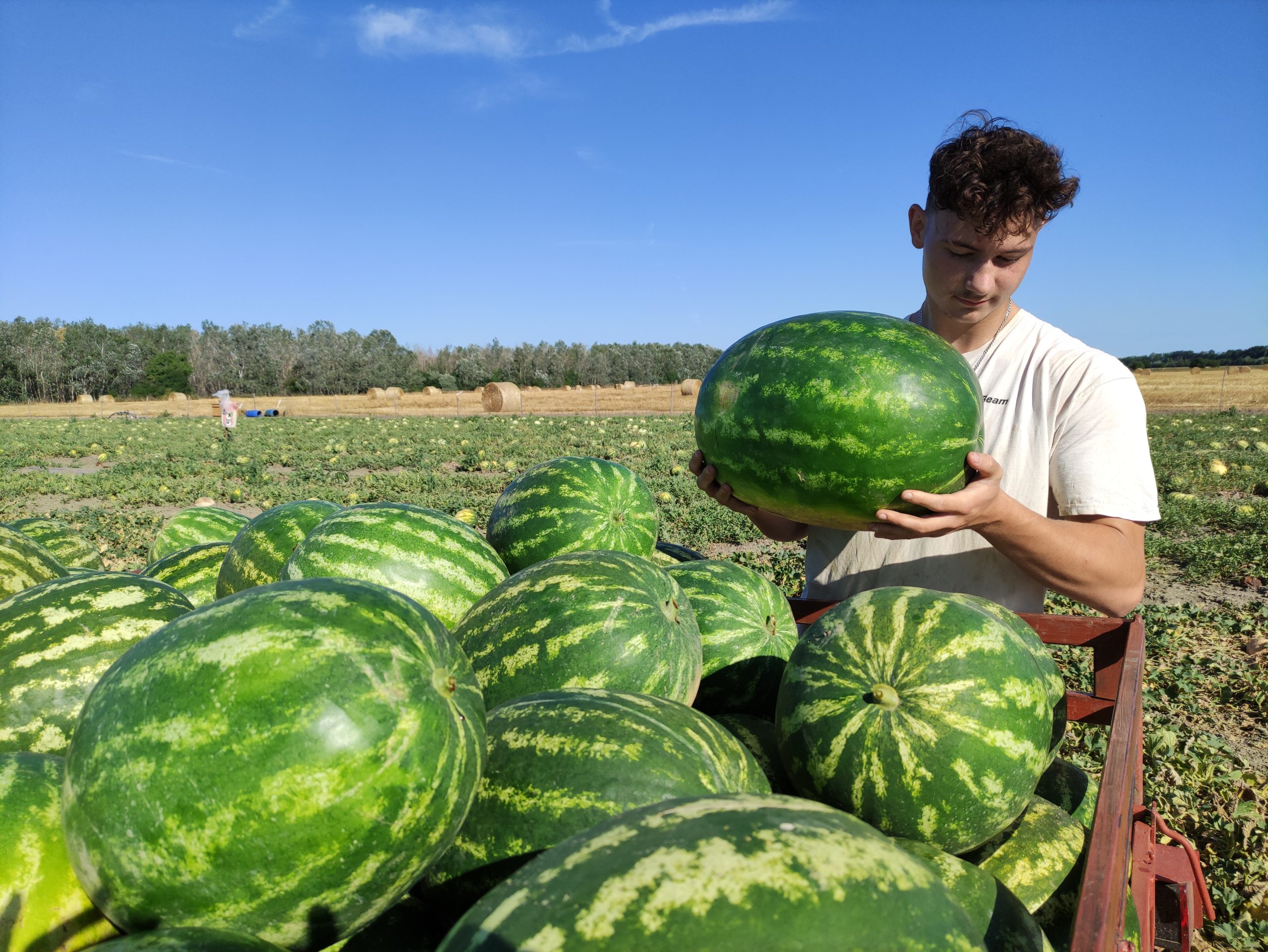 Alig maradt dinnyetermesztő az utóbbi években Vásárhelyen, hiszen az aszály miatt csak szabadtéren, öntözés nélkül nem terem meg. Pap Róbert őstermelő szülei negyven éve dinnyéznek: saját kutat fúrtak, és csepegtető öntözést építettek ki, hogy a két hektárnyi földjükön megteremjen az édes gyümölcs.