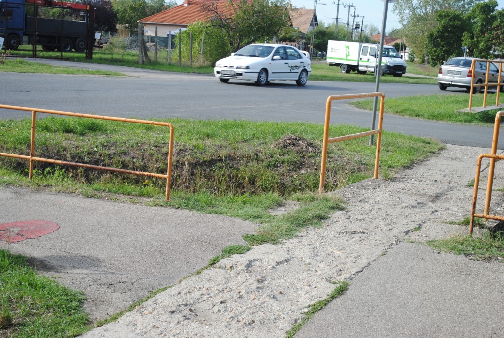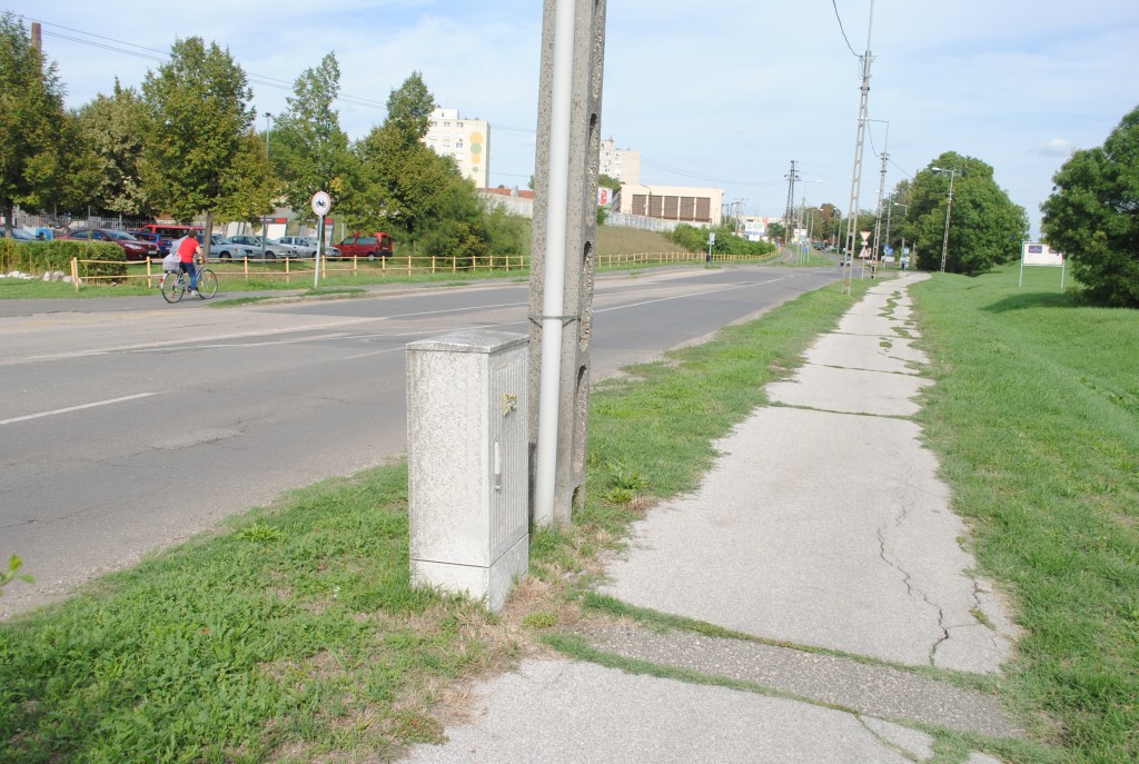 Legelőször a sokak által emlegetett, a Tescoval átellenben lévő szakaszra hajtottunk. Ennek jellegzetessége, hogy kettő is van belőle: az egyik a csatorna partján fut, az áruházzal átellenben kezdődő körforgalomból indulva. A másik (melyből egyébként az előző ágazik el) továbbmegy a vasúti töltés mellett. A kettő közt az a nagyon nagy különbség, hogy az utóbbit alig-alig használja valaki, míg a csatorna partján lévőnek igencsak nagy a forgalma. Ennek vannak nehéz szakaszai, főleg, amikor a kerékpáros áthajt az építési áruházhoz vezető közúton. Itt kell észnél lenni az úthibák miatt. Aztán persze jön a Bajcsy utcára nyíló emelkedő. Annak, aki a körforgalomtól eddig hajt, s figyeli az utat, viszonylag simán haladhat. Az elvétve lévő úthibákat könnyű kikerülni. A vasúti töltés melletti kerékpárút már keményebb dió, ahogy a körforgalom előtt, így itt is megsüllyedt az egyik, ami miatt szép hosszú vonalban el is vált egymástól az aszfalt. A repedésből most fű nő, az jelzi, hová nem szabad kormányozni a bicajt.