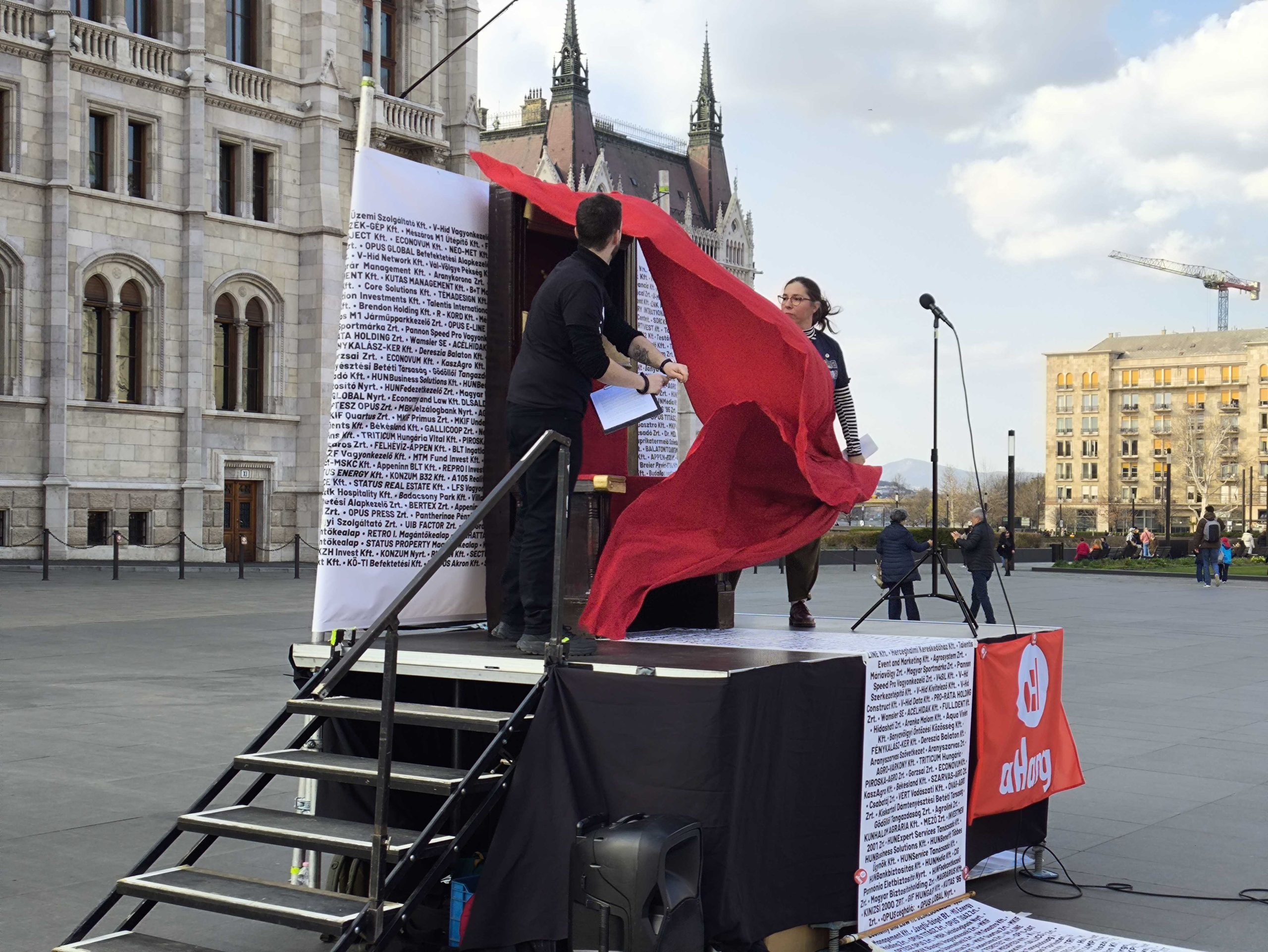 A megnyitón Szalóki Viktor, az aHang politikai igazgatója elmondta, ezek a számok már rég nem emberi léptékűek. Elhangzott, az is hogy Mészáros Lőrinc vagyona 1241 milliárd forint – ez annyi, hogy ha valaki átlagos magyar fizetésből él, akkor 221 ezer évig kellene dolgoznia, hogy elérje ugyanezt. Az aHang munkatársa beszélt a jövőbeli terveikről is.