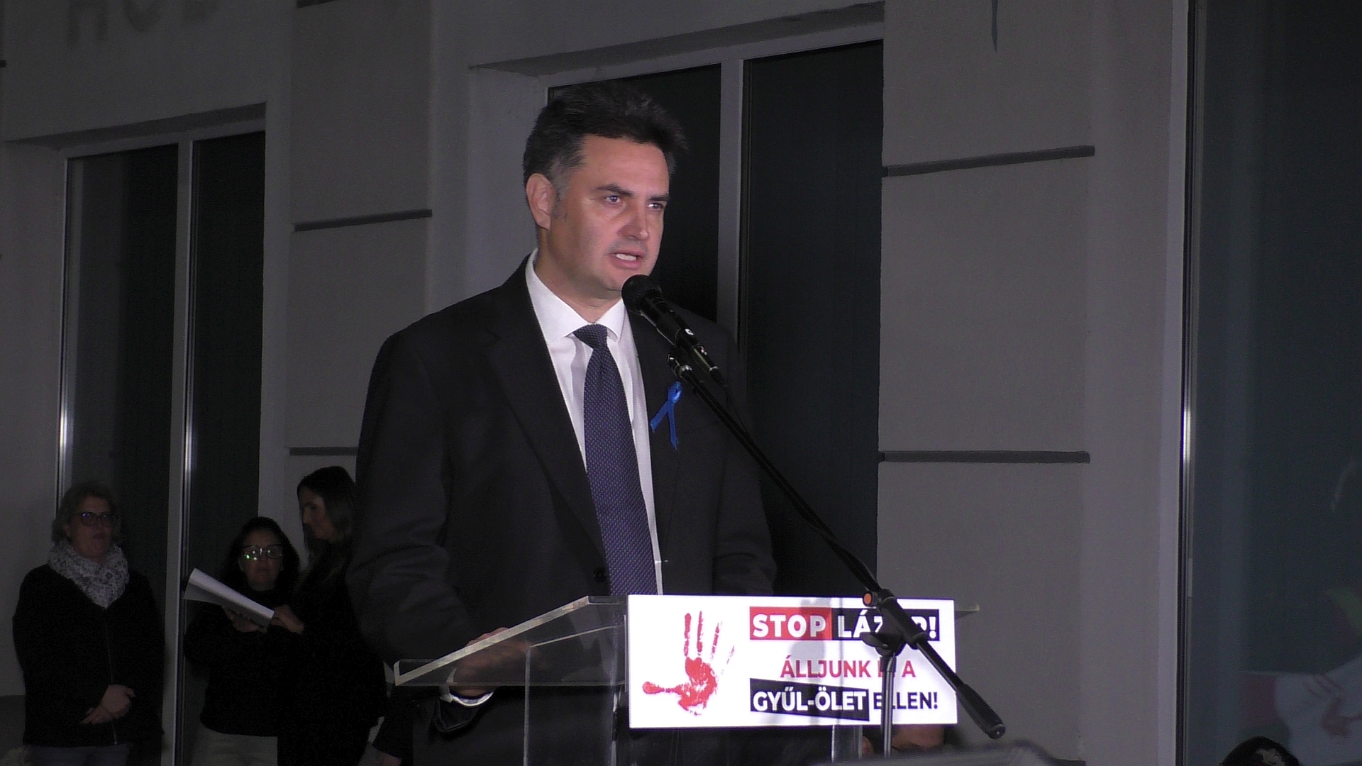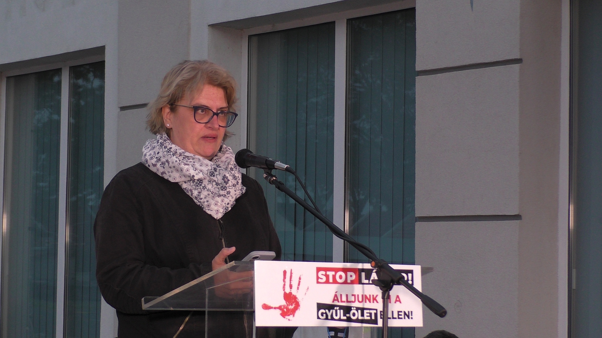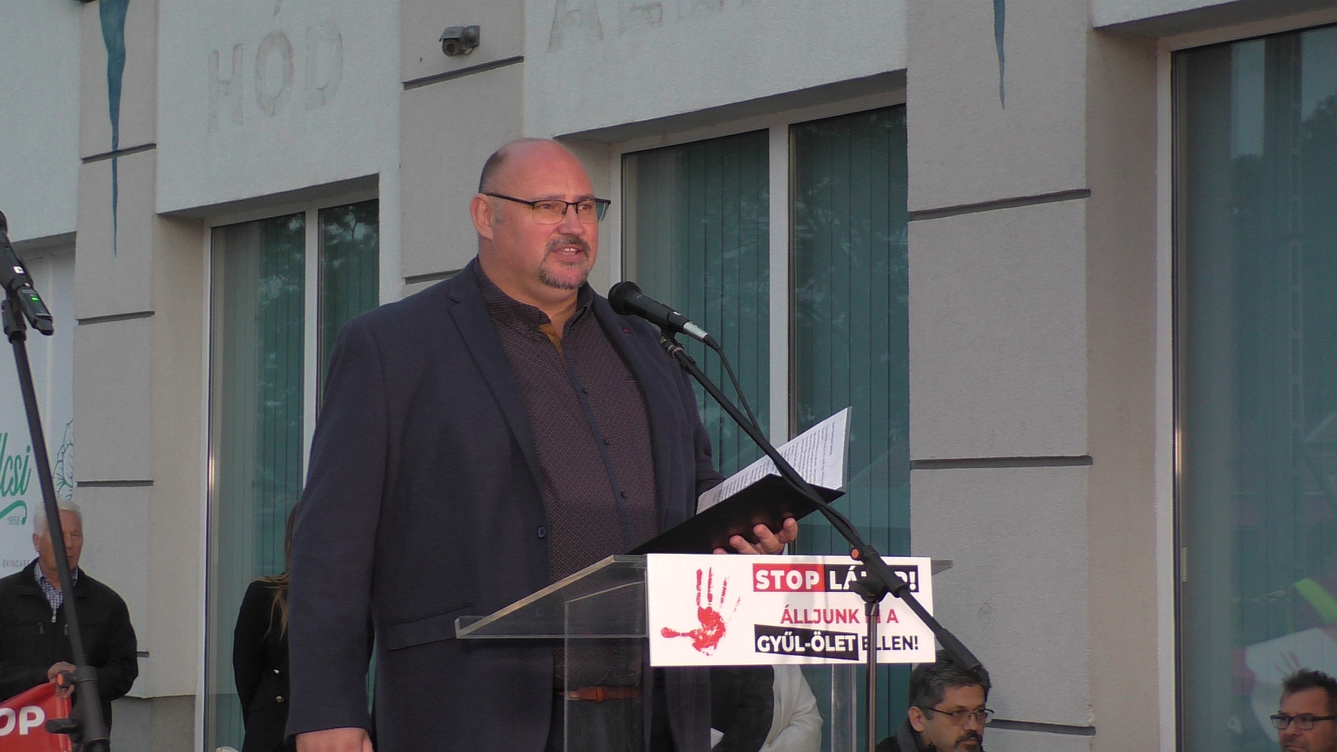 Az esemény STOP LÁZÁR! – Álljunk ki a GYŰL-ÖLET ellen! címet viselte, és a szerkesztőség előtti parkoló kijelölt része, vagyis a fele tele volt résztvevőkkel, de akadtak olyanok is, akik az út másik oldalán, a piac mellől figyeltek. A demonstráció egyik moderátora Kecskés Fanni önkormányzati képviselő volt, aki azzal nyitotta meg az eseményt, hogy emlékeztetett: országos hír lett Szabó Zsolt rendőrkapitány tragédiájából, akire pénteken egy perces néma csenddel emlékeztek.