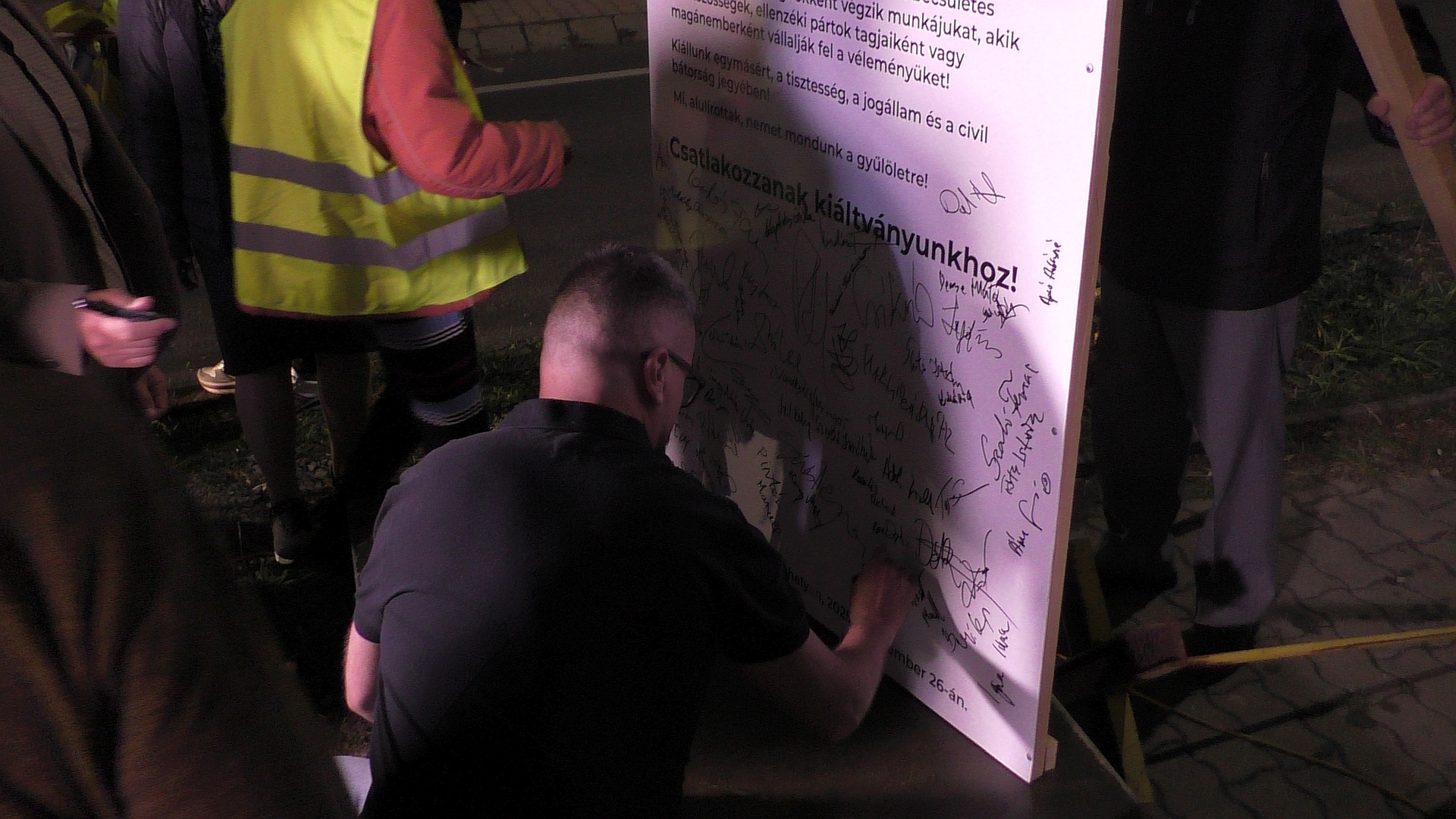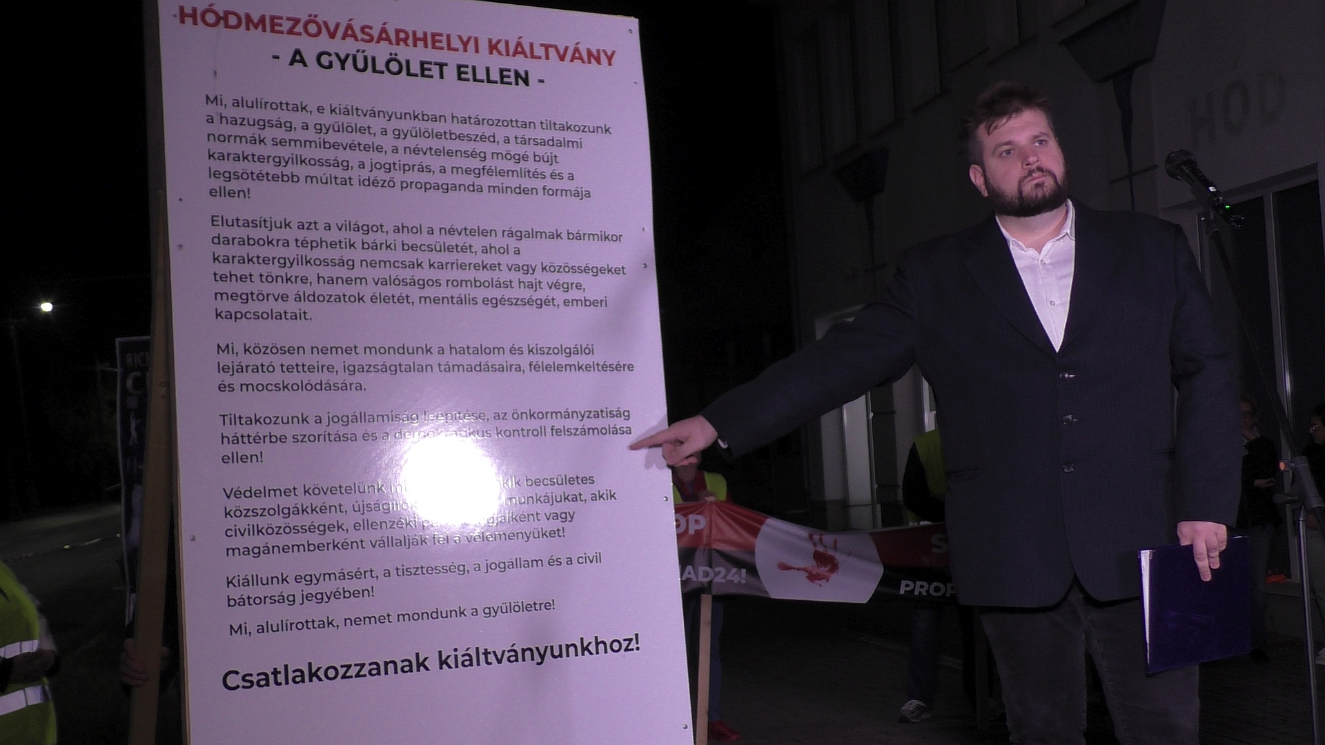 A beszédek után a jelenlévők aláírtak nyilatkozatot, amellyel egy tiltakoznak „a hazugság, a gyűlölet, a gyűlöletbeszéd, a társadalmi normák semmibevétele, a névtelenség mögé bújt karaktergyilkosság, a jogtiprás, a megfélemlítés és a legsötétebb múltat idéző propaganda minden formája ellen”. A szerkesztőségben nem volt bent senki, így a kiáltvány kisebb változatát Márki-Zay bedobta a postaládájukba.