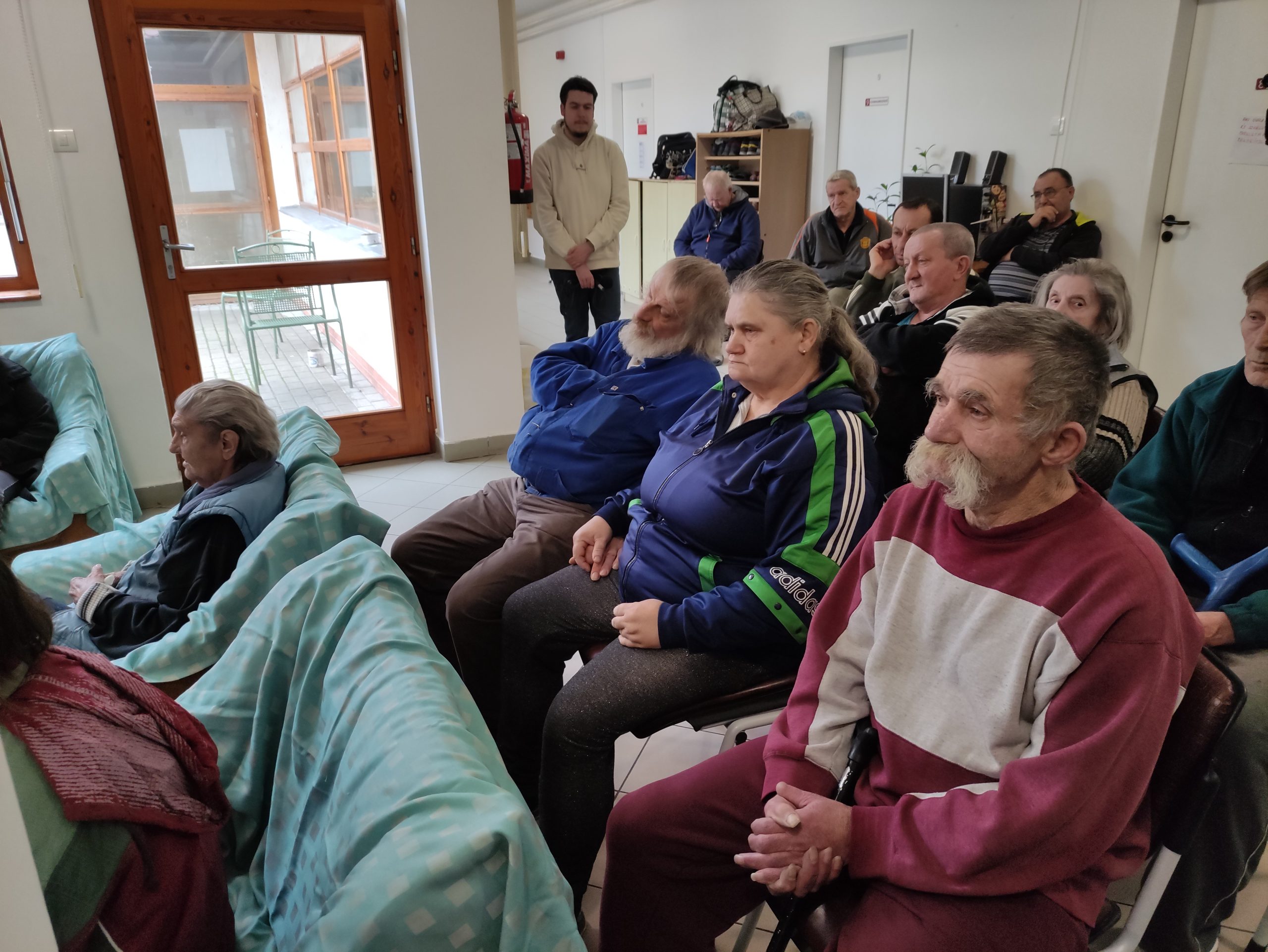 – Régi igénye volt a lakóknak, hogy rendezzünk egy nótadélutánt. Egy éve kérdezte meg az egyik lakónk, mi lenne, ha egy délután nótáznánk. Számos más programunk van: önképzőkör, irodalmi kör, időnként operetteket és slágeroperákat dolgozunk fel. Ez azonban egy színesebb, mindenkit jobban érintő dolog – árulta el Hős Sándor. A hajléktalanszálló igazgatója hozzátette, hogy a lakók a jeles ünnepekre is készülnek: karácsonykor, húsvétkor és a költészet napján verseket szavalnak, a nemzeti ünnepek alkalmával műsort adnak, és megemlékeznek az aradi vértanúkról is. – Járnak múzeumba, képtárba, galériába, tehát szinte minden héten van valamilyen programunk – tette hozzá.