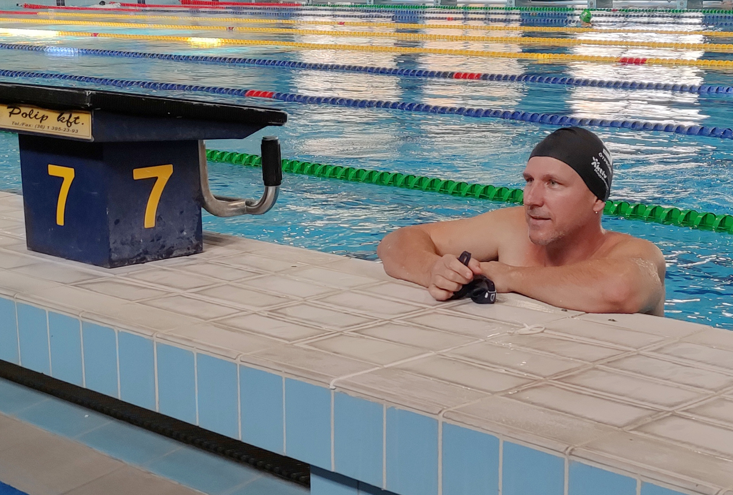 – Telente heti két alkalommal úszom a régi kajakos csapattal. Van, hogy 10–12-en is ott vagyunk a reggeli úszóedzésen. Ez heti két alkalommal, november közepétől március közepéig tart, amíg nem tudunk vízre szállni. Általában 2000 métert teszek meg, de most még a bemelegítő fázisban vagyok, úgyhogy 1500 métert fogok teljesíteni – árulta el a kétszeres olimpiai bajnok, aki némi bemelegítés után be is ugrott a medencébe, hogy megtegye a távot.