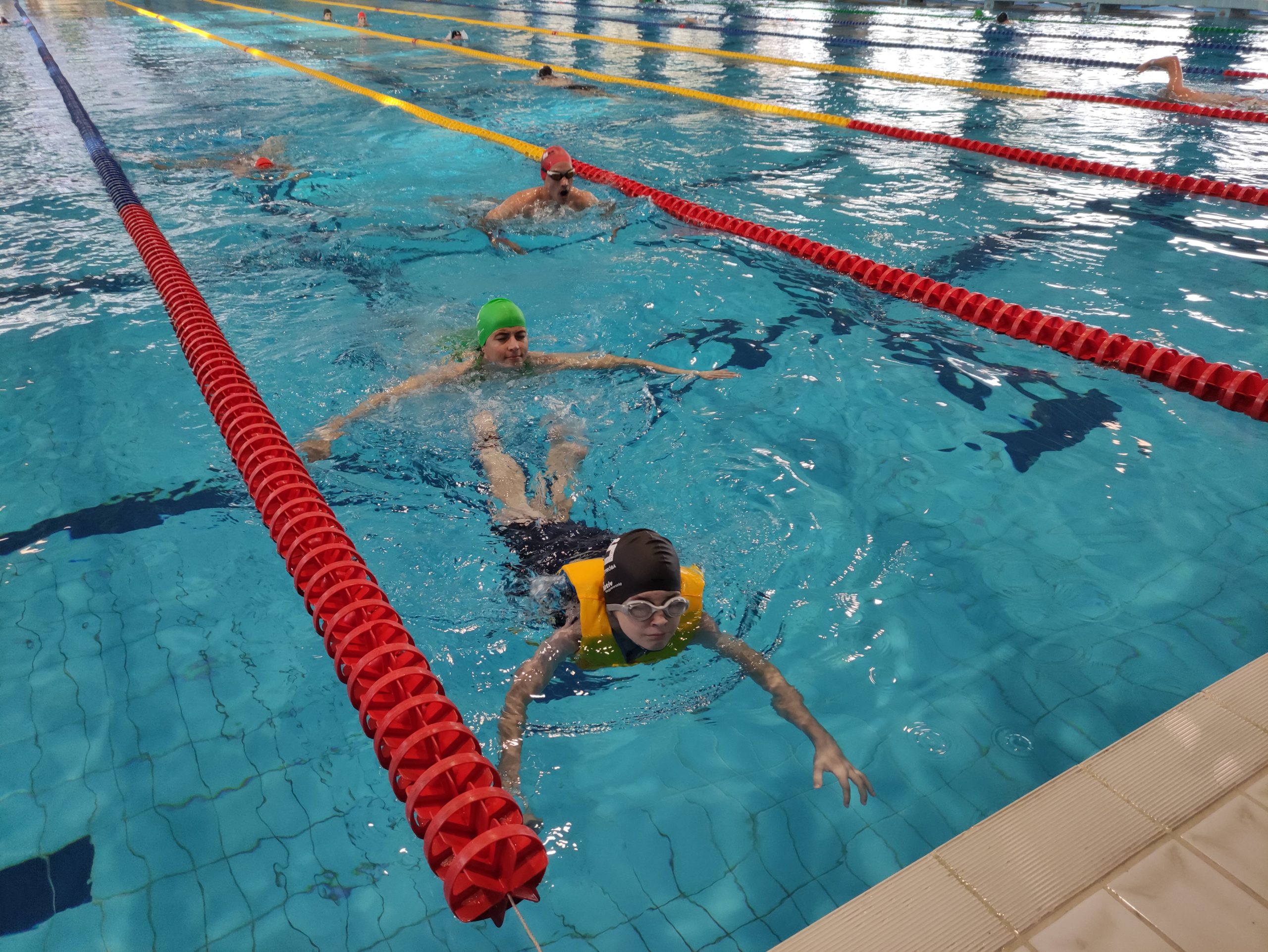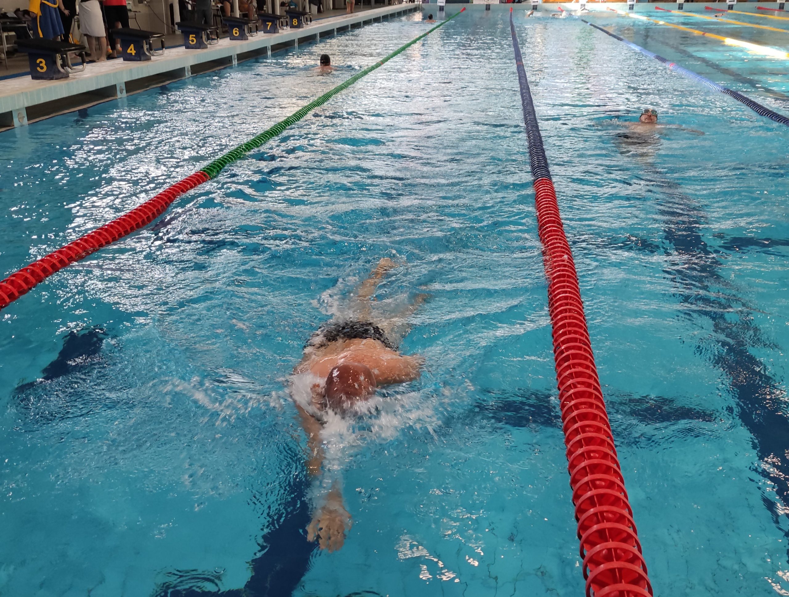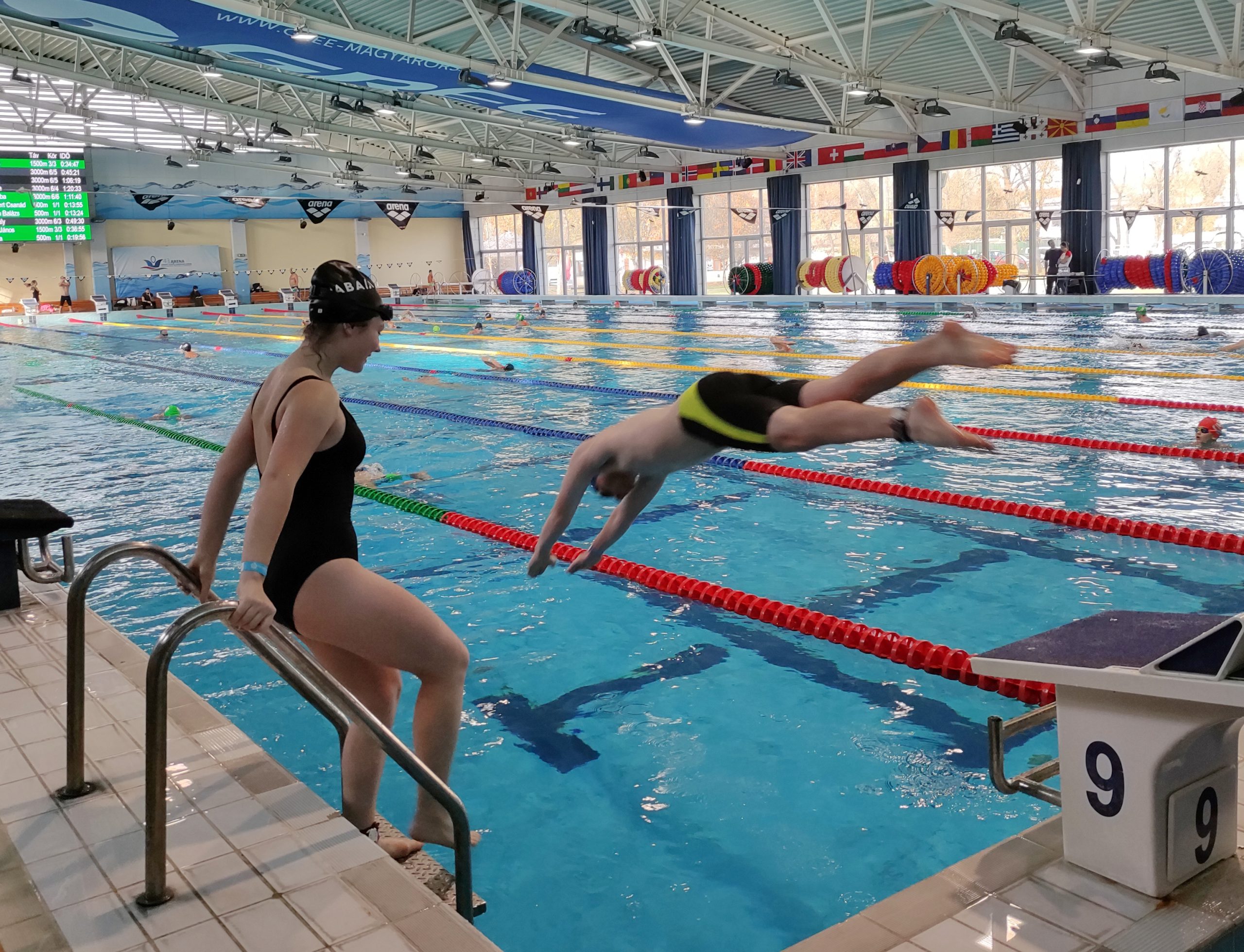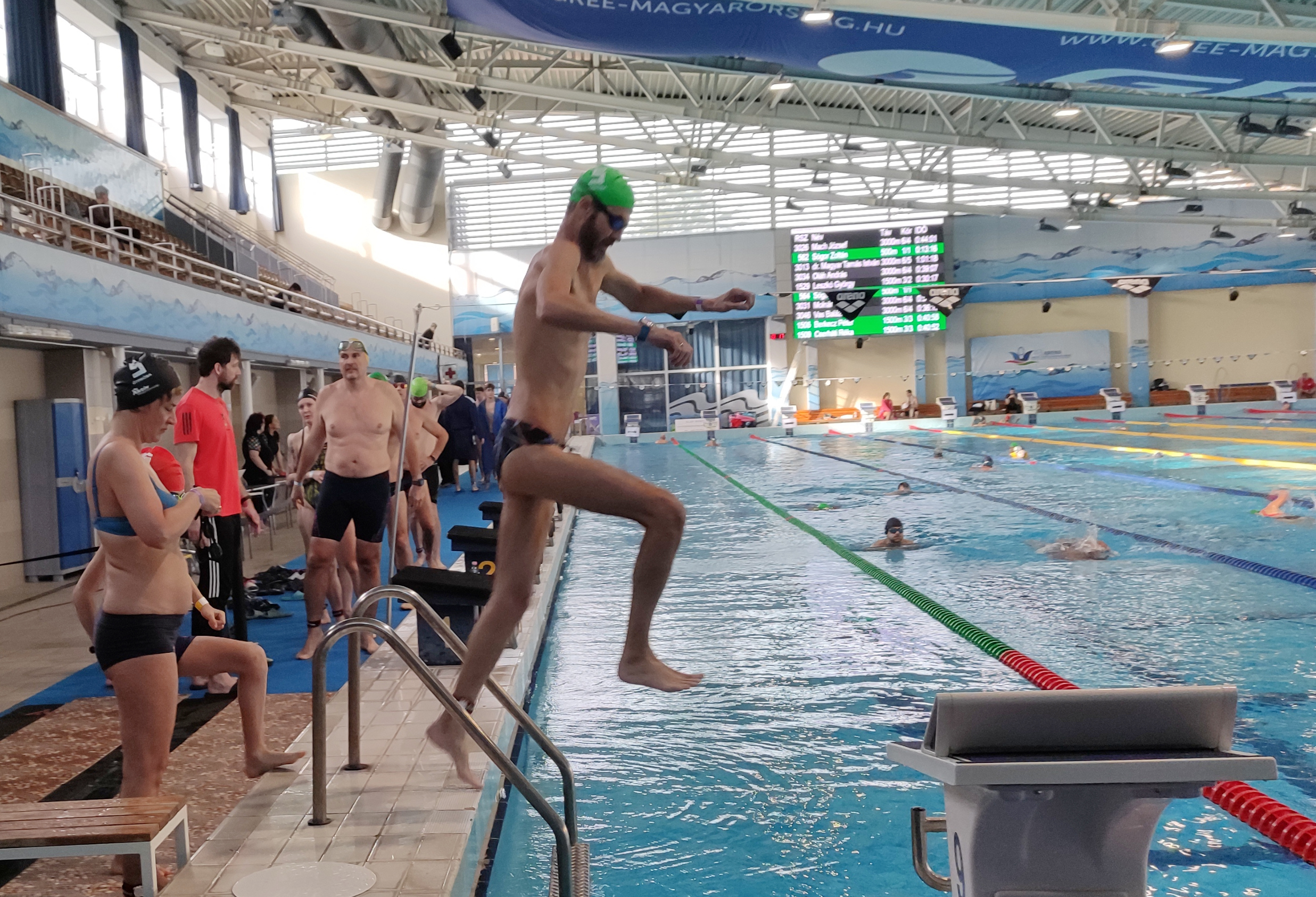 A nap kezdetétől egészen a végéig rengetegen voltak egyszerre a medencében, és forduláskor már a másik sávba siklottak. A saját eredményeiket pedig az óriás LED-falakon követhették nyomon.