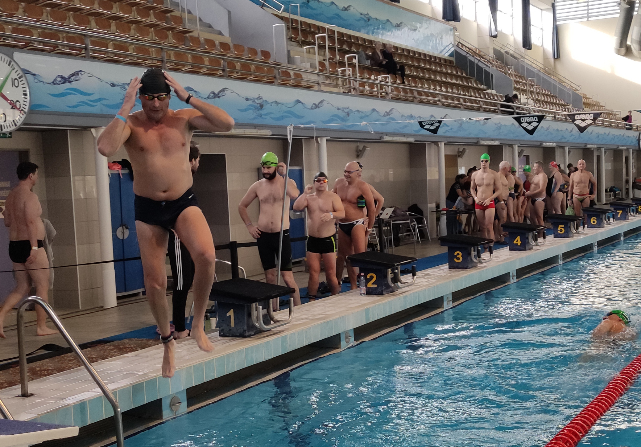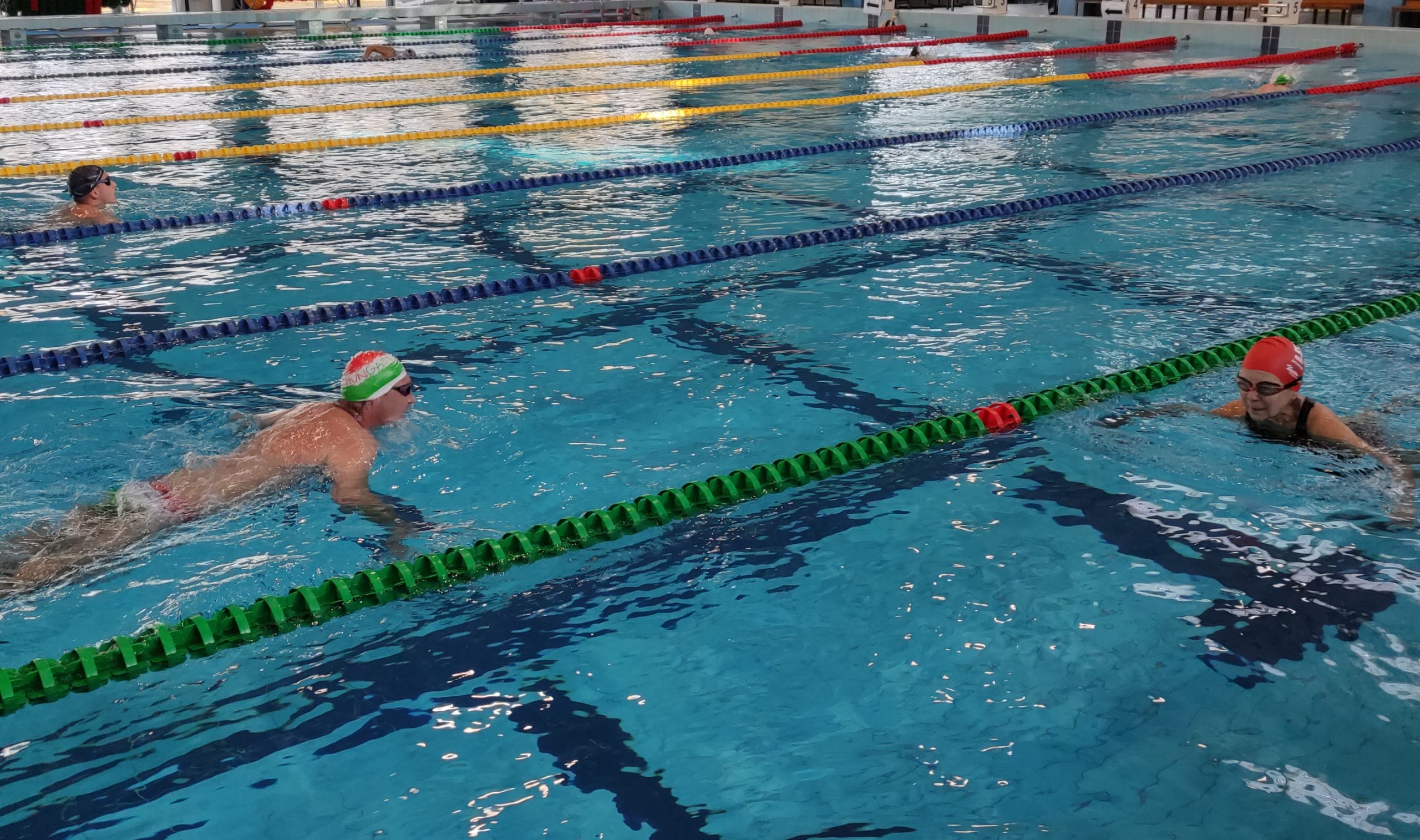 – Telente heti két alkalommal úszom a régi kajakos csapattal. Van, hogy 10–12-en is ott vagyunk a reggeli úszóedzésen. Ez heti két alkalommal, november közepétől március közepéig tart, amíg nem tudunk vízre szállni. Általában 2000 métert teszek meg, de most még a bemelegítő fázisban vagyok, úgyhogy 1500 métert fogok teljesíteni – árulta el a kétszeres olimpiai bajnok, aki némi bemelegítés után be is ugrott a medencébe, hogy megtegye a távot.