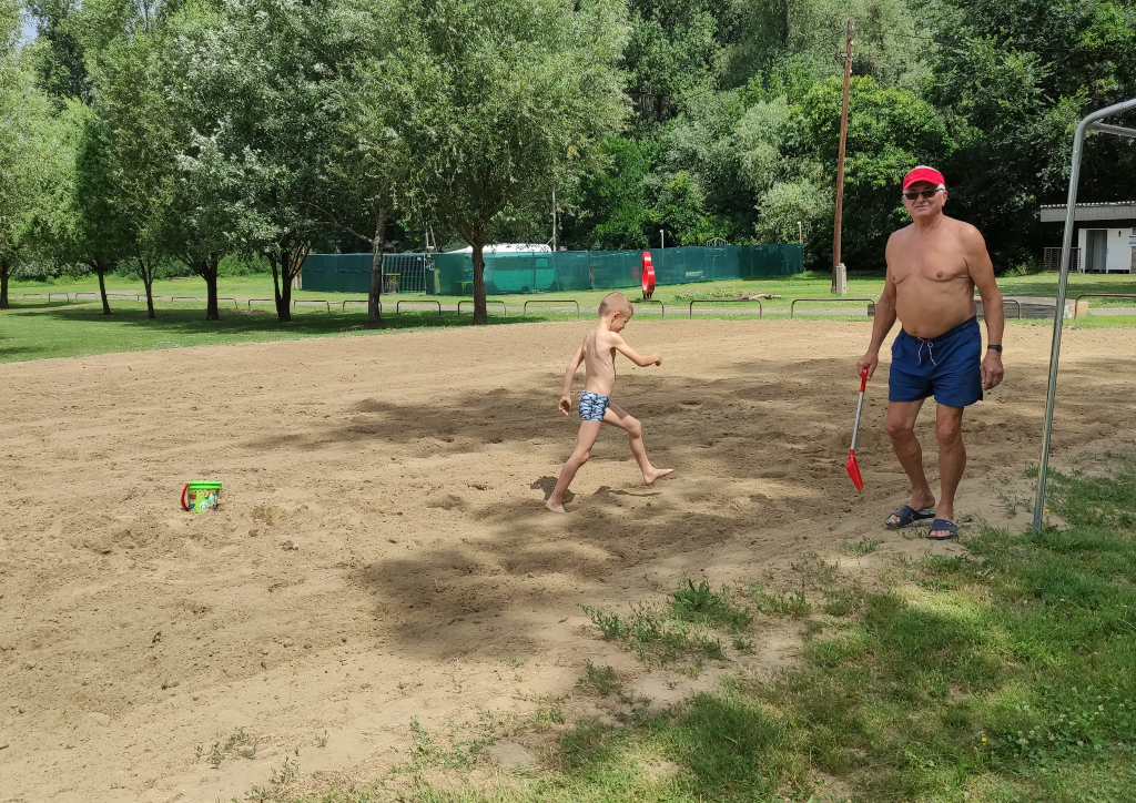 – Nagy itt a nyugalom és nagyon jó a homokozója – mondta a feleségével és a hét és fél éves unokájával máris itt pihenő, makói Bíró Ferenc. Aki elmondta, hogy Mártély a makói maros-parti strandhoz és a vele egy helyen lévő kalandparkhoz képest csendesebb.