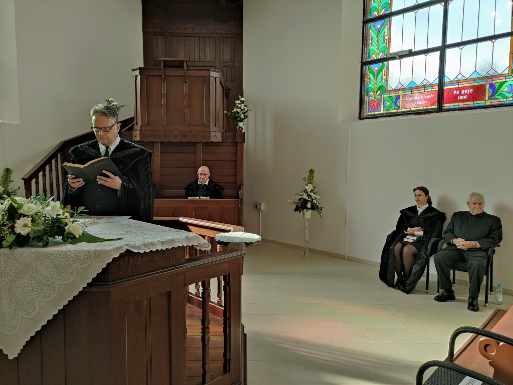 Az istentisztelet kezdetén Monoki Mariann és Rácz Attila gyülekezeti tagok mondtak verset és énekeltek, majd Juhász András, a Csongrádi Református Egyházmegye esperese köszönte meg az Úrnak, az adományokat és az elvégzett munkát.