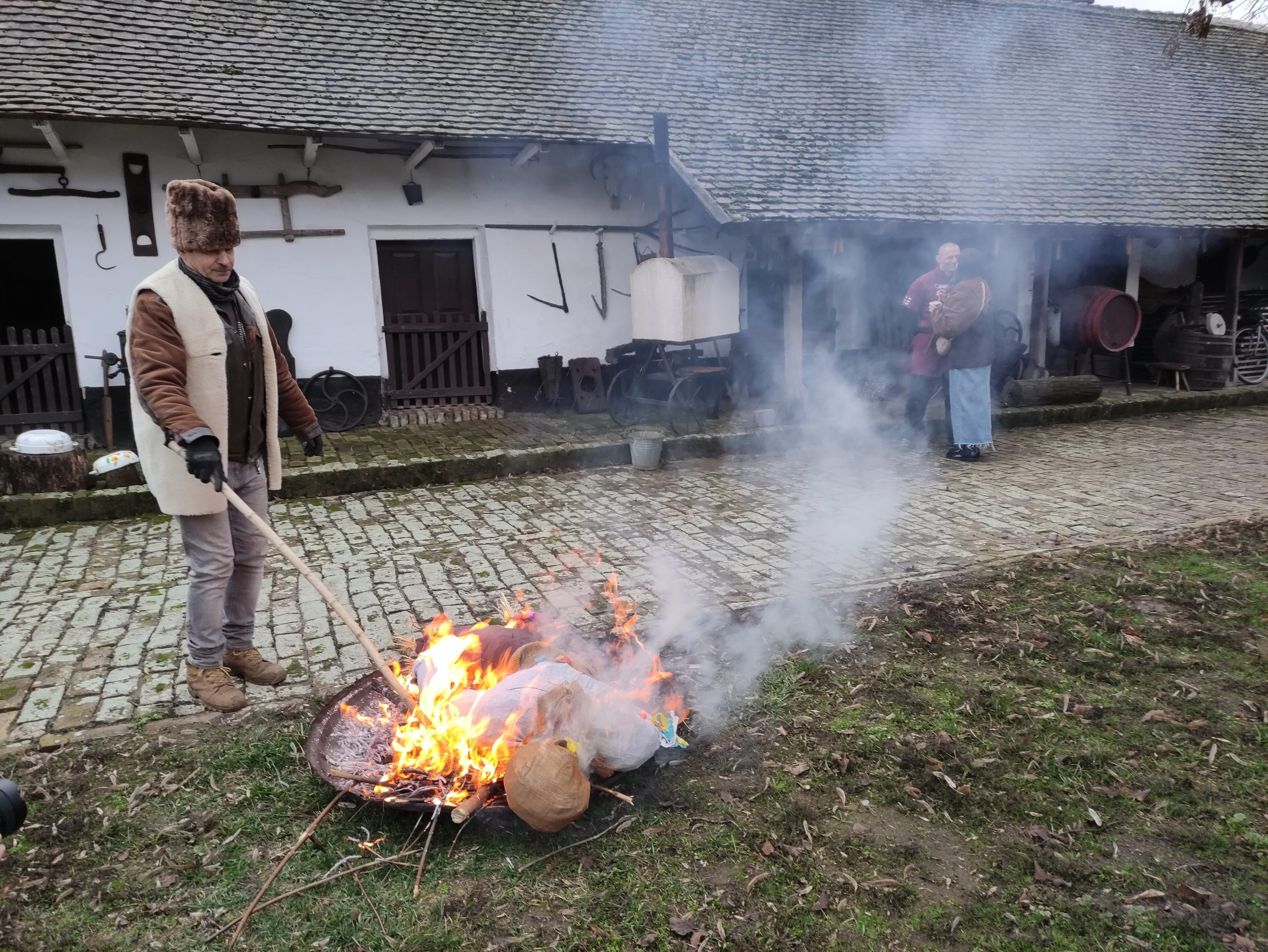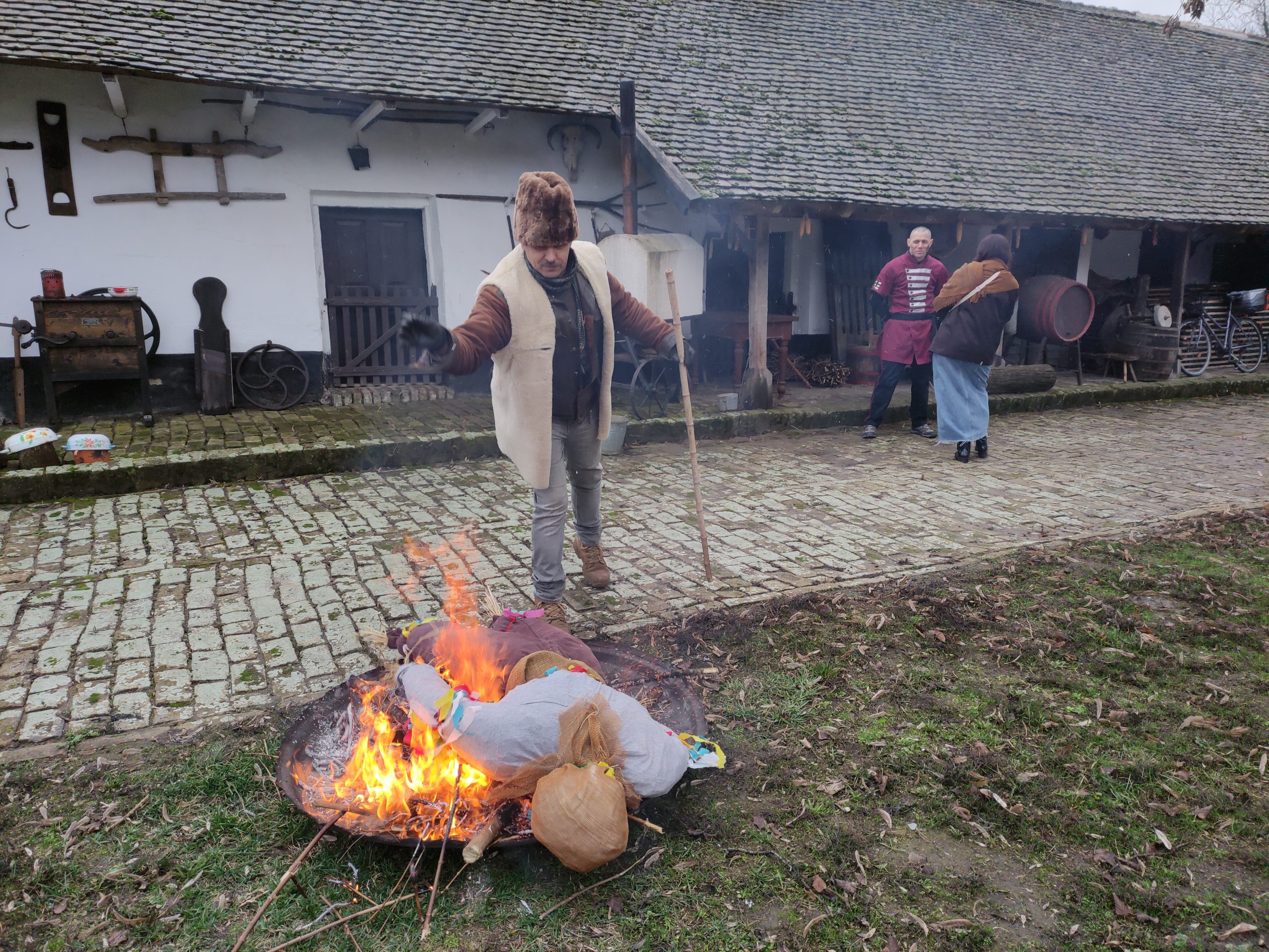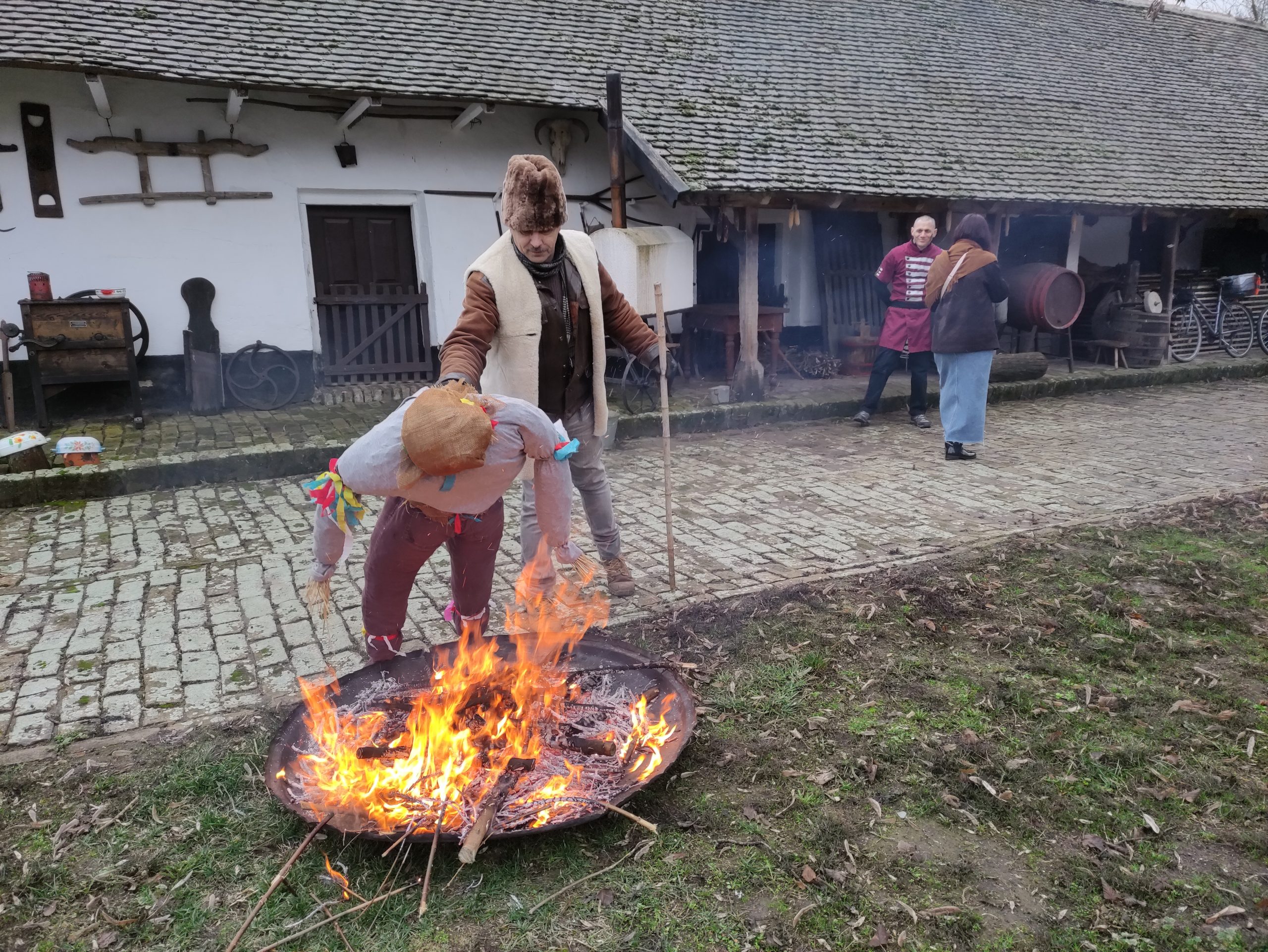 A pünkösd farkán rendezett tájházi maskarázón Konc király és Cibere vajda viadala szokatlan véget ért, és a tűzön nemcsak a telet jelképező bábu, hanem a gondűző üzenetek is elhamvadtak.