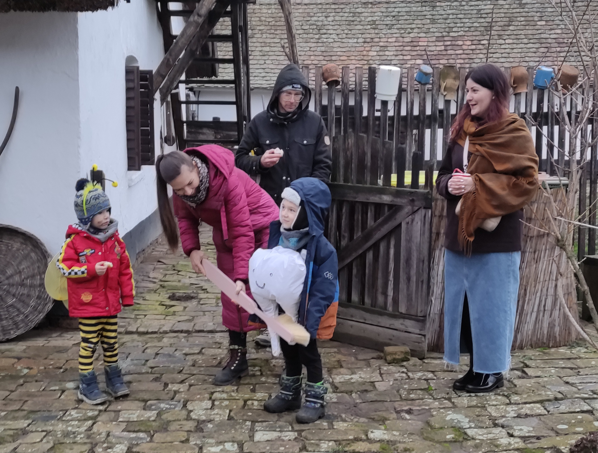 A pénteki és szombati tavaszias idő után vasárnap ismét hideg, havas esős idő köszöntött be, így az Árpád utcai tájházban rendezett maskarázóra érkező érdeklődőknek nem is kellett különösebben beleélniük magukat a télűzés hangulatába.