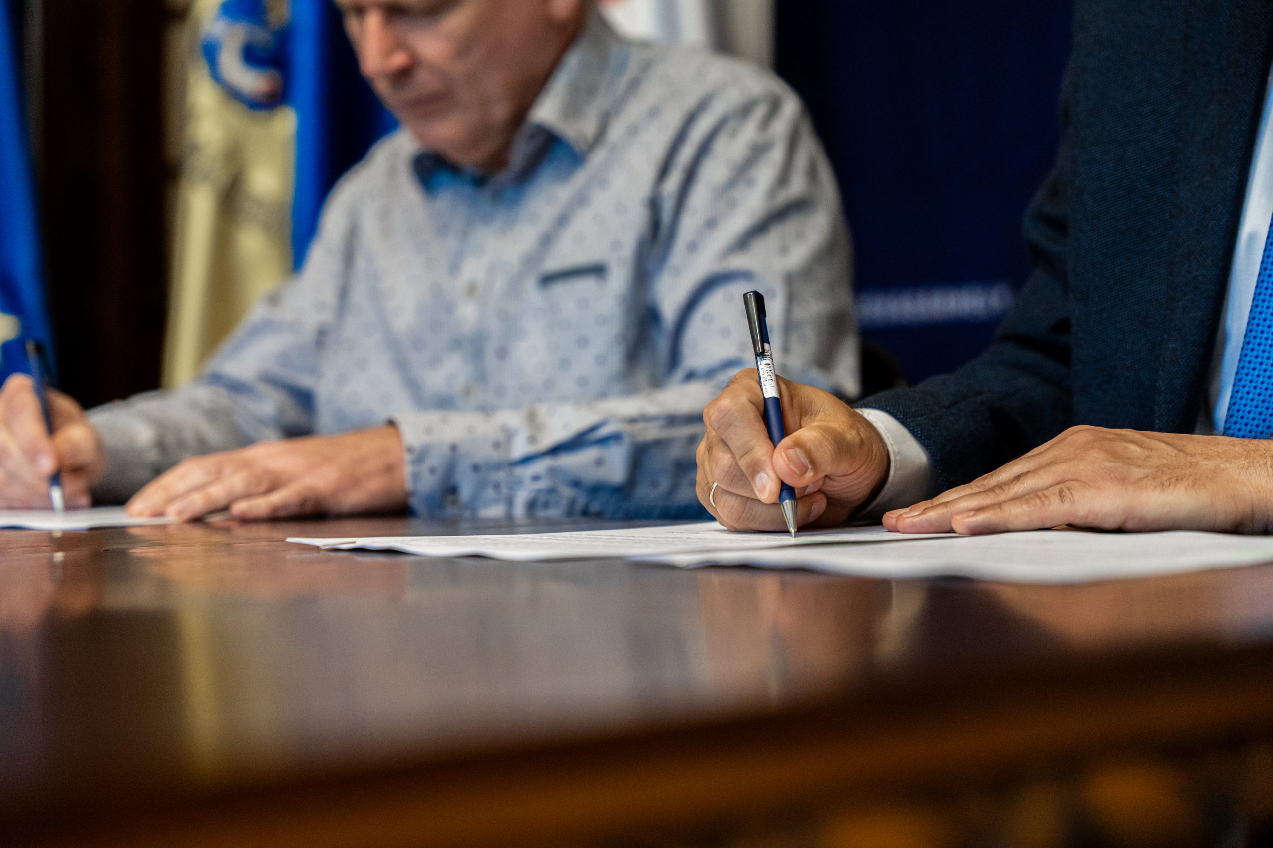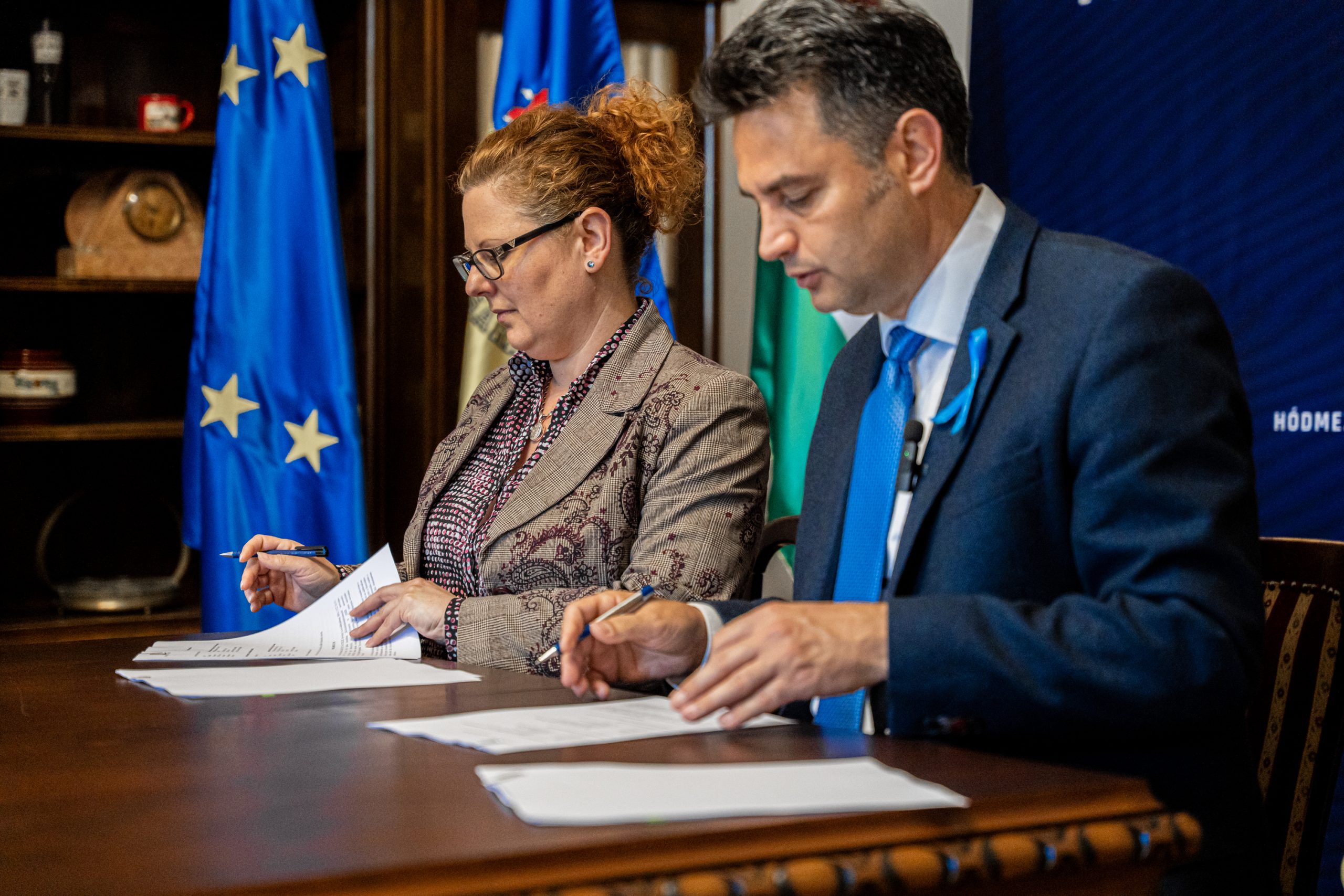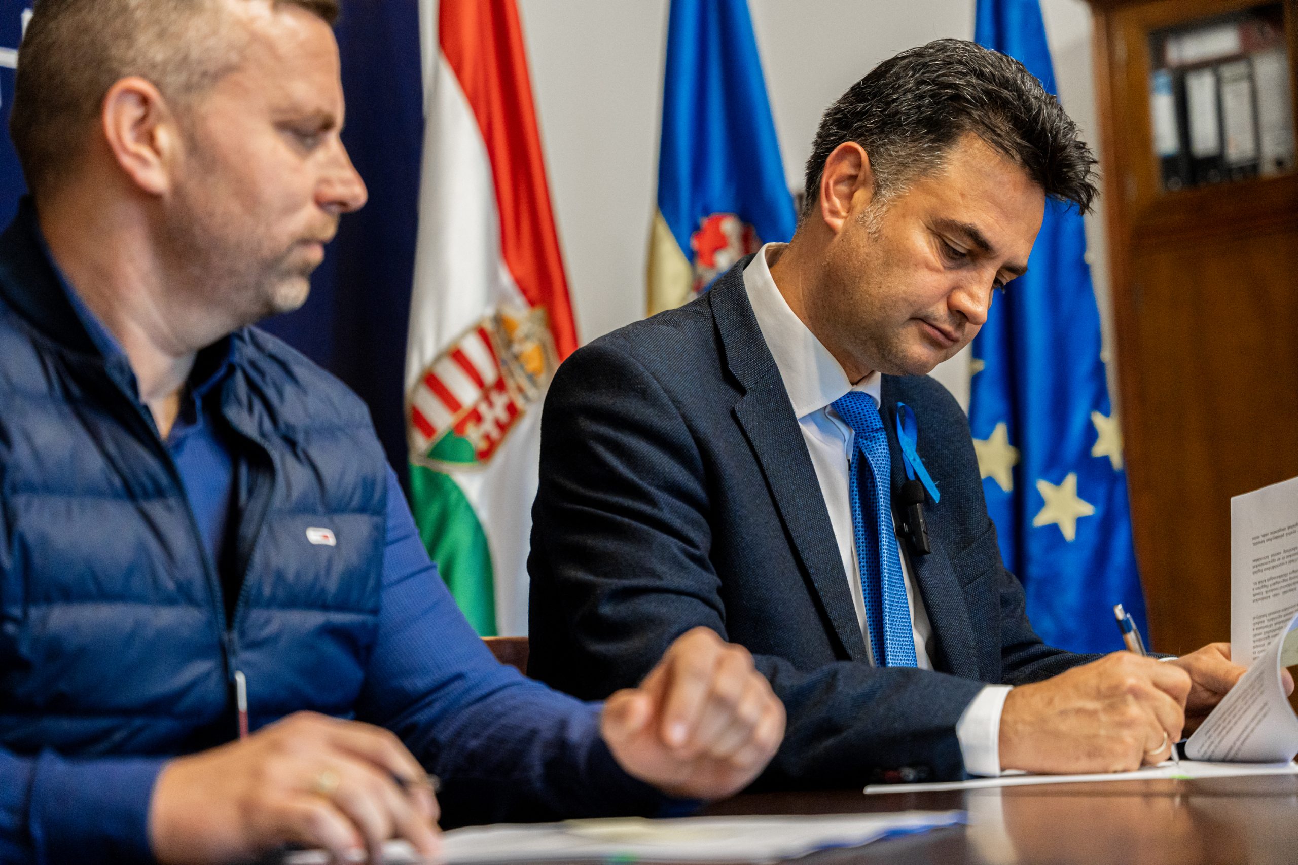 Hétfőn „nagyüzem” volt a városházán, hiszen több, a város fejlesztését érintő tervet írtak alá, ezek között a Kertvárosi Óvodához és Bölcsődéhez építendő parkoló, a Lidl-nél létesülő körforgalom vagy a víztorony felújításáról szólót. Mindez része annak a másfél milliárdos keretnek, melyet idén saját forrásból fog városfejlesztési projektekre költeni az önkormányzat.