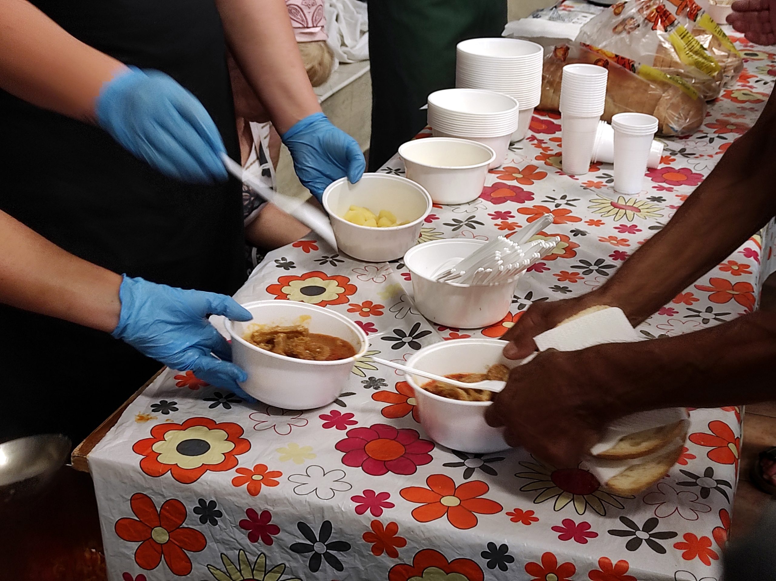 A tizenegy órai ruhaválogatást mindig a dél tájékára általában már asztalkész ebédosztás követi. A program ezúttal sem változott, de a július 14-i alkalom kicsit eltért a szokásostól, mivel kivételesen két különböző menüt is készítettek: 40 kg felajánlott pacalból és 50 kg körömből körülbelül száz adag pacalt főztek, mellette pedig készült nagyjából 450 tányérnyi kolbászos paprikás krumpli is.