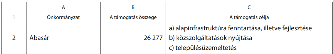 Nemesbük ugyanis 10 450, tehát Tízezer négyszázötven, míg Abasár 26 277, azaz Huszonhatezer kétszázhetvenhét forint rendkívüli támogatásban részesült. A támogatás célja minden esetben: