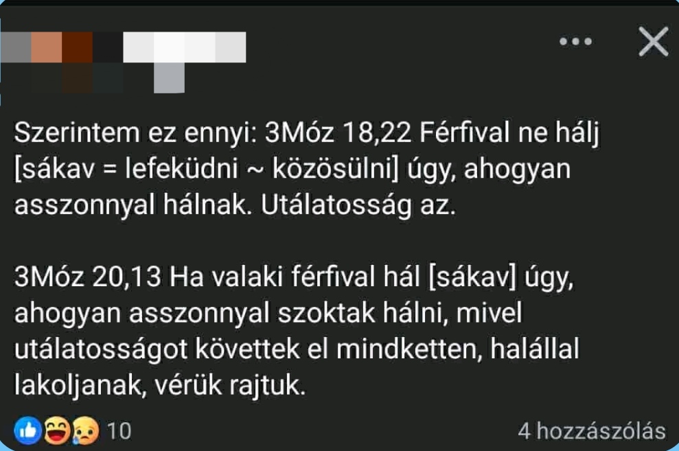 Egy nappal a történelmi méretű Budapest Pride után tett ki egy privát Facebook-posztot a Szegedi Tudományegyetem Szociológia Tanszékének egyik oktatója, amelyben a Bibliából, Mózes könyvéből idézett két részletet.