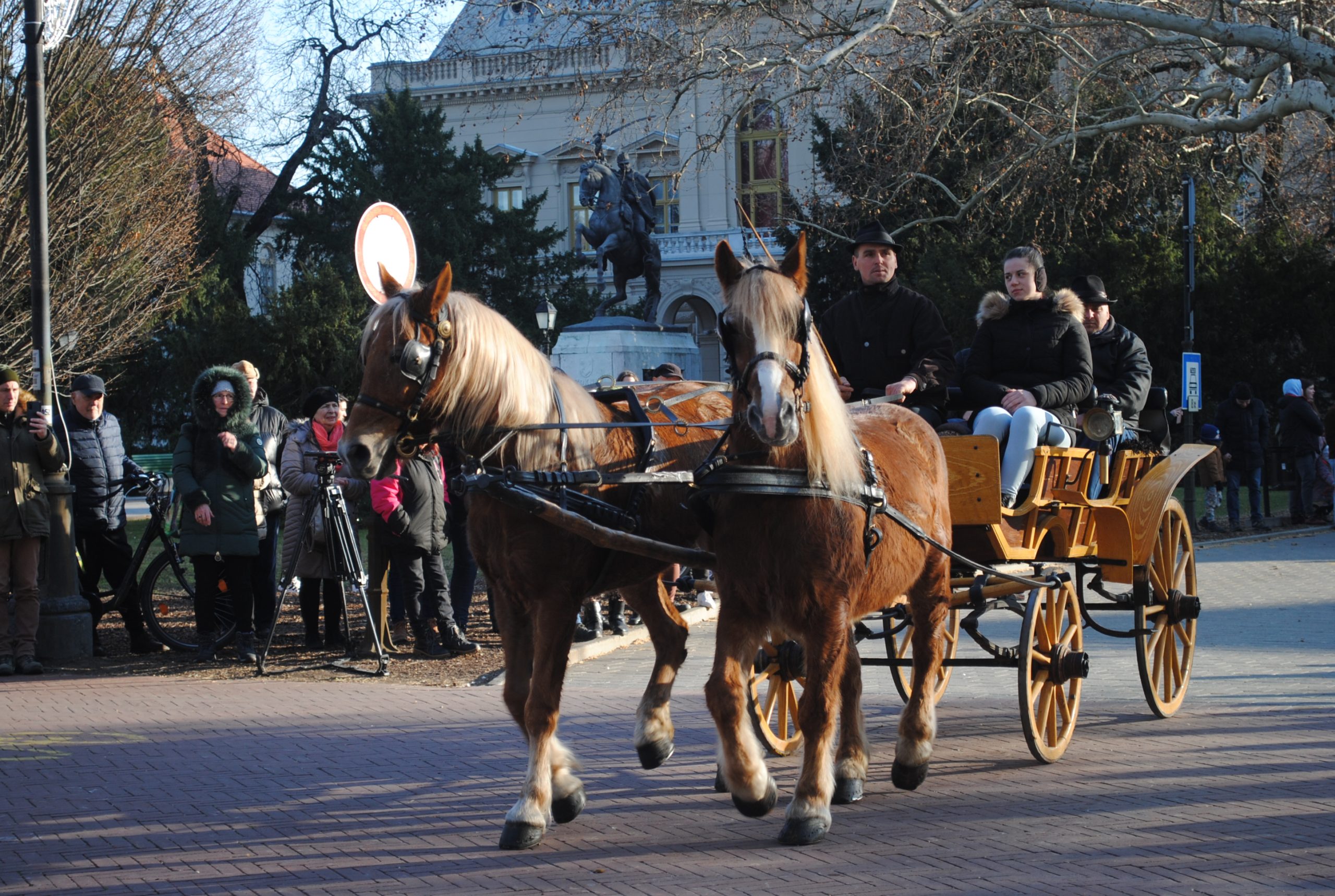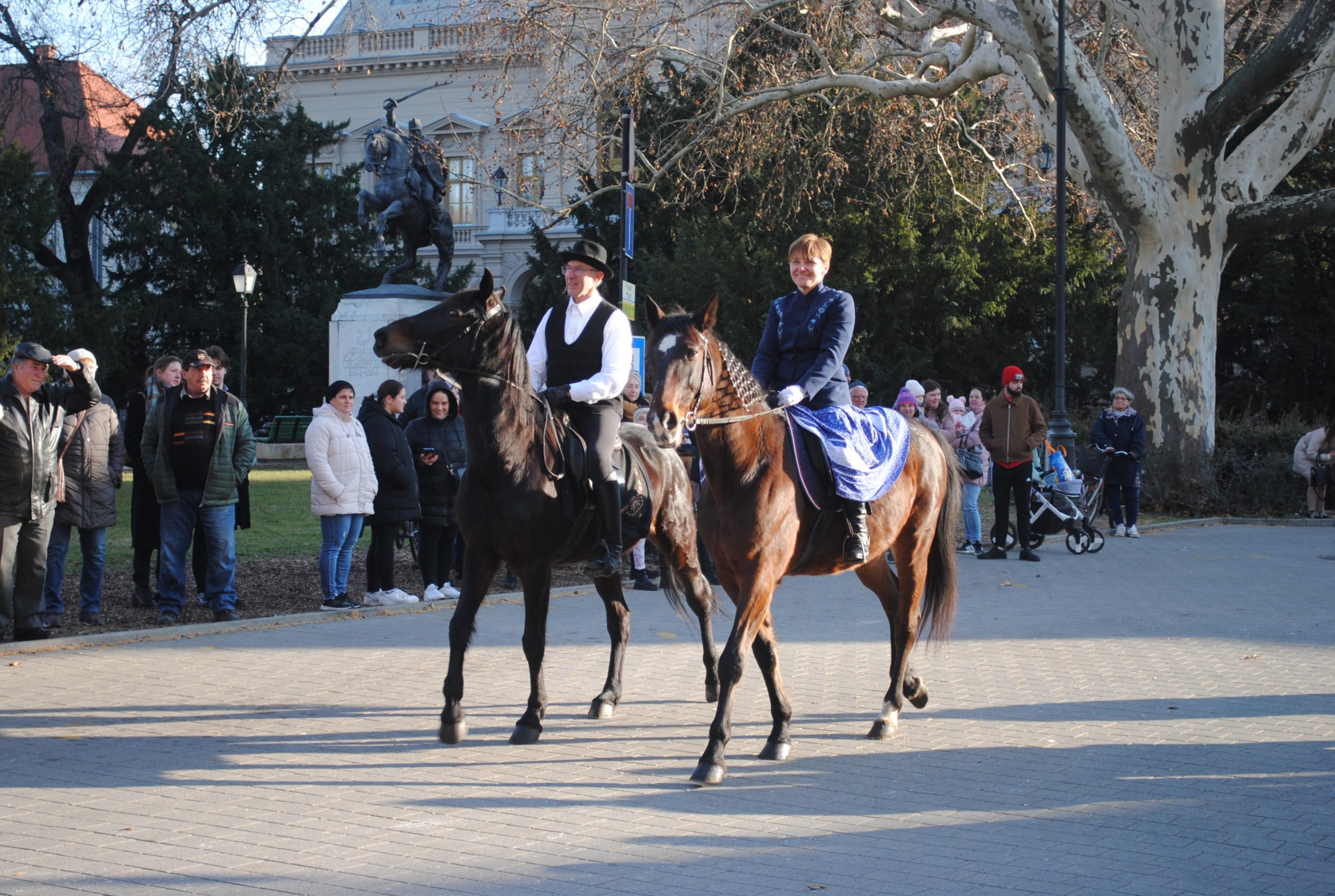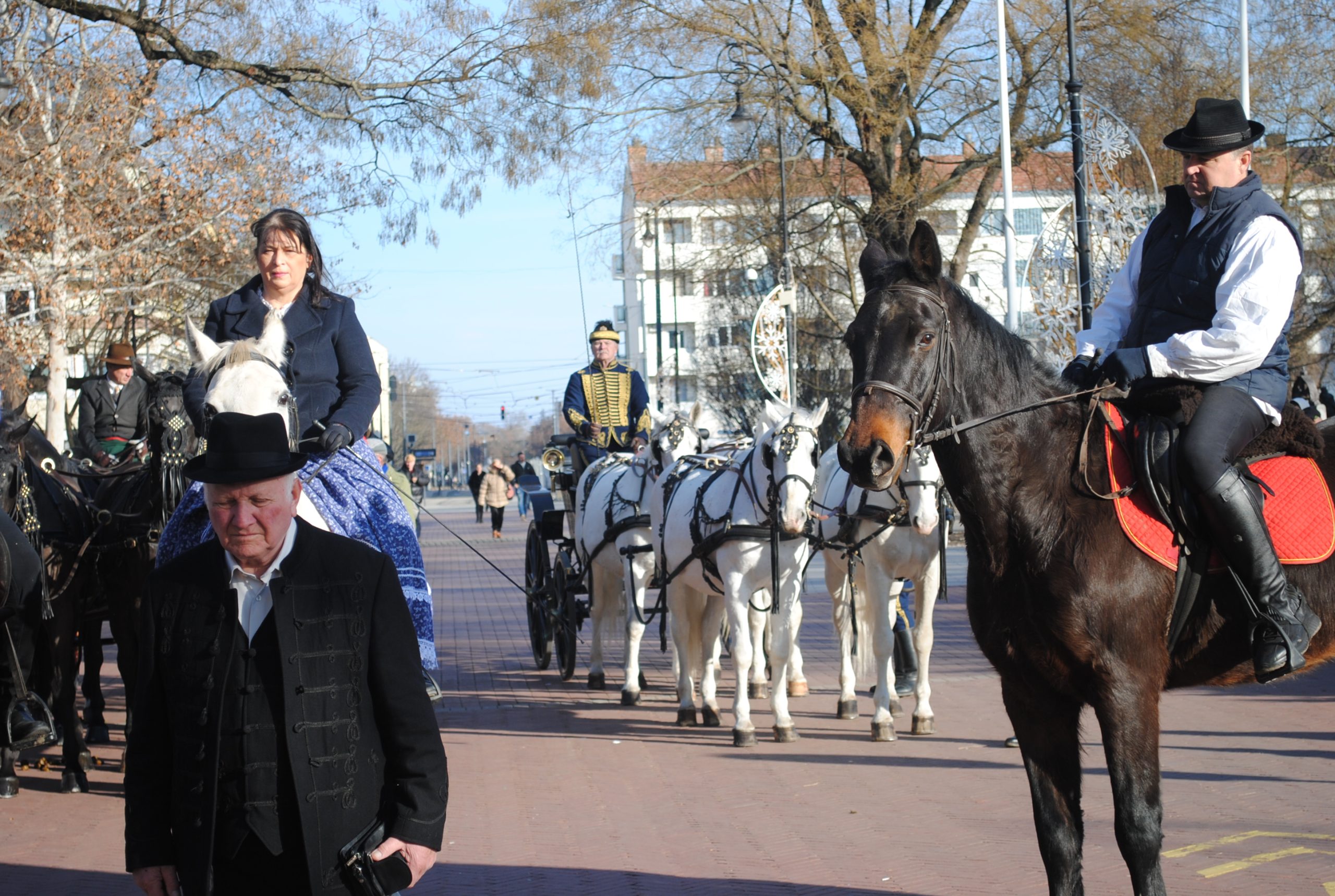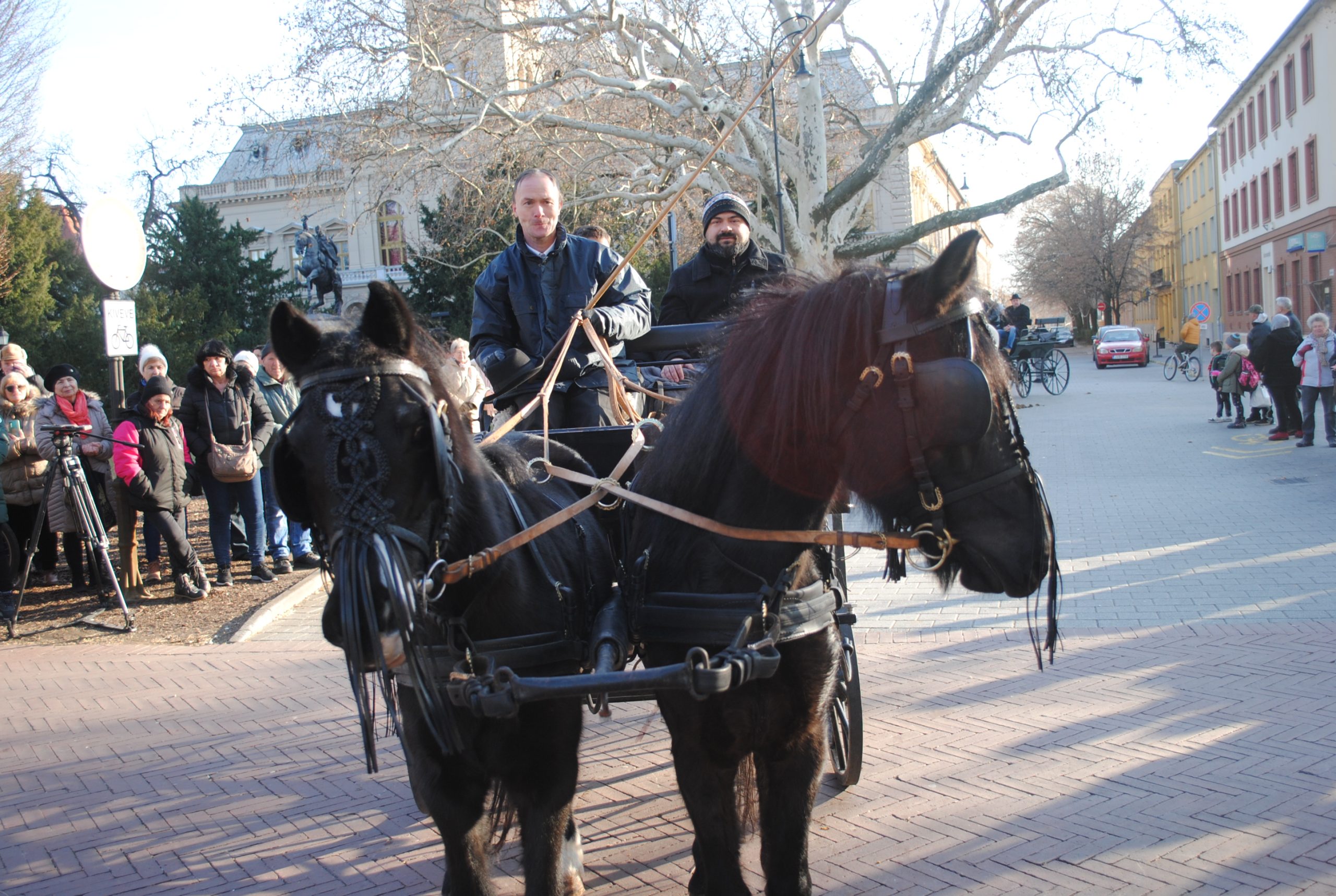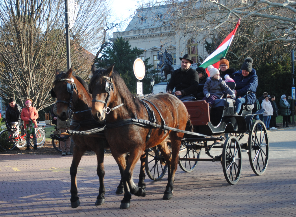 – A tavaly már bemutatkozott mezőhegyesi és szilvásváradi fogatok mellett, itt van a vásárhelyi Kis János nóniuszfogata is. Ahogy tavaly, így az idén is a lovak színes kavalkádja vonult fel. A magyar fajták jeles képviselői, mint a lipicai, a nóniusz, furiozo north star mellett, érdekességként jelen voltak, nyereg alatt és kocsit húzva is fríz lovak, látható volt egy tarka pinto, de voltak arab lovak és ügető lovak is. A lovasok zöme Vásárhelyről és a város környékéről érkezett – összegezte látottakat.