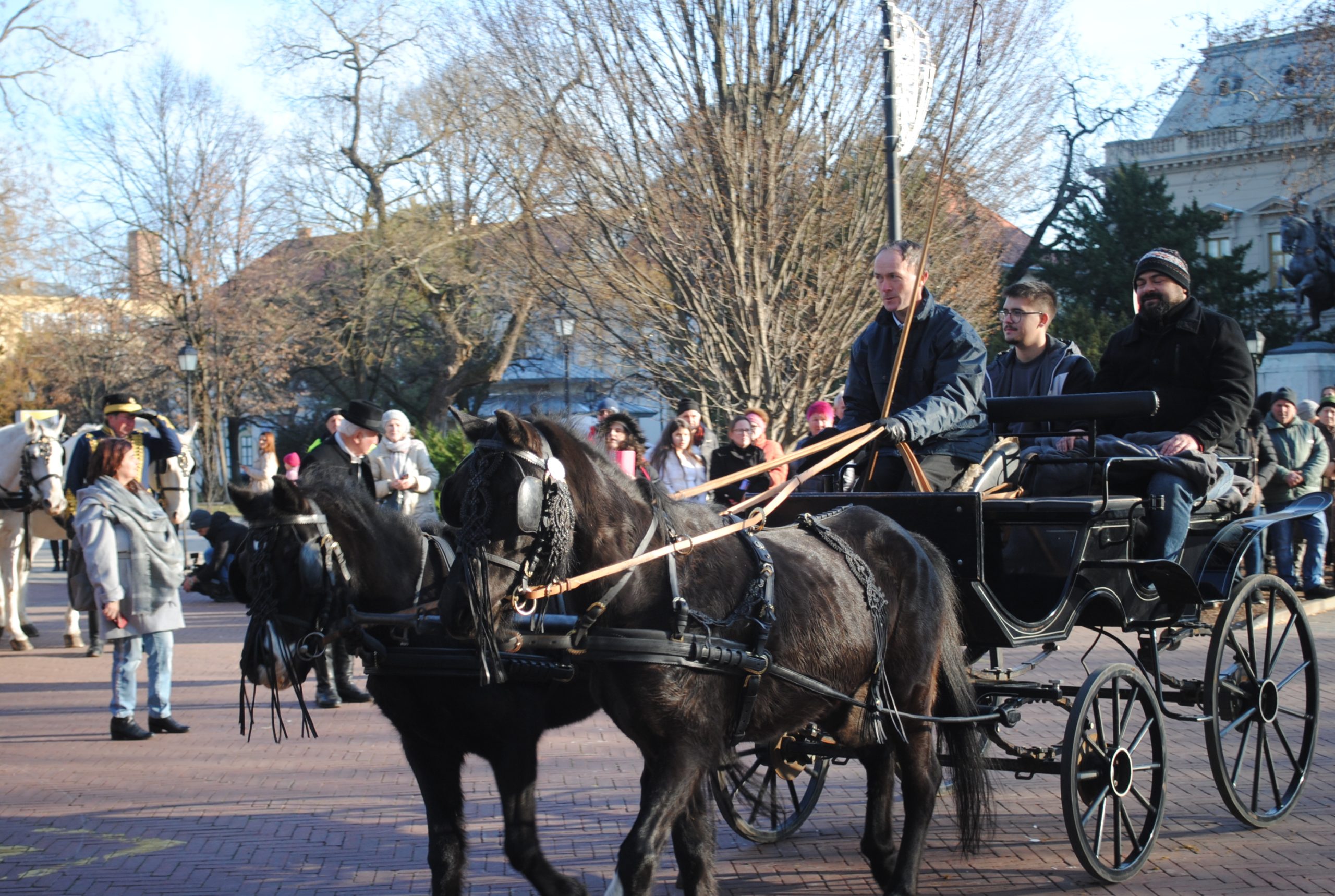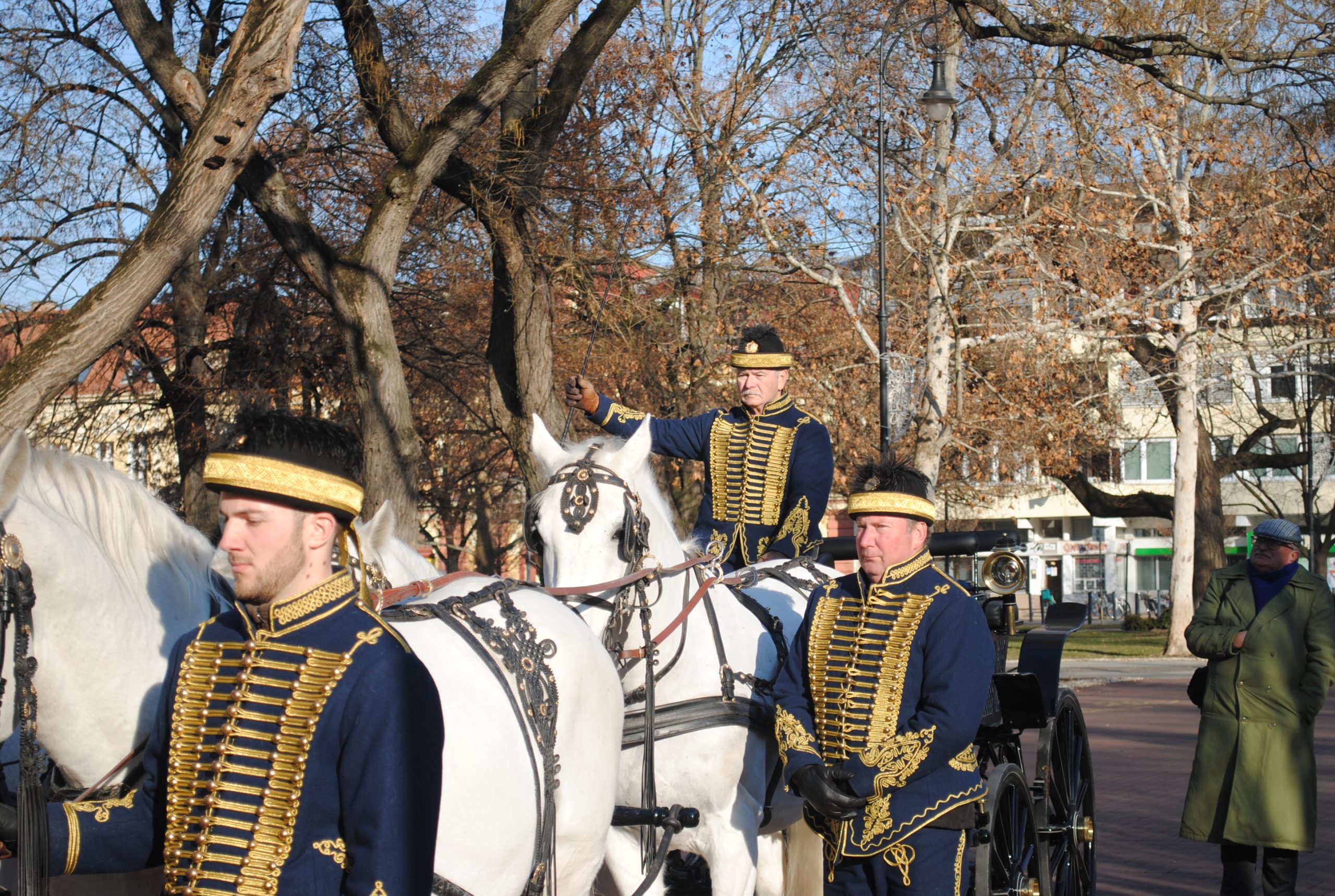 A szilvásváradi fogat egyébként egy erre az alkalomra készített, díszes Esterházy kocsit húzott, s most nagy sikert aratott a felvonulásra érkezett vásárhelyiek körében. Legalább akkorát, mint a fekete lovakból álló, Cziráki-Esterházy kocsi elé kötött, a Mezőhegyesi Nemzeti Ménesbirtok és Tangazdaságból érkezett nóniusz ötös fogat.