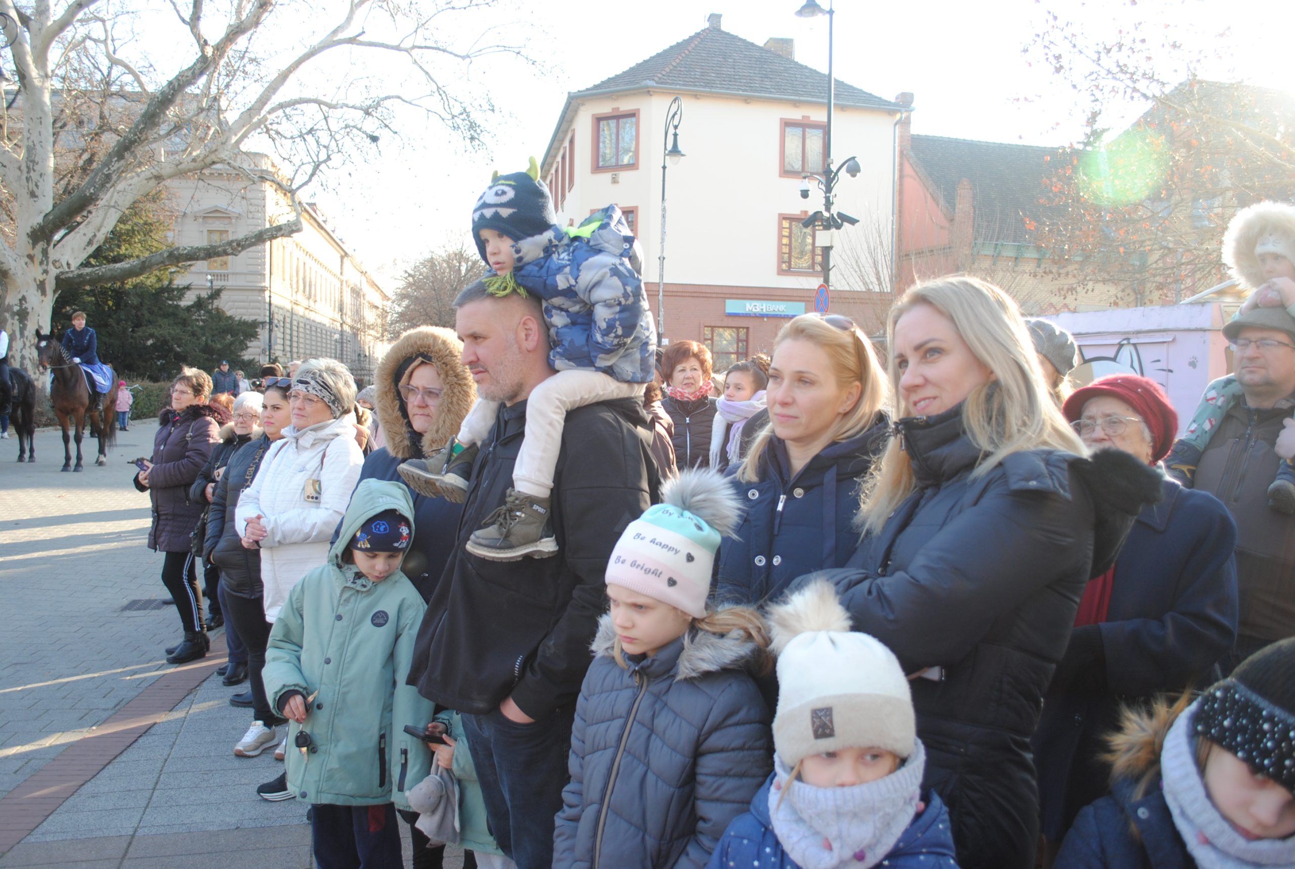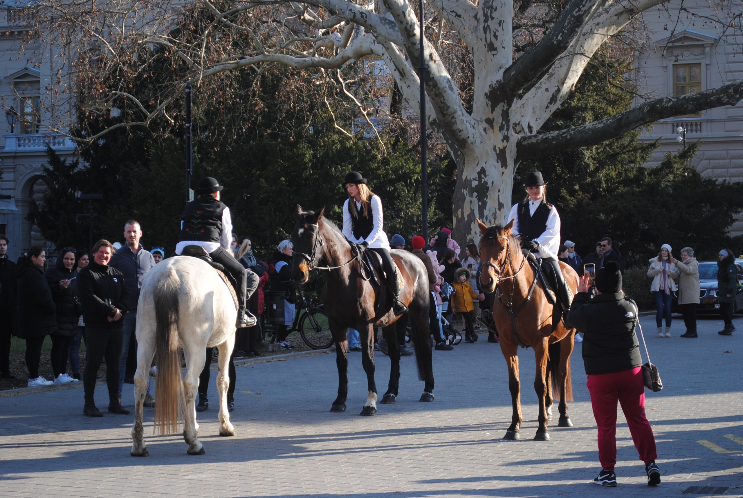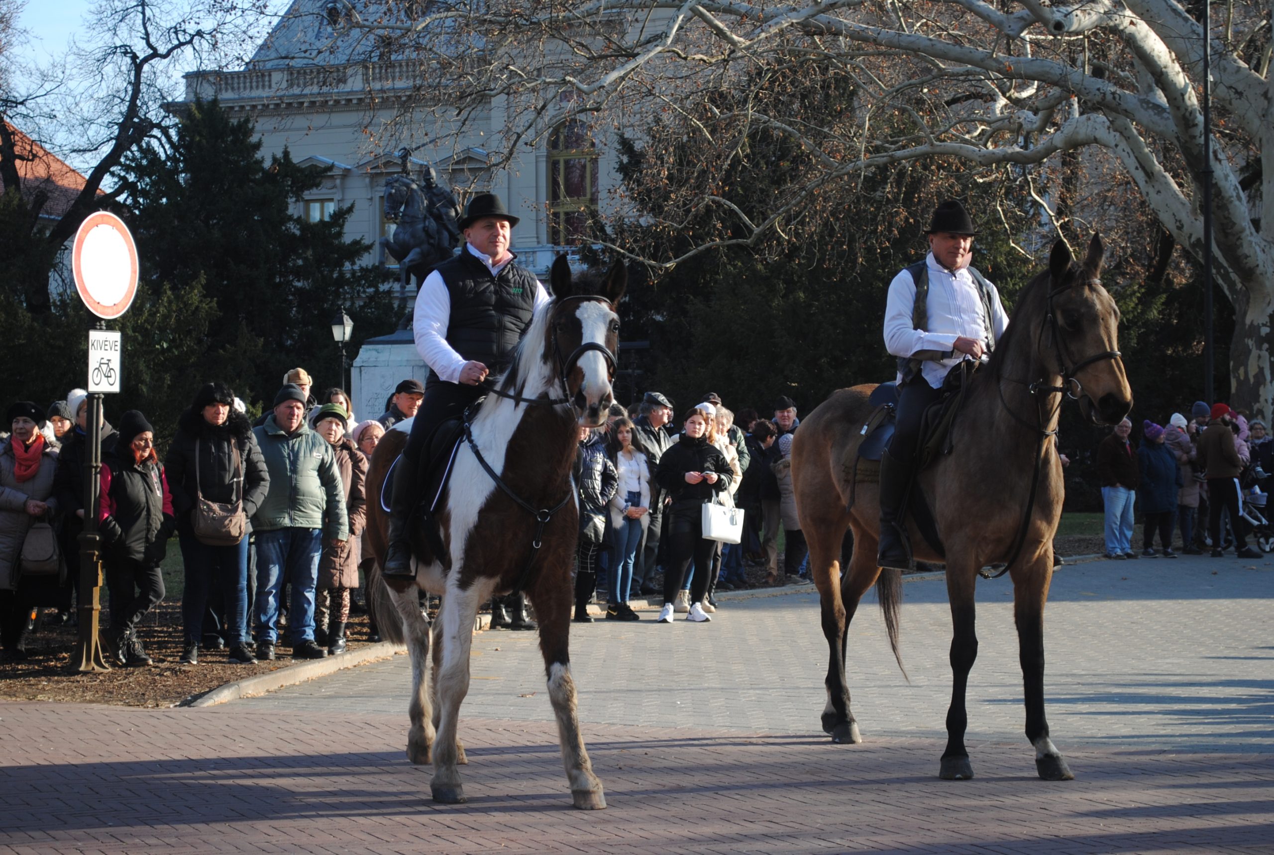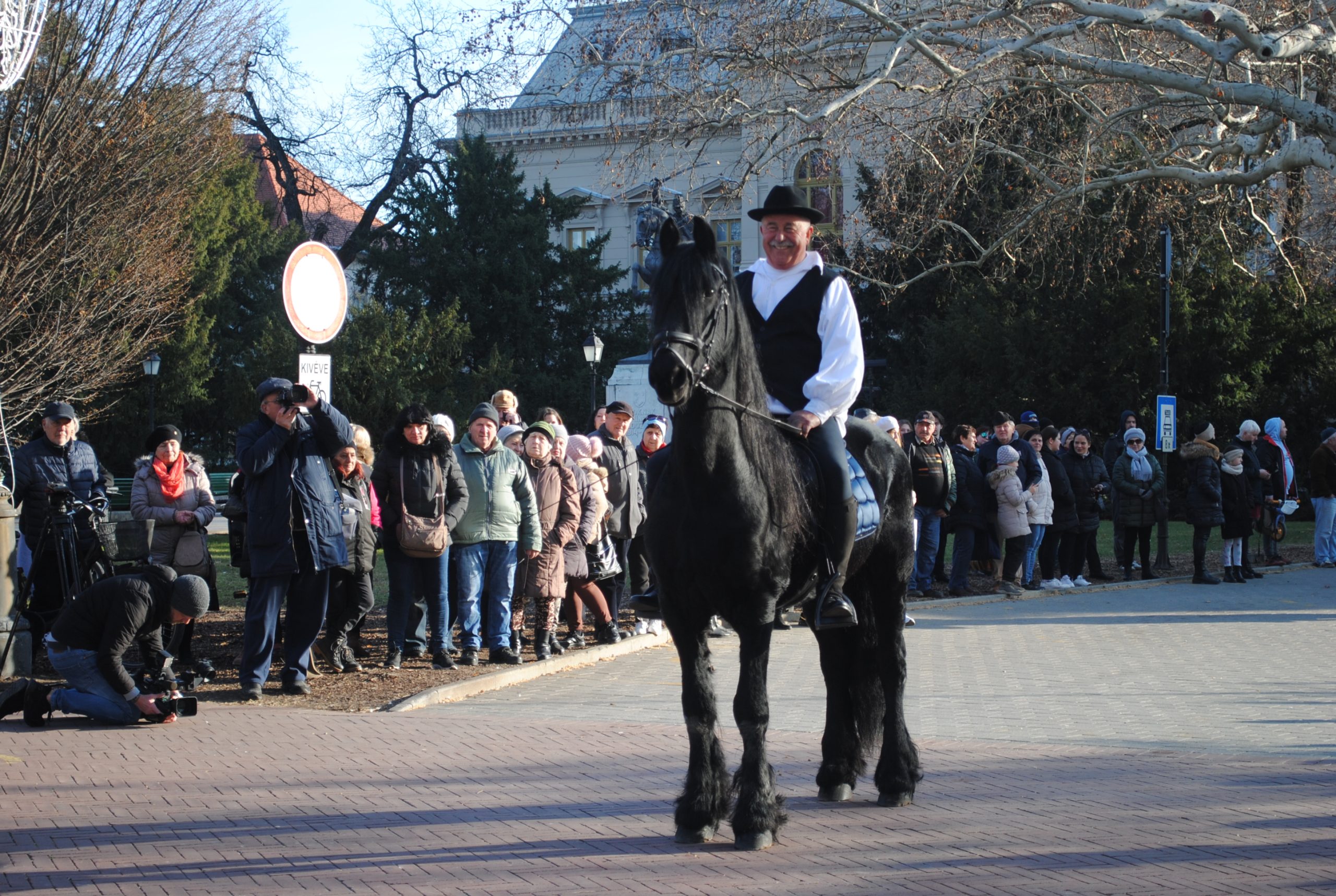 A Fekete Sas előtt sorra vonultak el előbb a lovasok, nagy tapsot, időnként éljenzést is kiváltva, pompás, szemet gyönyörködtető paripáik nyergében, s nem csak az ismert, de nálunk szokatlan fajtákkal is.