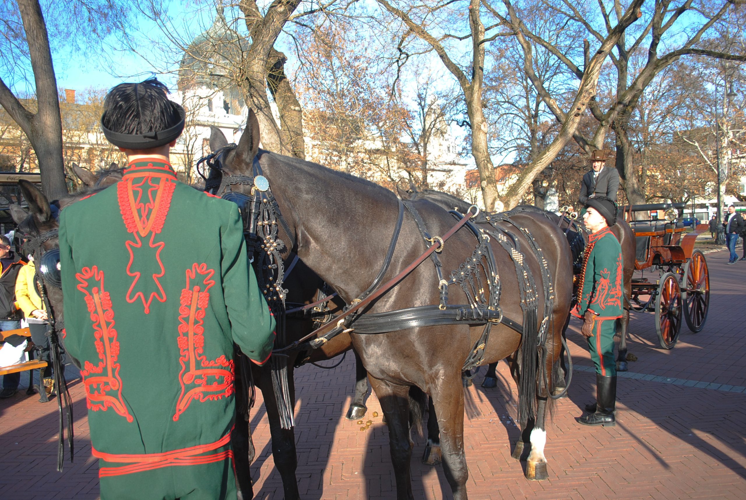 – A nehéz veretes szerszám ápolása, a kocsirendbe rakása, legalább egy hetes munka volt. Azaz ennyi idő kellett ahhoz, hogy ide el tudjunk jutni – árulta el Papp János fogathajtó. – Egy tradicionális típusú mezőhegyesi nehéz veretes lőszerszám van a lovainkon, melyen különösen sok a sárgaréz. Nagy sallangok jellemzik, nagyon sok pityke van rajta, melyeket külön, kézzel és egyesével ki kellett fényesíteni. Tehát ahhoz, hogy ez a lószerszám egy ilyen pompásan nézzen ki, ilyen szép legyen, nagyon sok munkára van szükség – részletezte. A fogathajtó azt is elárulta, hogy 25 éve dolgozik Mezőhegyesen, és azóta foglalkozik a nóniuszokkal. – Egyes, kettes, négyes és ötös fogatot hajtok, mikor, mire van igény. És egyes fogatba képzek ki fiatal lovakat egészen világbajnoki szintig, 20 évig hazai és nemzetközi versenyeken magam is indultam – tette hozzá.