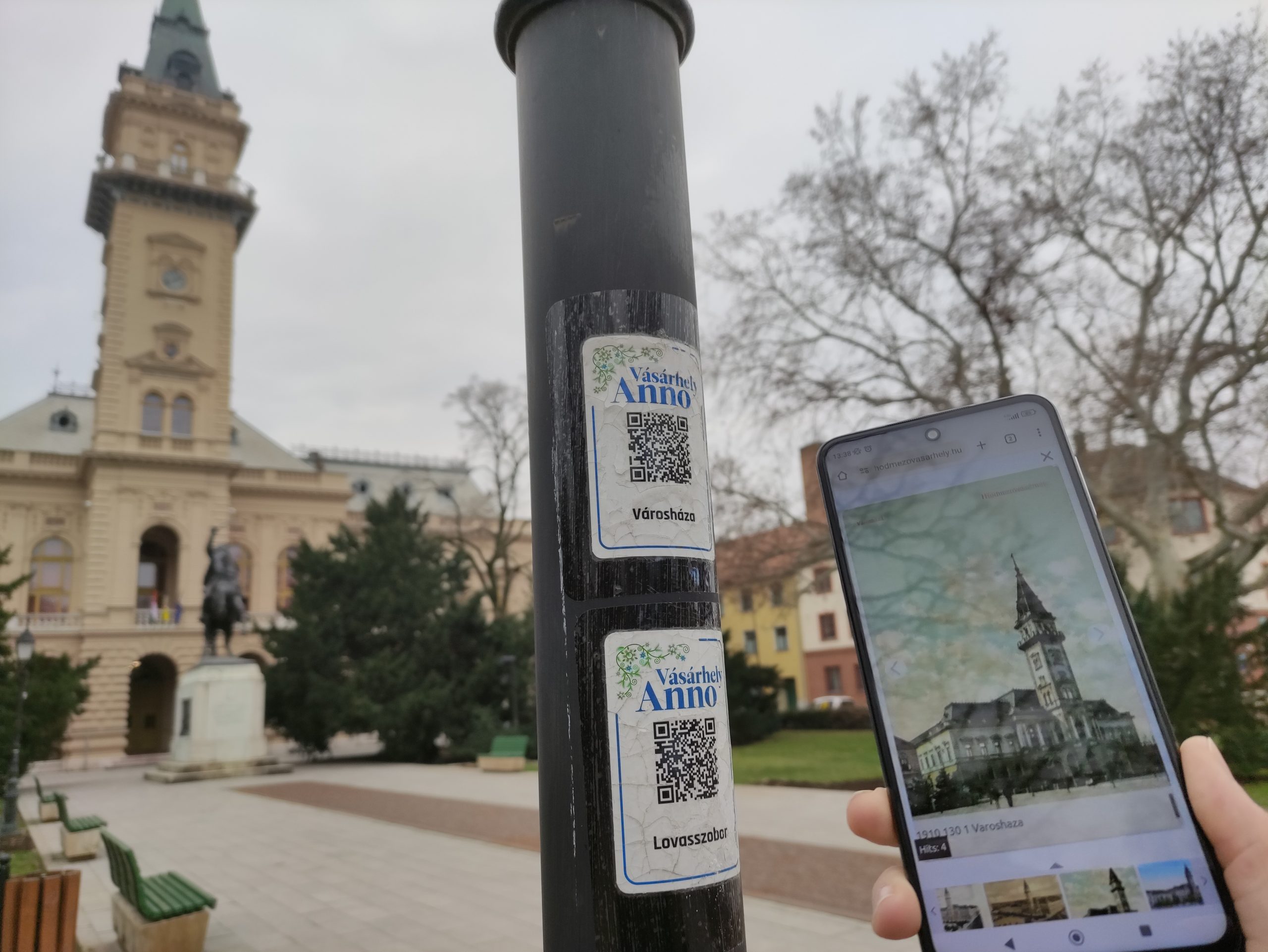 Korábban nem volt rá példa Vásárhelyen, hogy a járókelőket az utcán „visszarepítsék” a múltba, most azonban az okostelefonok adta lehetőségeket kihasználva QR-kódok segítségével teszik ezt lehetővé. A kódokat közvilágítási kandeláberekre, illetve jelzőtáblák tartószerkezeteire ragasztották fel, és azokon feltüntették, hogy mely épületek régi, képeslapokon ábrázolt képei érhetők el.