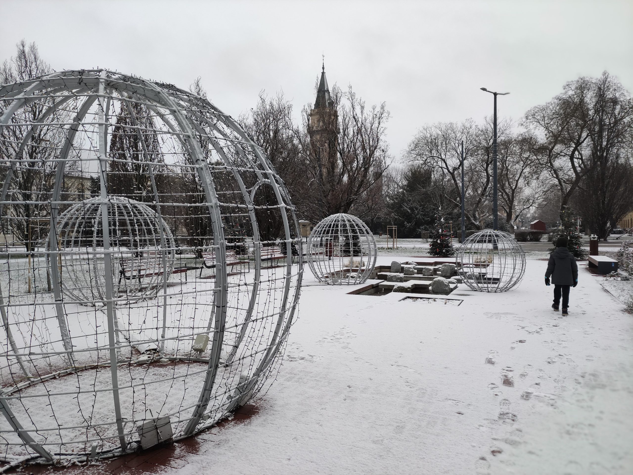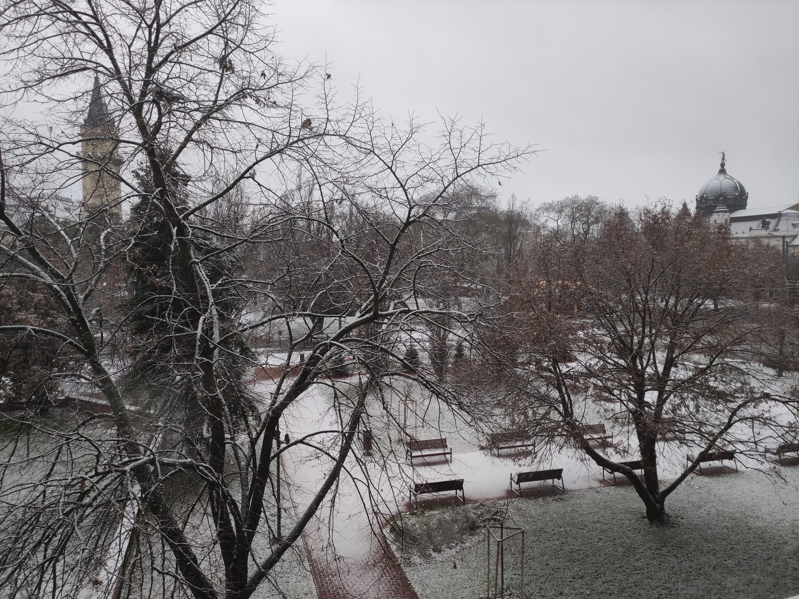 A járdákon és az utakon azonban csak foltokban volt látható, legalábbis a belváros és a Népkert jó részén. Az előrejelzések szerint a havazás folytatódik ma.
