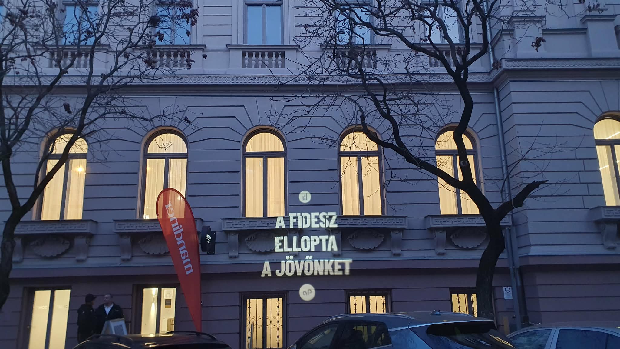 Szerda délután Szegeden tartott eseményt a Mandiner, amelynek az MCC adott otthont. A helyszínen az aHang helyi szervezete, a szegedi aPont szervezett akciót, akik egy projektorral vetítették az esemény kezdése előtt az MCC épületének falára, hogy “A Fidesz ellopta a jövőnket”.