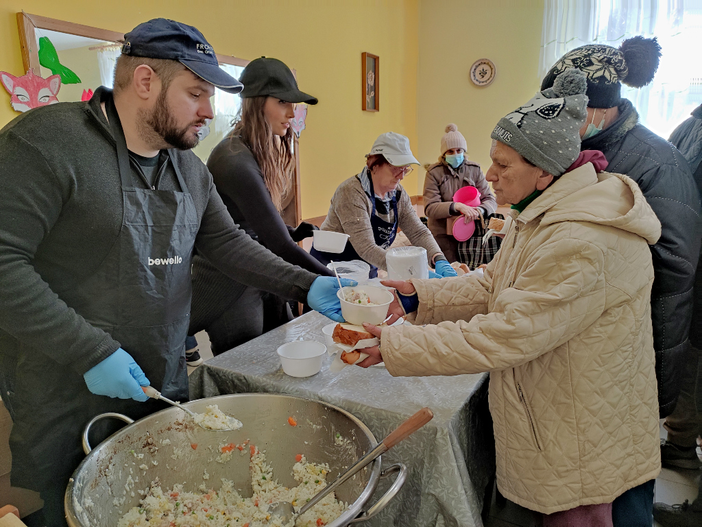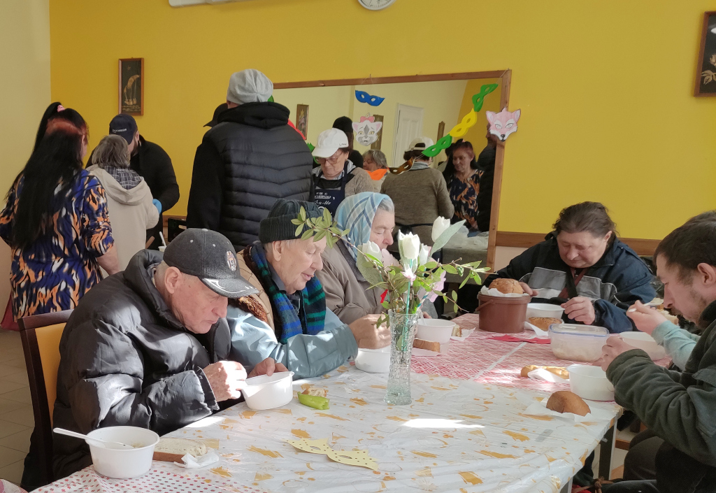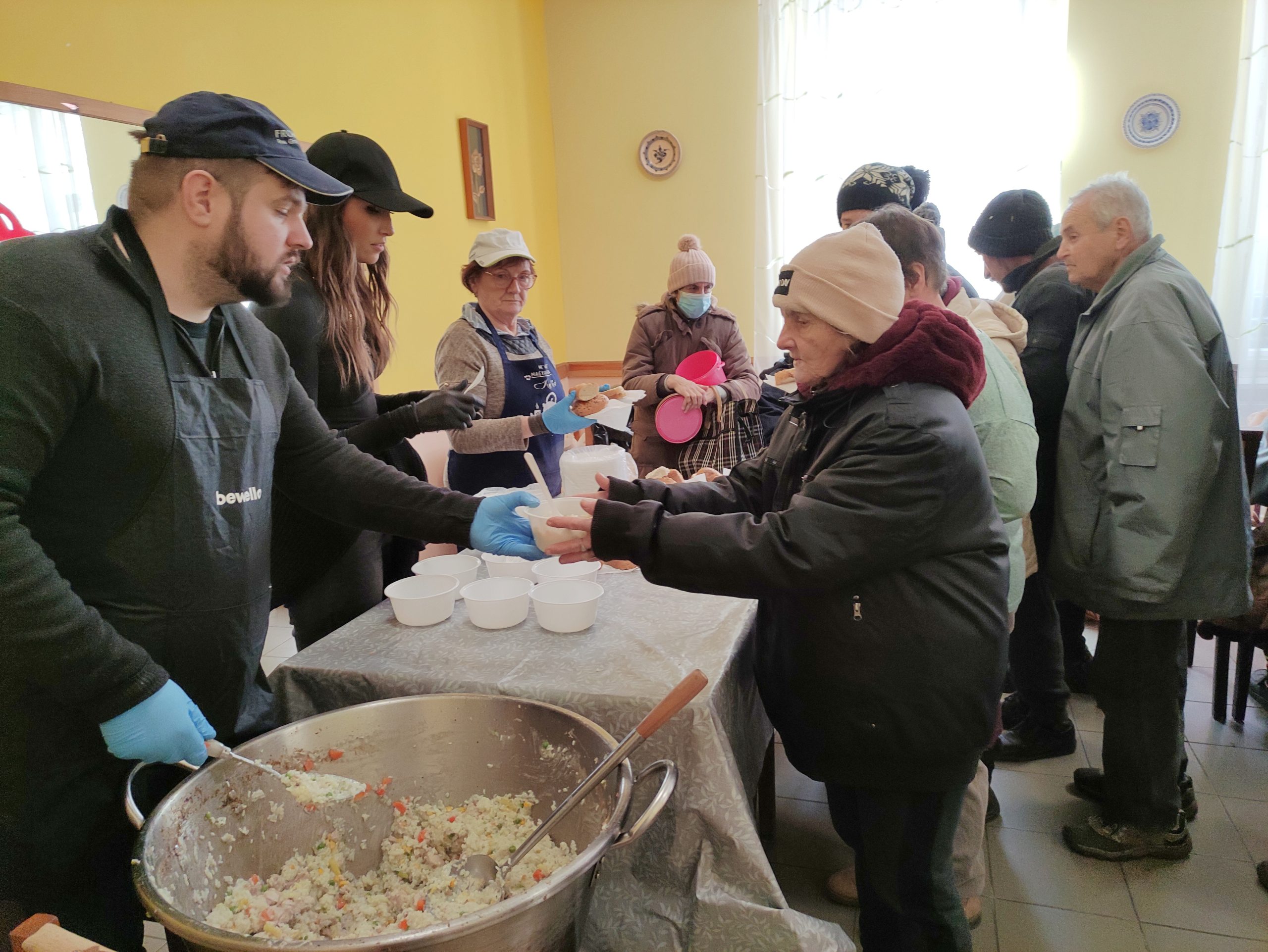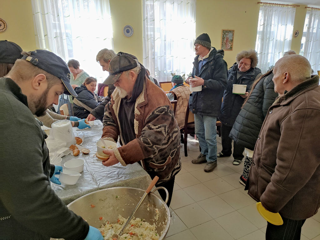 Közben az étel elkészült, s ahogy mindig, először most is azokat az adagokat állították össze, melyeket az önkéntesek azoknak szállítanak ki, akik maguk nem tudnak elmenni az ebédért.