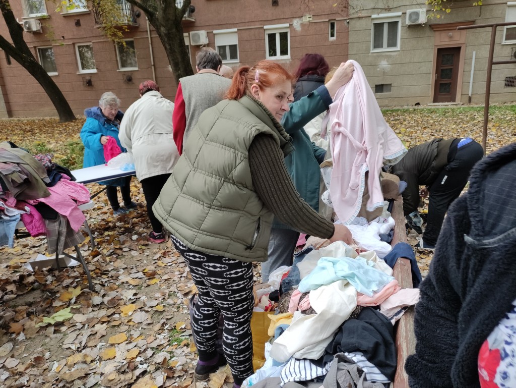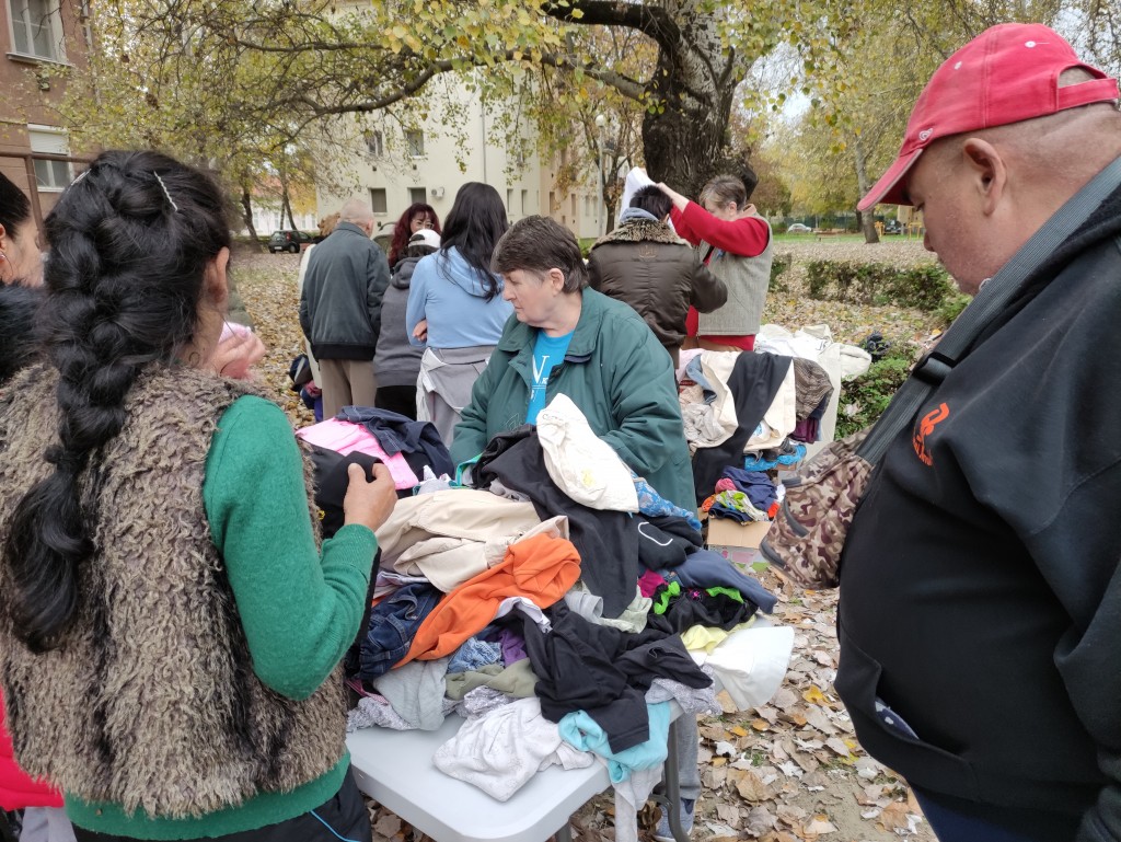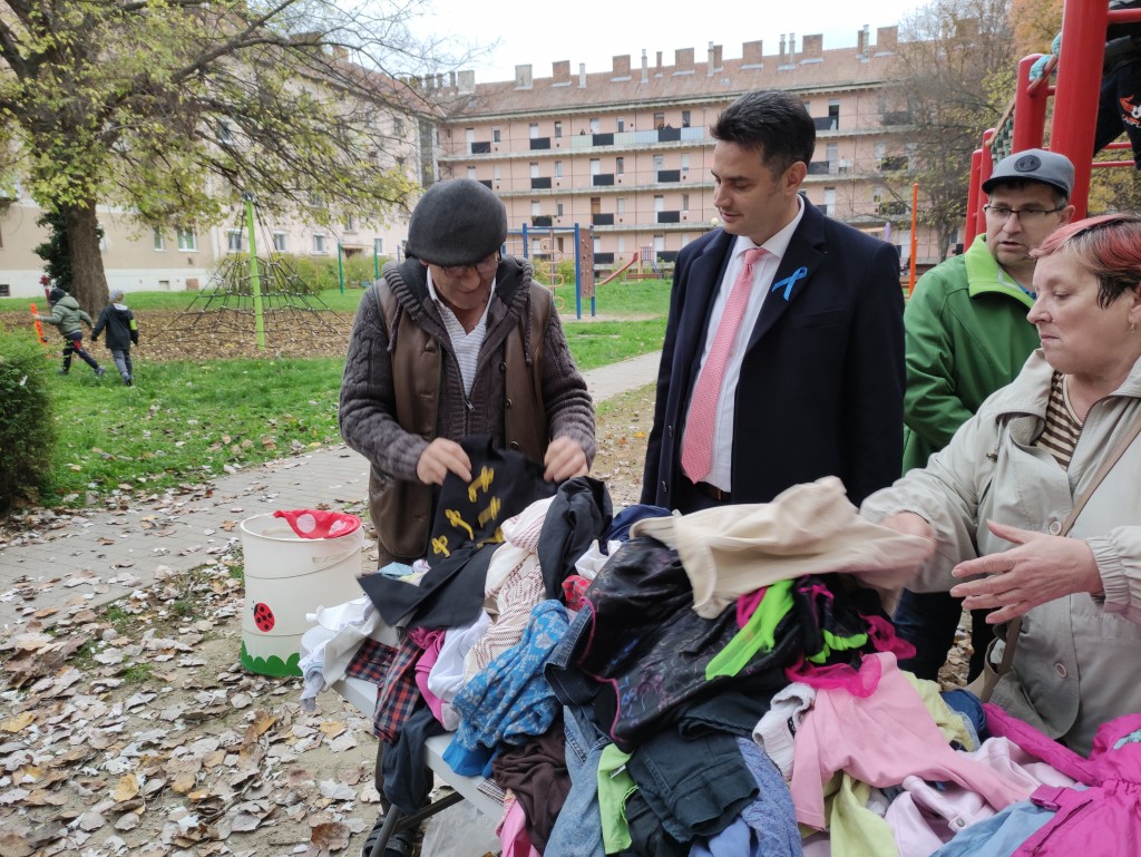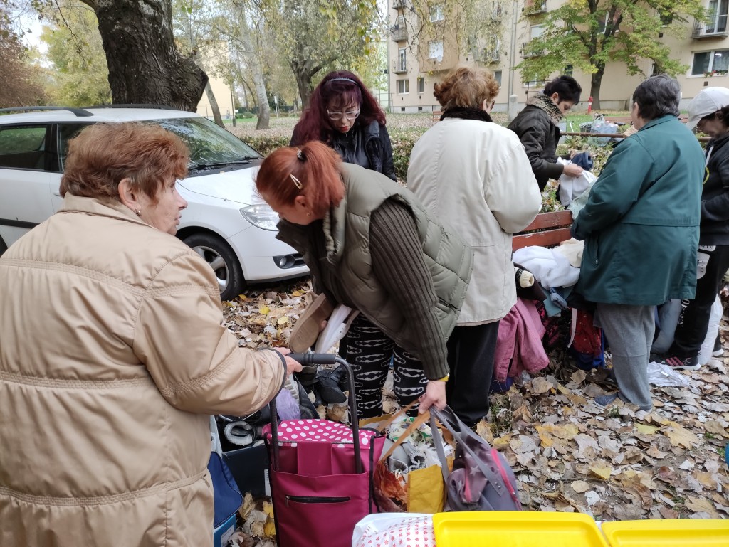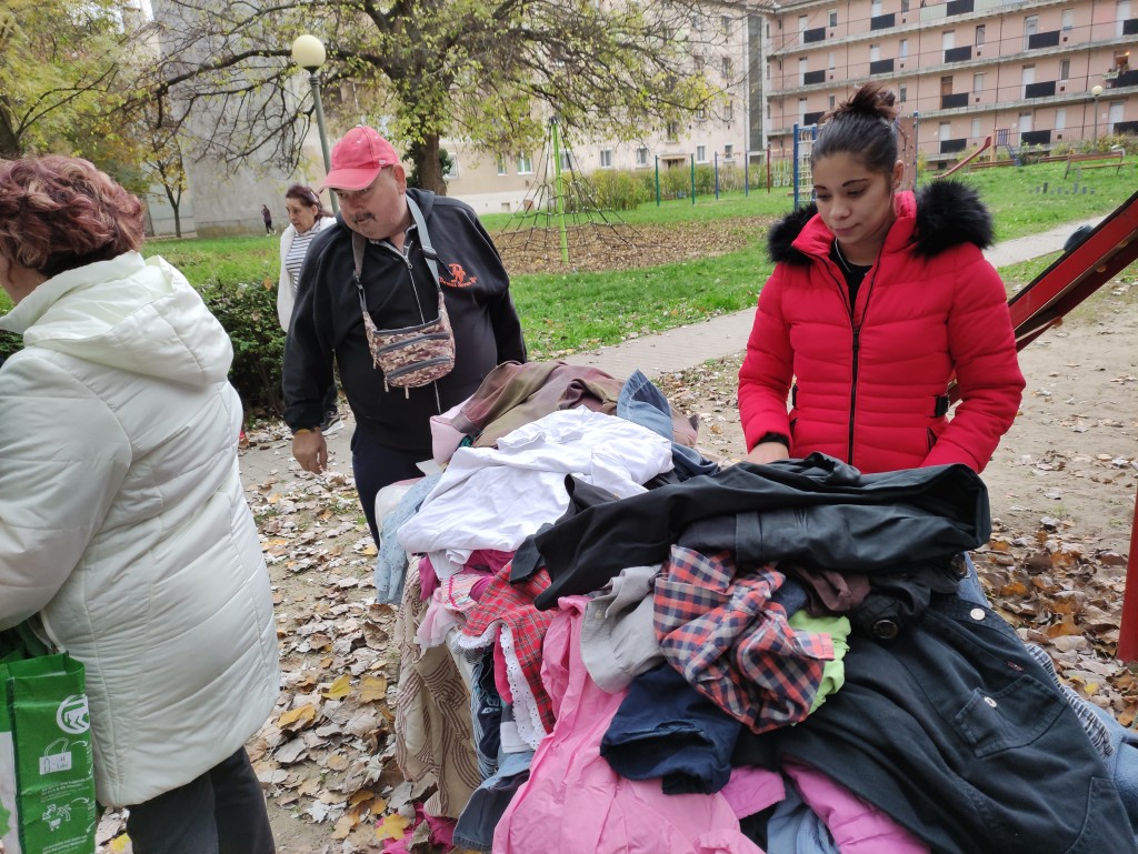 Válogattak is az asszonyok a Kossuth kör által a Szabadság téri játszótérhez kihozott ruhák között derekasan. És egy-két férfi is megtette ugyanezt. Volt, aki egy egész zsáknyit vitt haza, de akadt, olyan is, aki csak néhány dolgot. Aki semmit sem talált a ruhakupacban magának, végül az sem távozott üres kézzel, végül találtak neki a Kossuth körösök két éppen rávaló pulóvert is. A gyerekek pedig boldogan válogattak a játékok közt.
