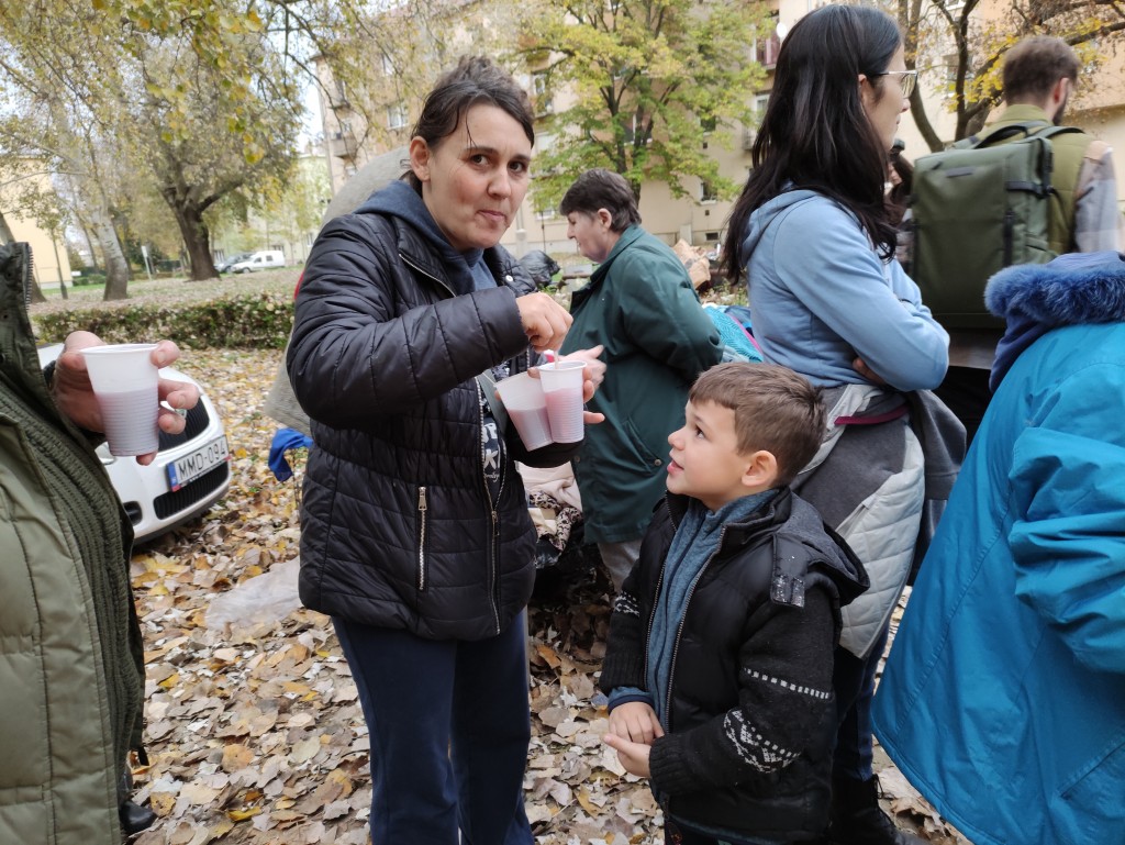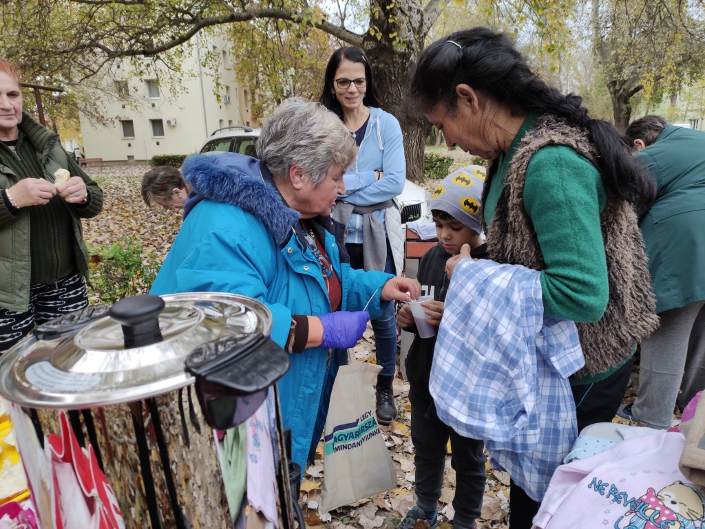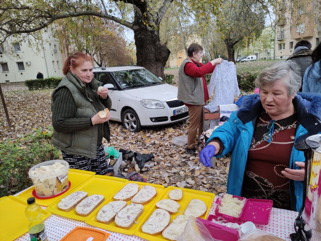 A vásárhelyi Kossuth kör tartott ruhaosztást ma délután a Szabadság téren. Lila hagymás vagy káposztás-zsíros kenyérrel és teával is megvendégelték az ide érkezőket.