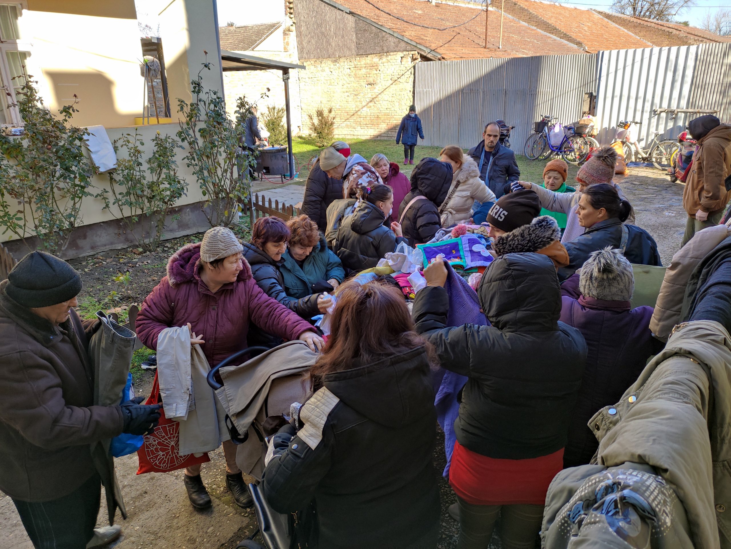 Még mielőtt Márki-Zay Péter és segítői nem sokkal déli 12 óra után osztani kezdték volna a forró ételt, és az önkéntesek elindultak volna, hogy az ebédért személyesen elmenni nem tudóknak kiszállítsák a közel 460 adagot, elkezdődött a szokásos ruhaosztás, s a meleg téli holmik nagy része gyorsan új gazdára is talált.
