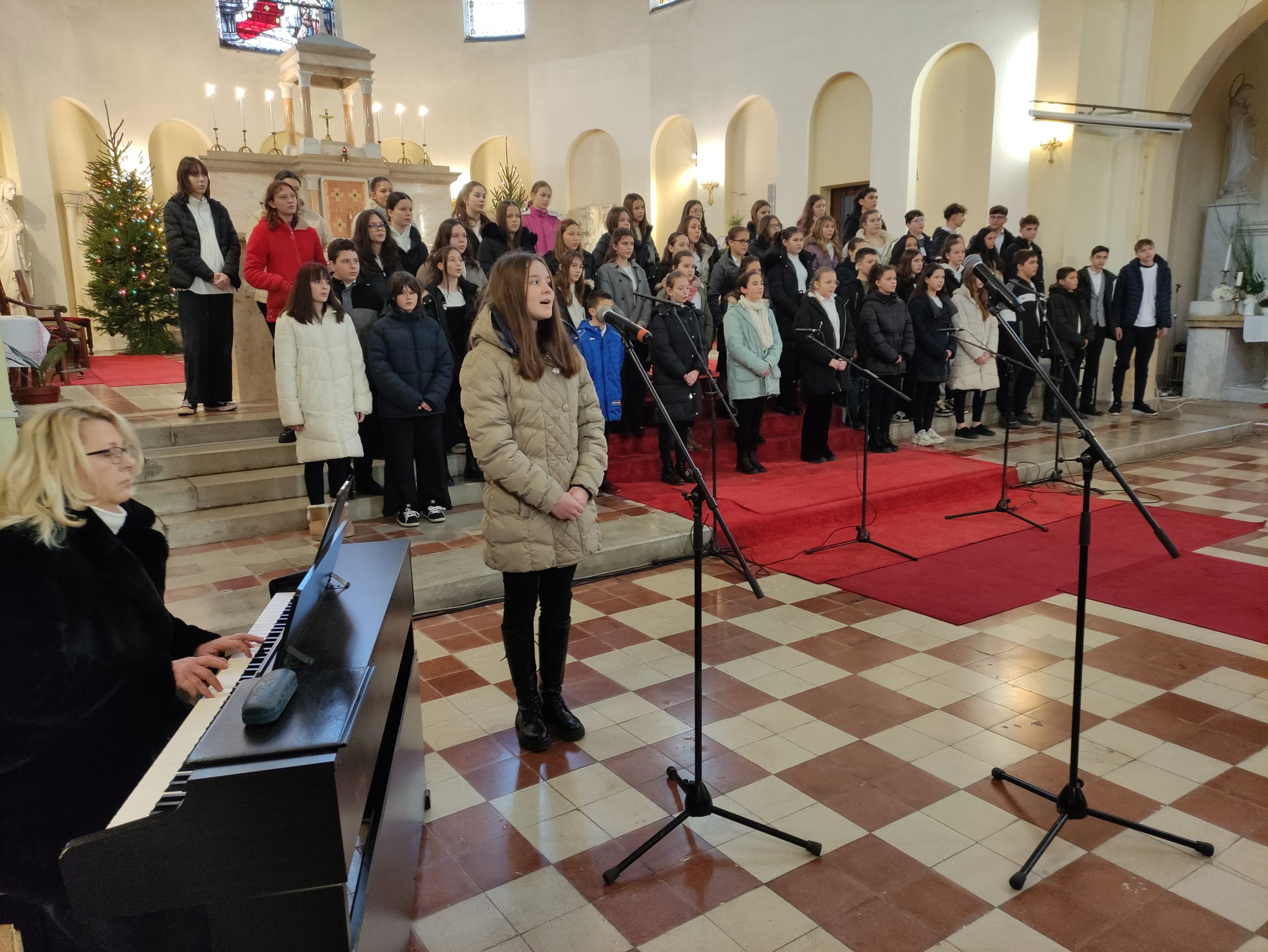 A Domonkos Nővérek Liszt Ferenc Ének-zenei Általános Iskolája pénteken délelőtt rendezte meg karácsonyi hangversenyét a Szent István-templomban. Felléptek az iskola diákjai, valamint az intézmény mindhárom kórusa, a koncert pedig nagy sikert aratott.