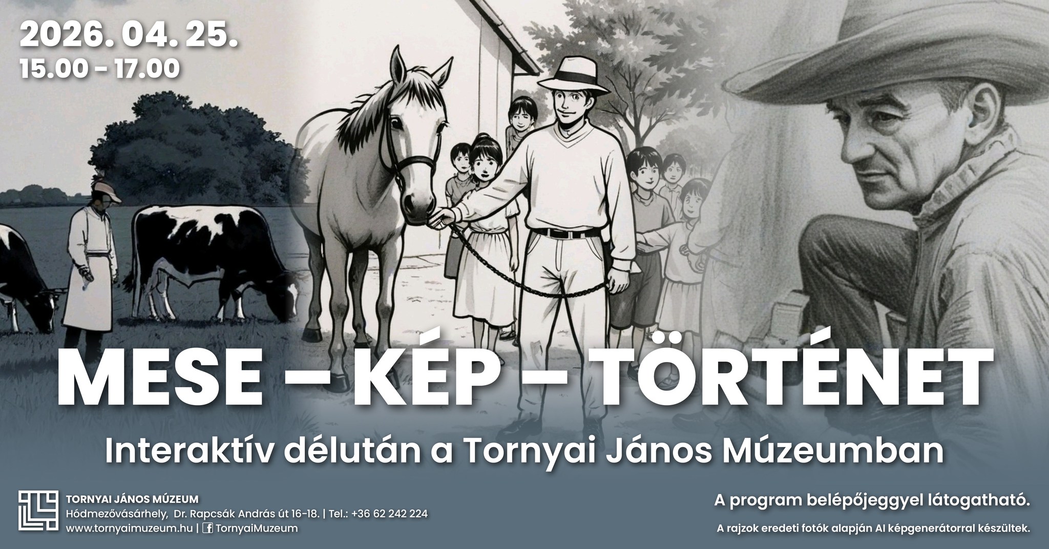 Mese, kép, történet címmel rendeznek családi délutánt szombaton a Tornyai János Múzeum az időszaki kiállításaiban. Amíg a gyerekek mesefoglalkozáson alkothatnak, addig az idősebbek kurátori vezetéssel történeteket hallgathatnak meg a tárlatokon. A program belépőjeggyel látogatható.