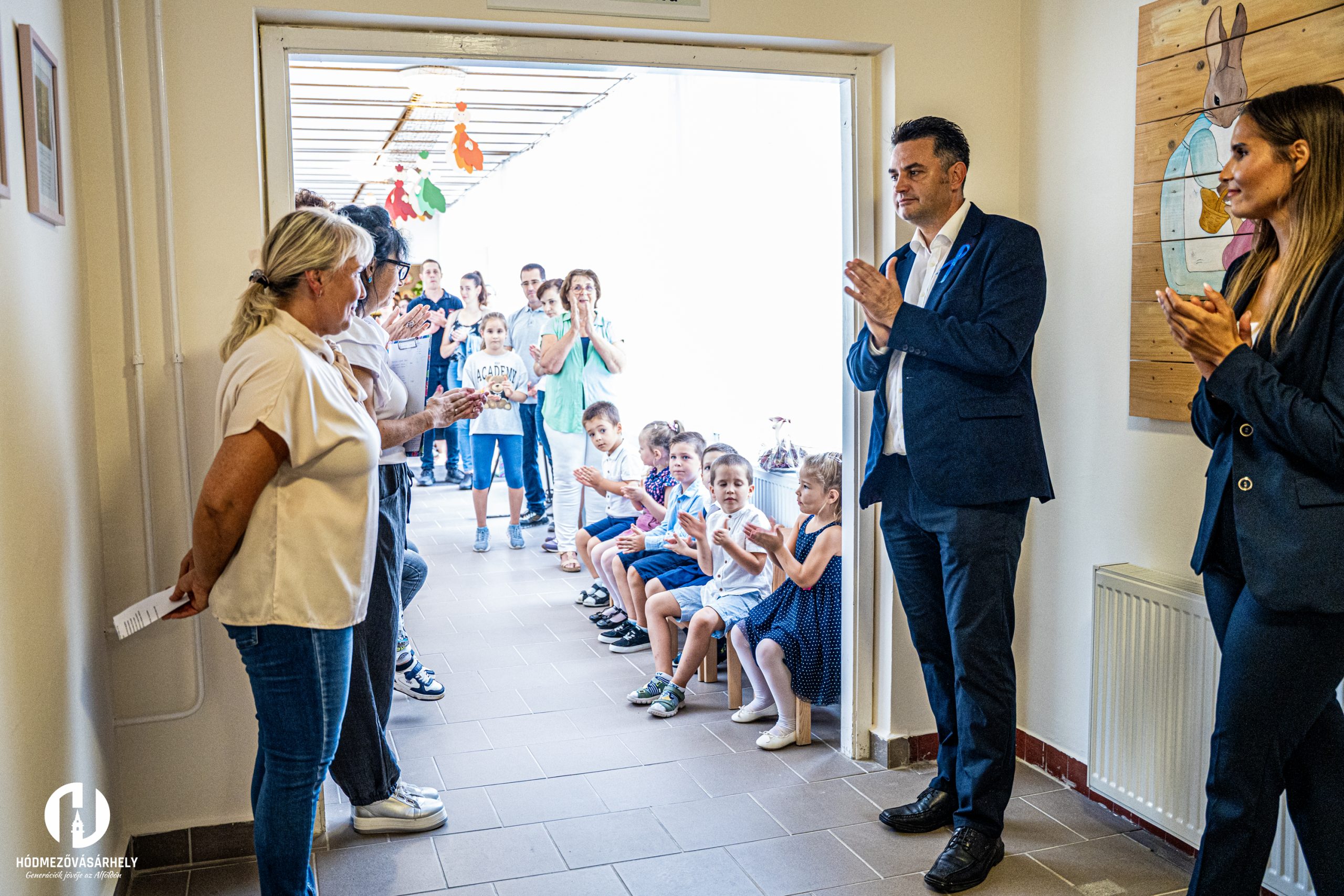Márki-Zay Péter köszöntőjében azt hangsúlyozta, a nyáron történt fejlesztés a közösségi összefogás, az adakozás szép példája. Persze az adakozás nem elvárás – mondta – de külön köszönet azoknak, akik bármilyen módon hozzá tudnak járulni az egész közösség jólétéhez. Azt is megemlítette, milyen fejlesztések zajlottak már korábban az óvodákban, így például immár mindegyikben van klíma, illetve napelem is. A polgármester végül gratulált Kardos Szilviának az önkormányzati óvodákban zajló magas színvonalú munkáért.