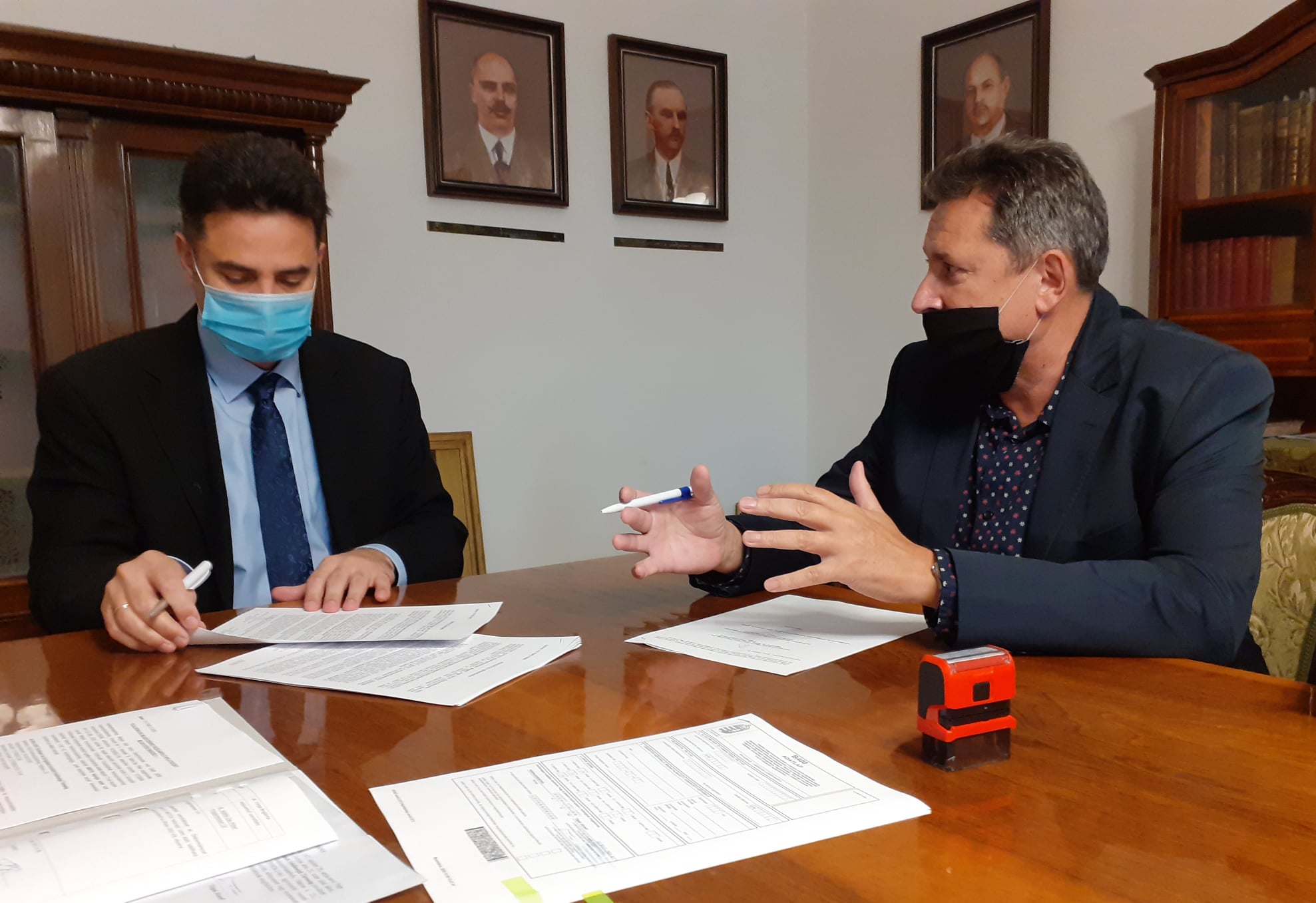 Dr. Márki-Zay Péter polgármester és Tápai József ügyvezető igazgató írta alá a 11 millió forintos vételárról szóló adásvételi szerződést.