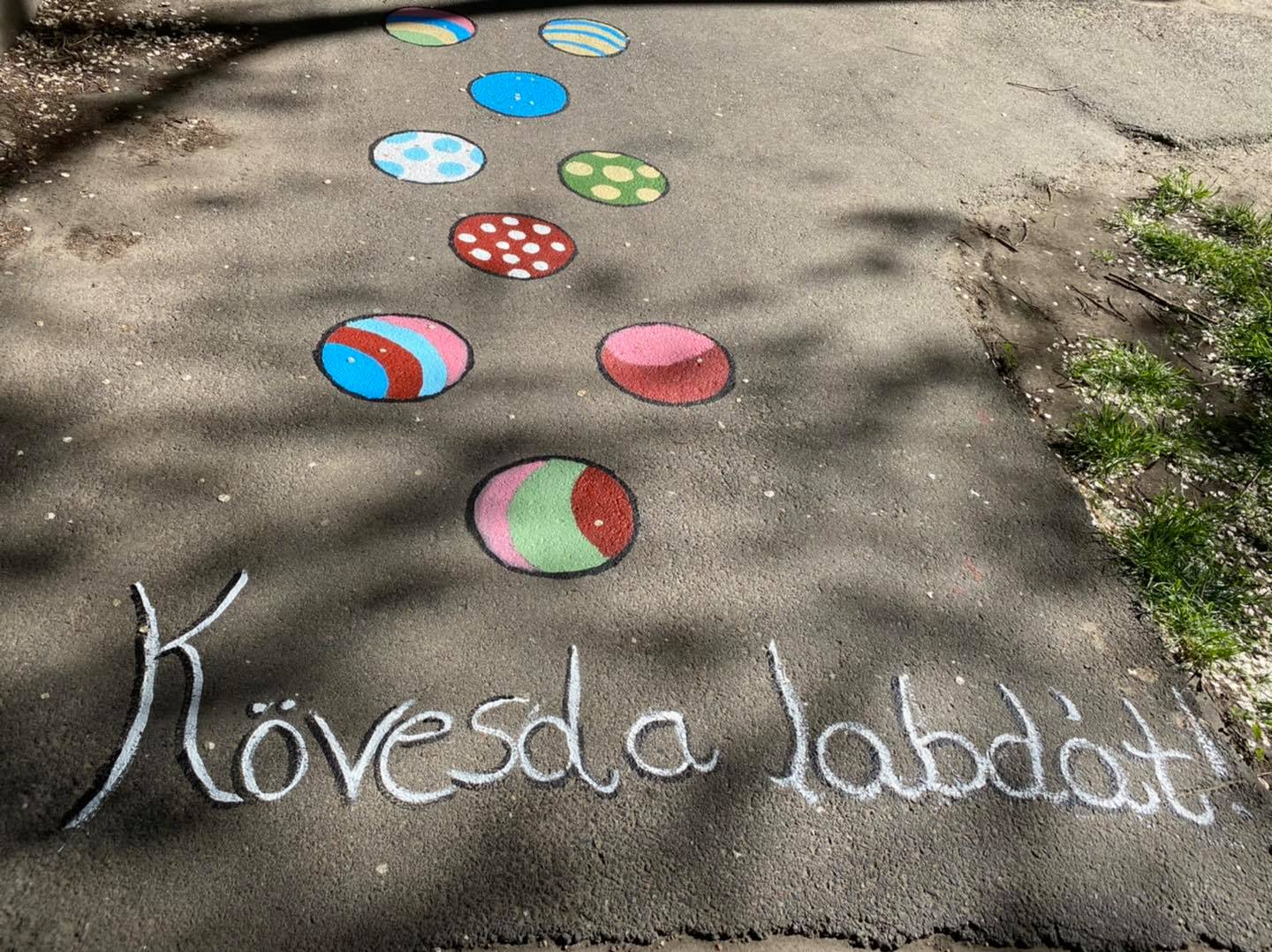 Újabb ugróiskolaszerű illetve játékos rajzok kerültek, ezúttal az Oldalkosár utcai óvoda melletti járdaszakasz aszfaltjára.