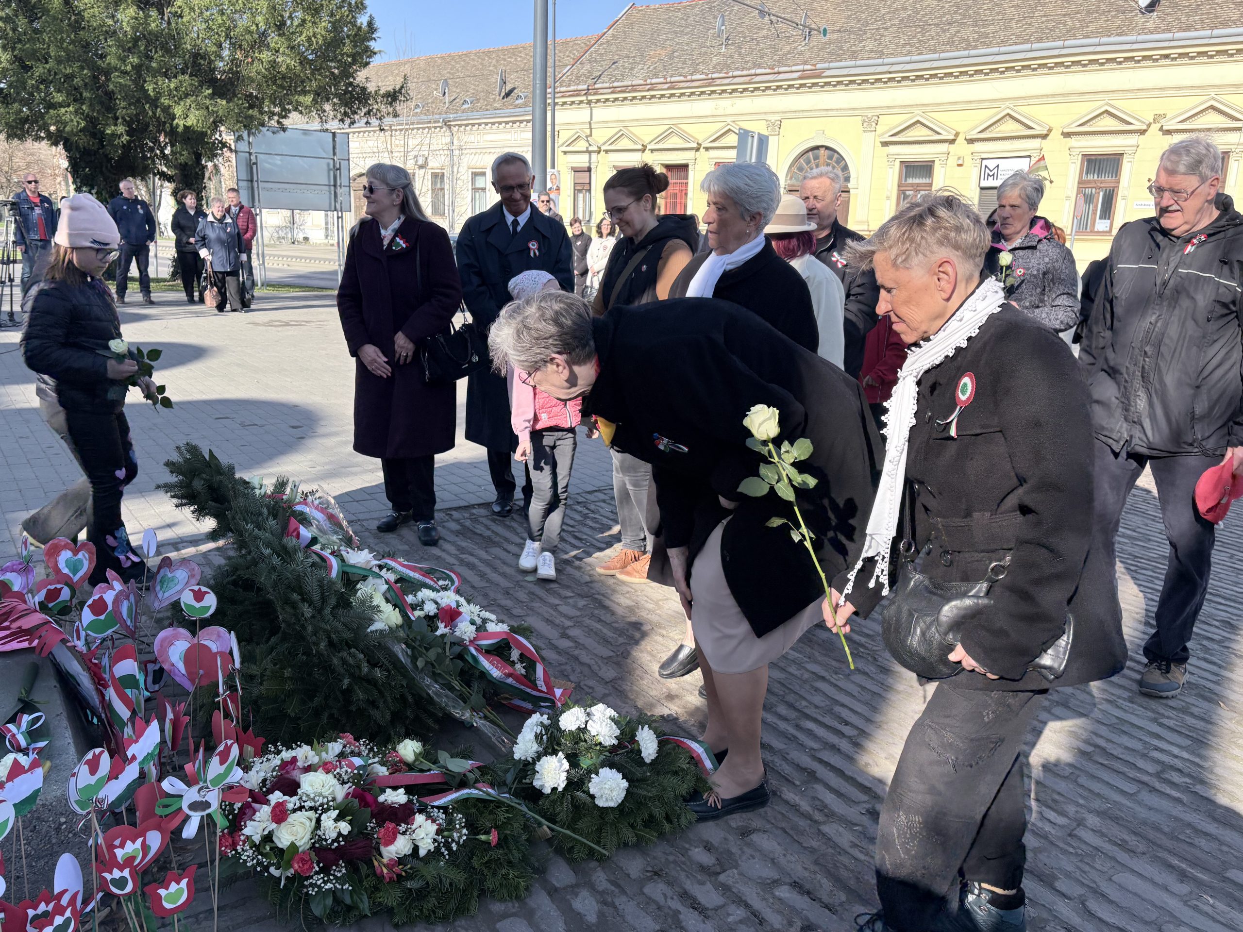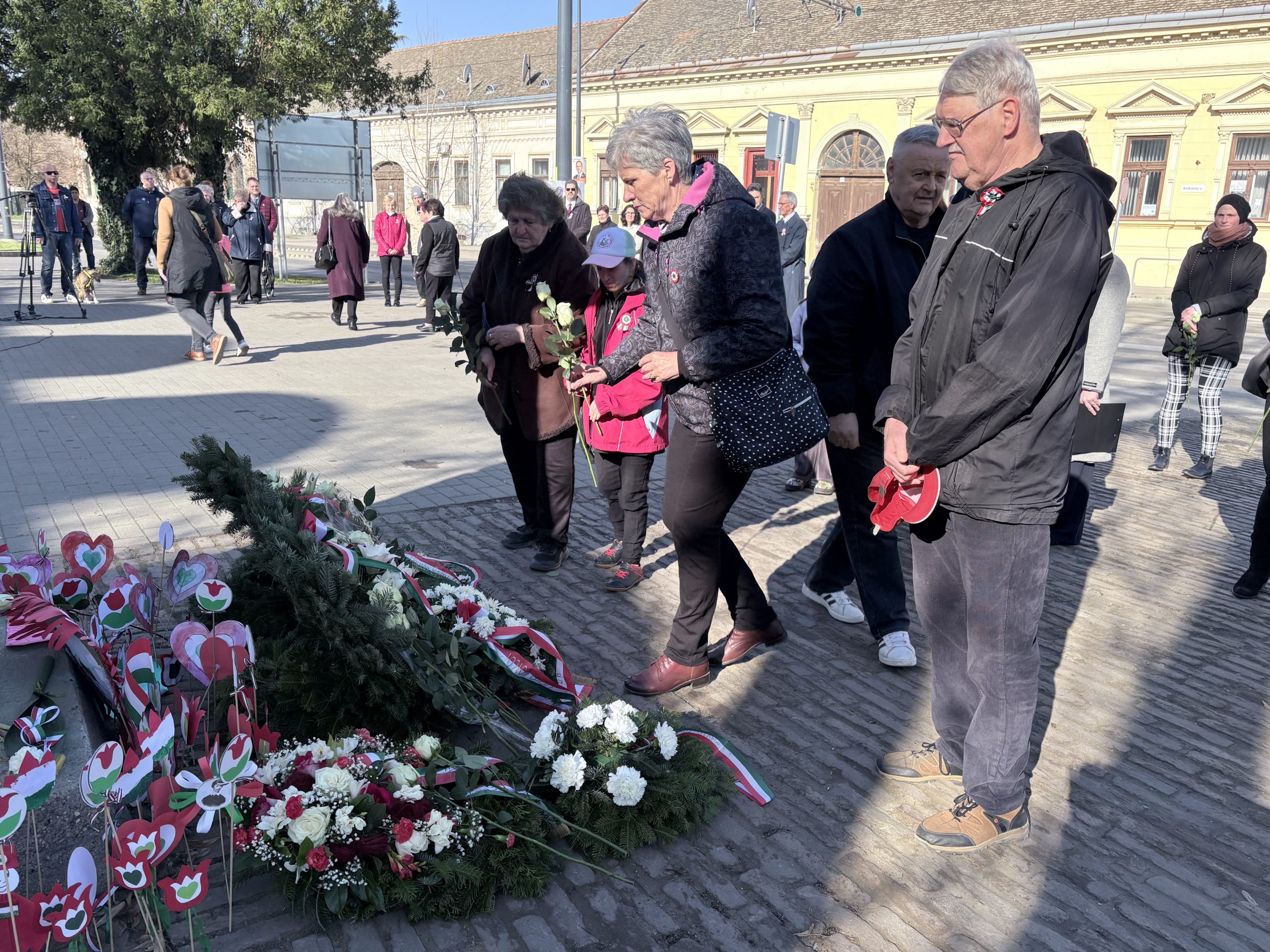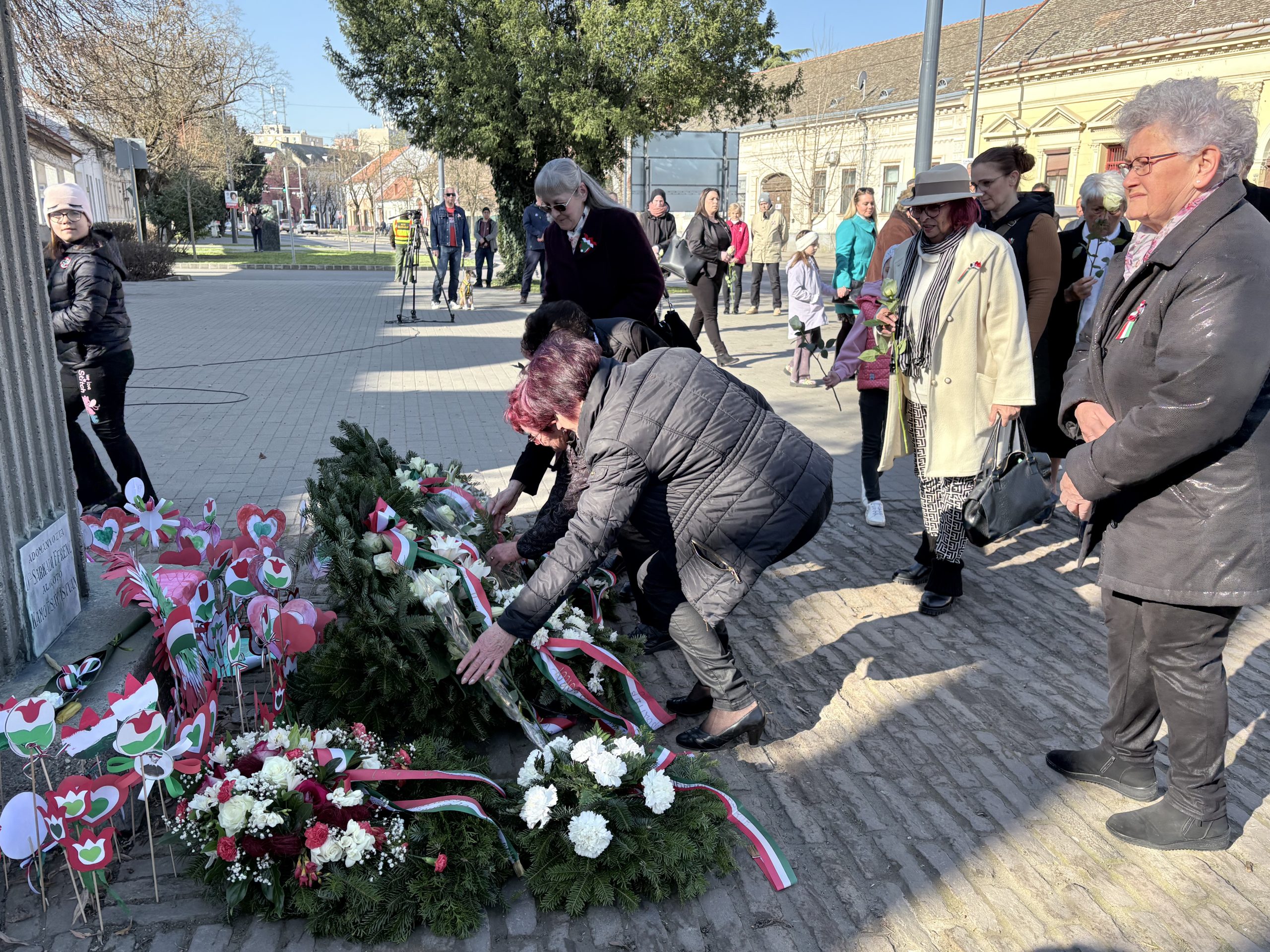 Az ünnepi megemlékezés koszorúzással zárult, amely során az önkormányzati képviselők, a Cigány Nemzetiségi Önkormányzat képviselői, a Tabáni és Mátyás utcai olvasókörök képviselői, a Hódvilág Tisza-sziget és a Pállfy Huszárok helyezték el a tisztelet koszorúit a Petőfi-szobornál, illetve a lakosok a megemlékezés virágait.