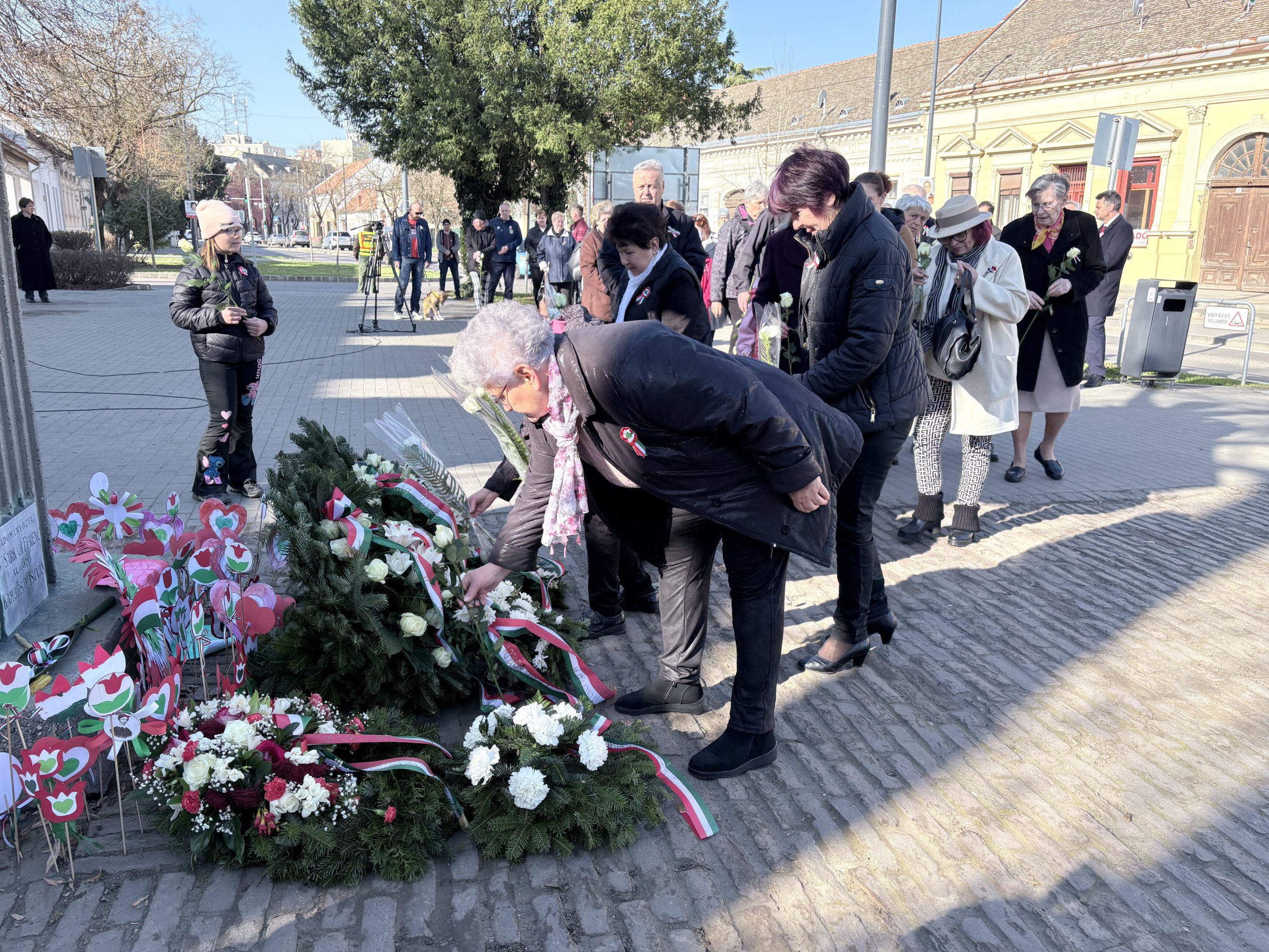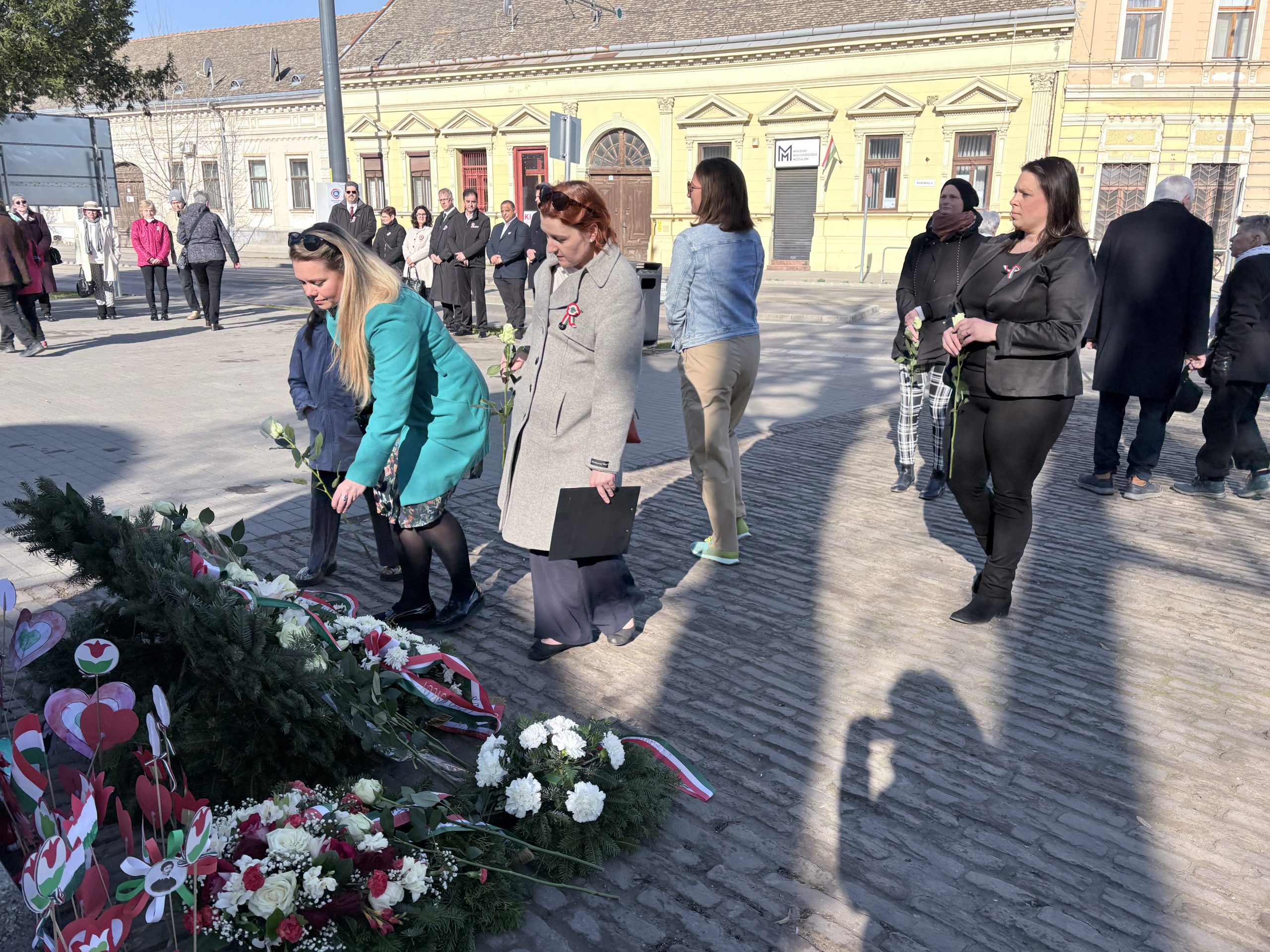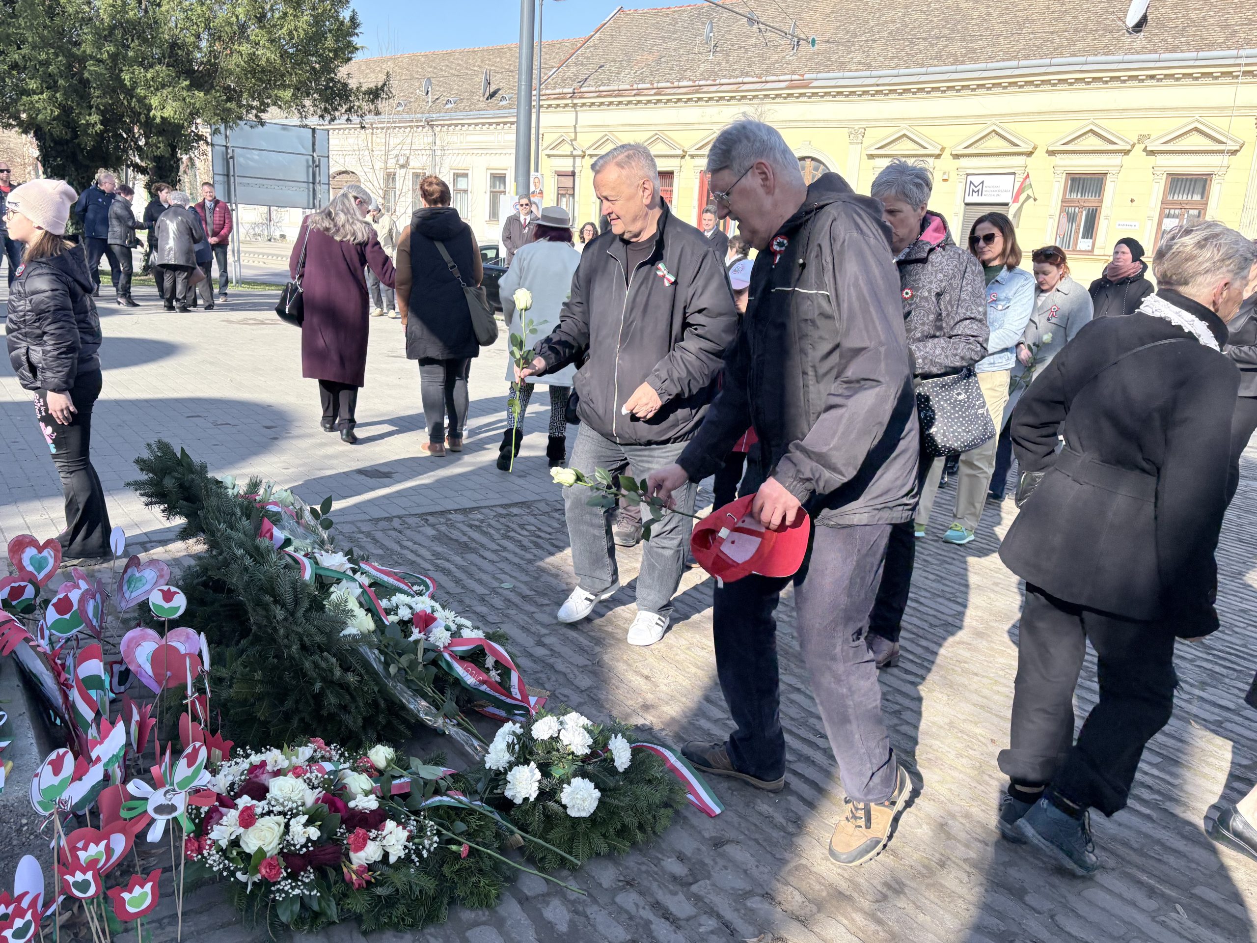 Az ünnepi megemlékezés koszorúzással zárult, amely során az önkormányzati képviselők, a Cigány Nemzetiségi Önkormányzat képviselői, a Tabáni és Mátyás utcai olvasókörök képviselői, a Hódvilág Tisza-sziget és a Pállfy Huszárok helyezték el a tisztelet koszorúit a Petőfi-szobornál, illetve a lakosok a megemlékezés virágait.