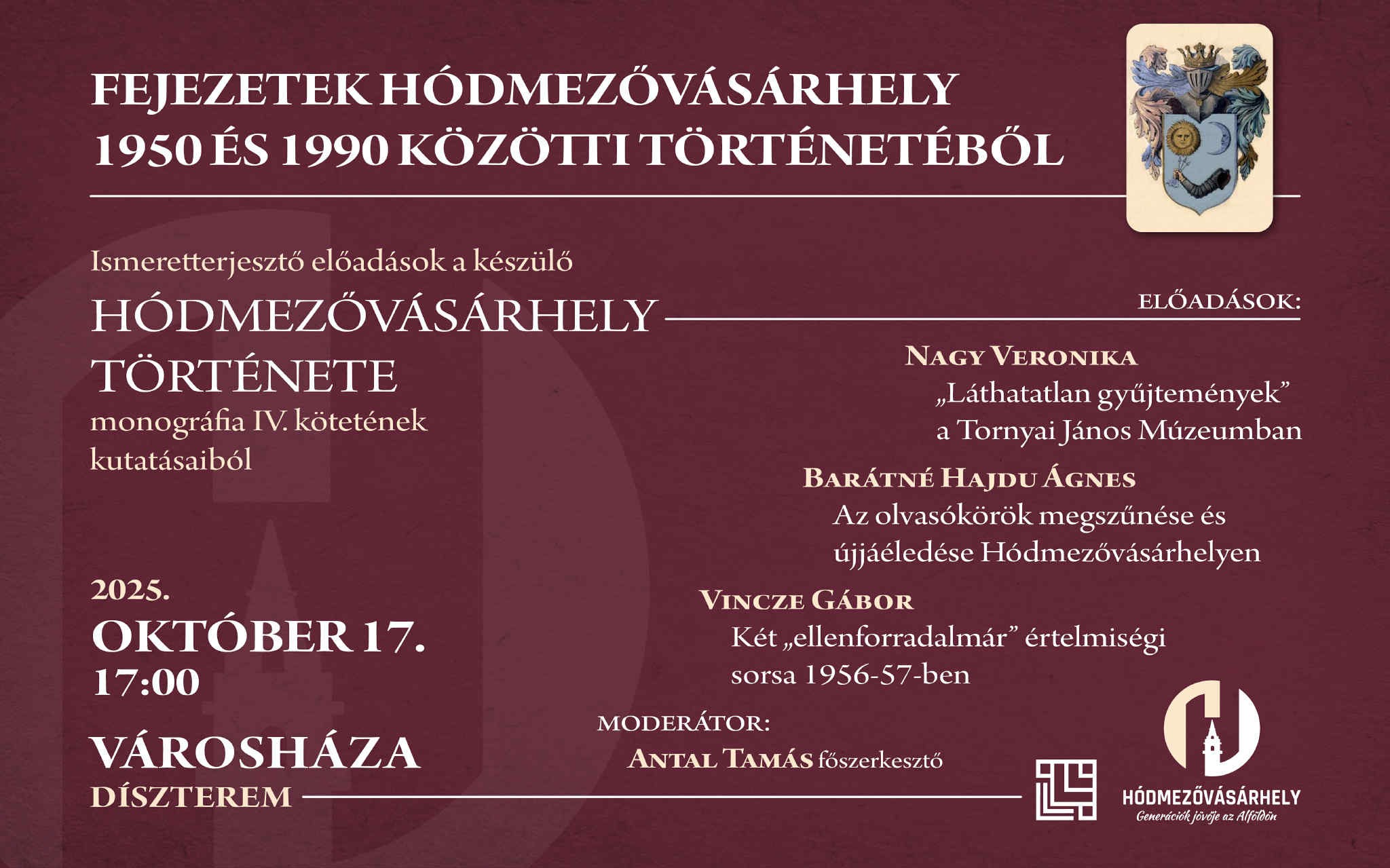 Hódmezővásárhely monográfiájának készülő negyedik kötete kapcsán ismeretterjesztő előadásokat szervez az önkormányzat.